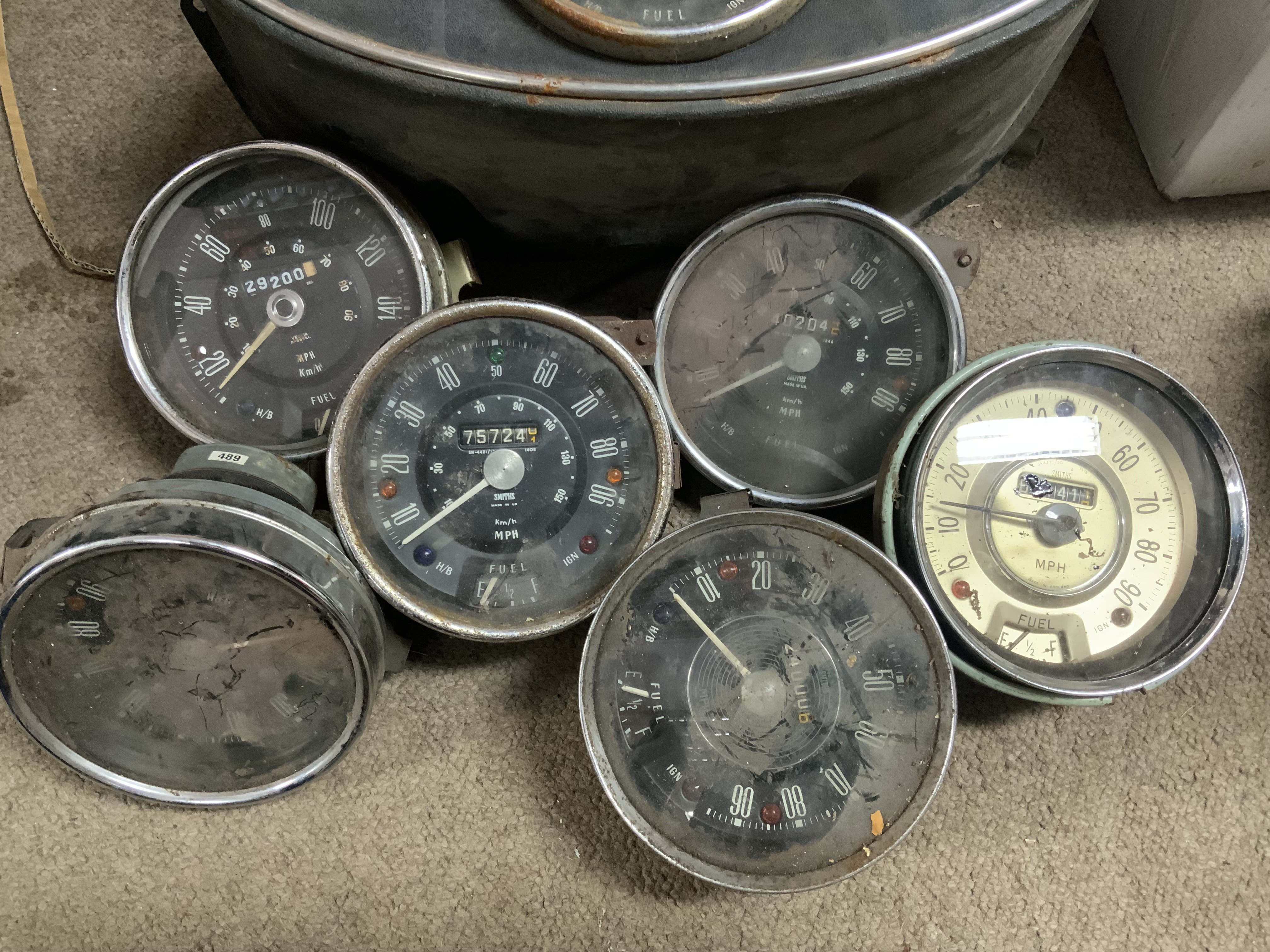 Vintage Mini Cooper parts. A collection of original smiths Mini Speedos and instrument clusters including.MK1 models.