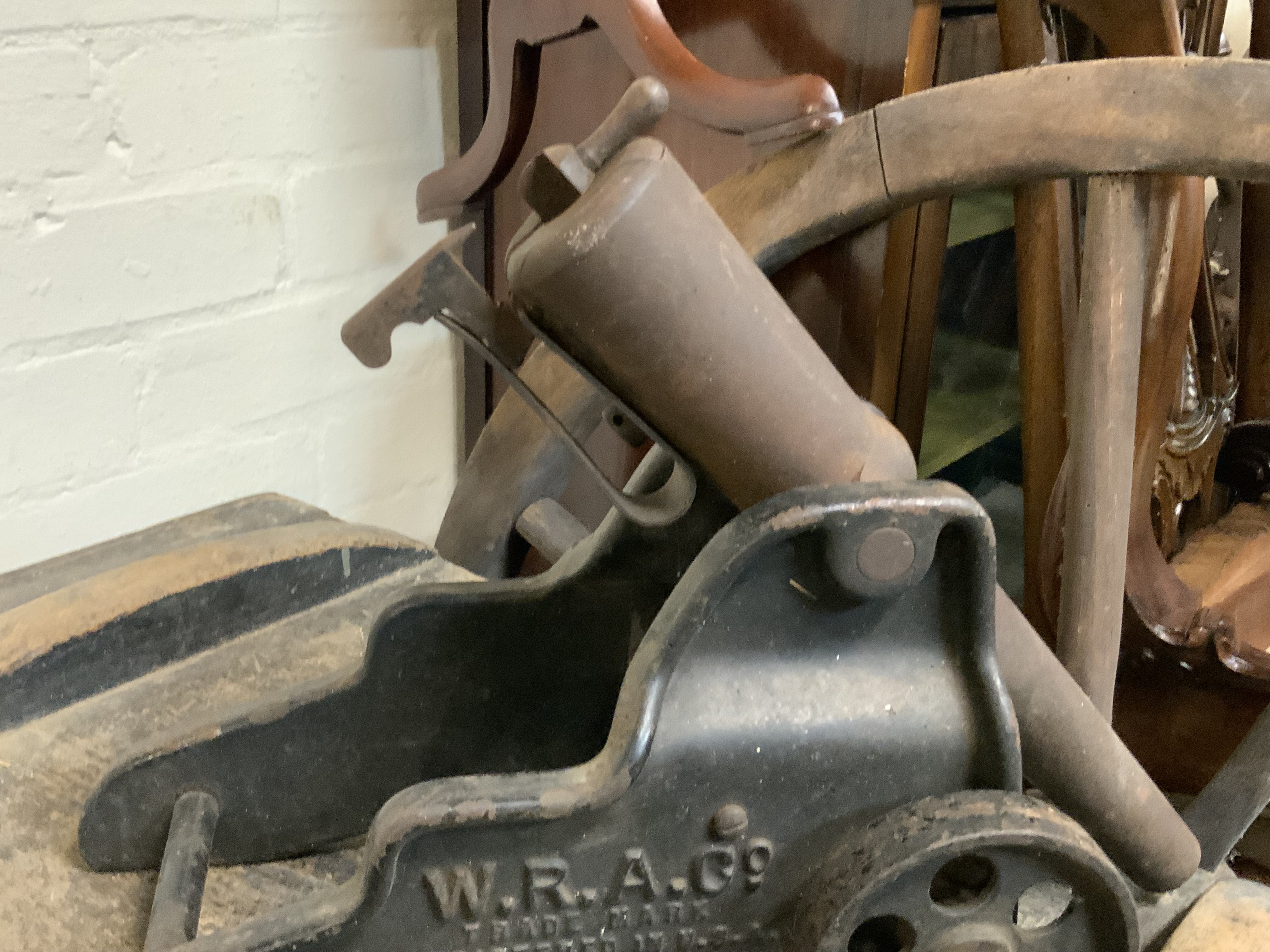 A 10-BORE STARTING GUN BY THE WINCHESTER REPEATING ARMS CO., U.S.A., CIRCA 1901 with tapering rolled steel barrel inscribed to top with maker's name and dated '1901', mounted on heavy cast iron carriage inscribed 'W.R.A.Co.' -- 7½ x 17in. (19 x 43cm.)