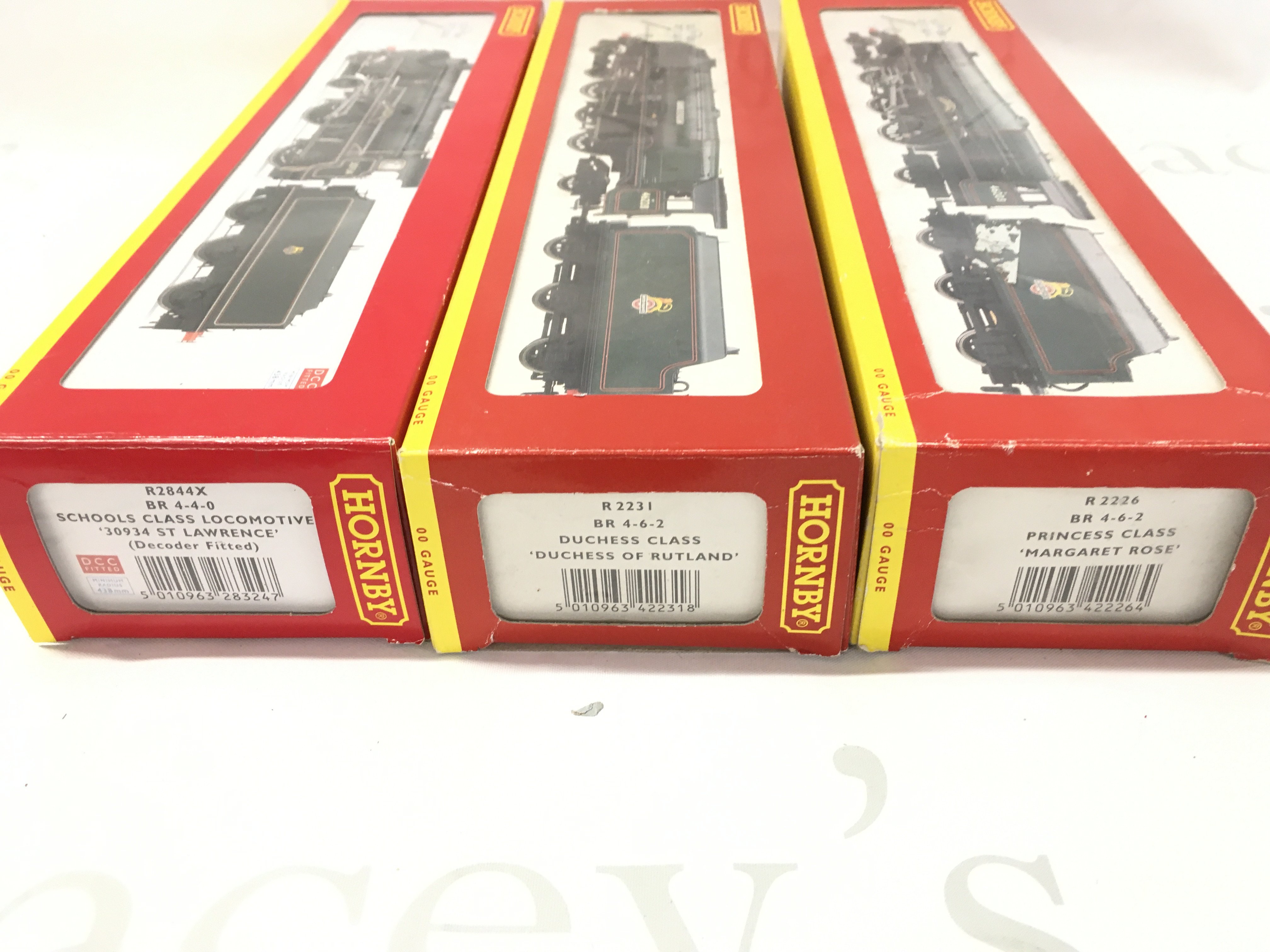 3 X Boxed Hornby 00 Gauge Locomotives. A BR Duchess Class #R2231. A Schools Class Locomotive #R2844X And A Princess Class #R2226.