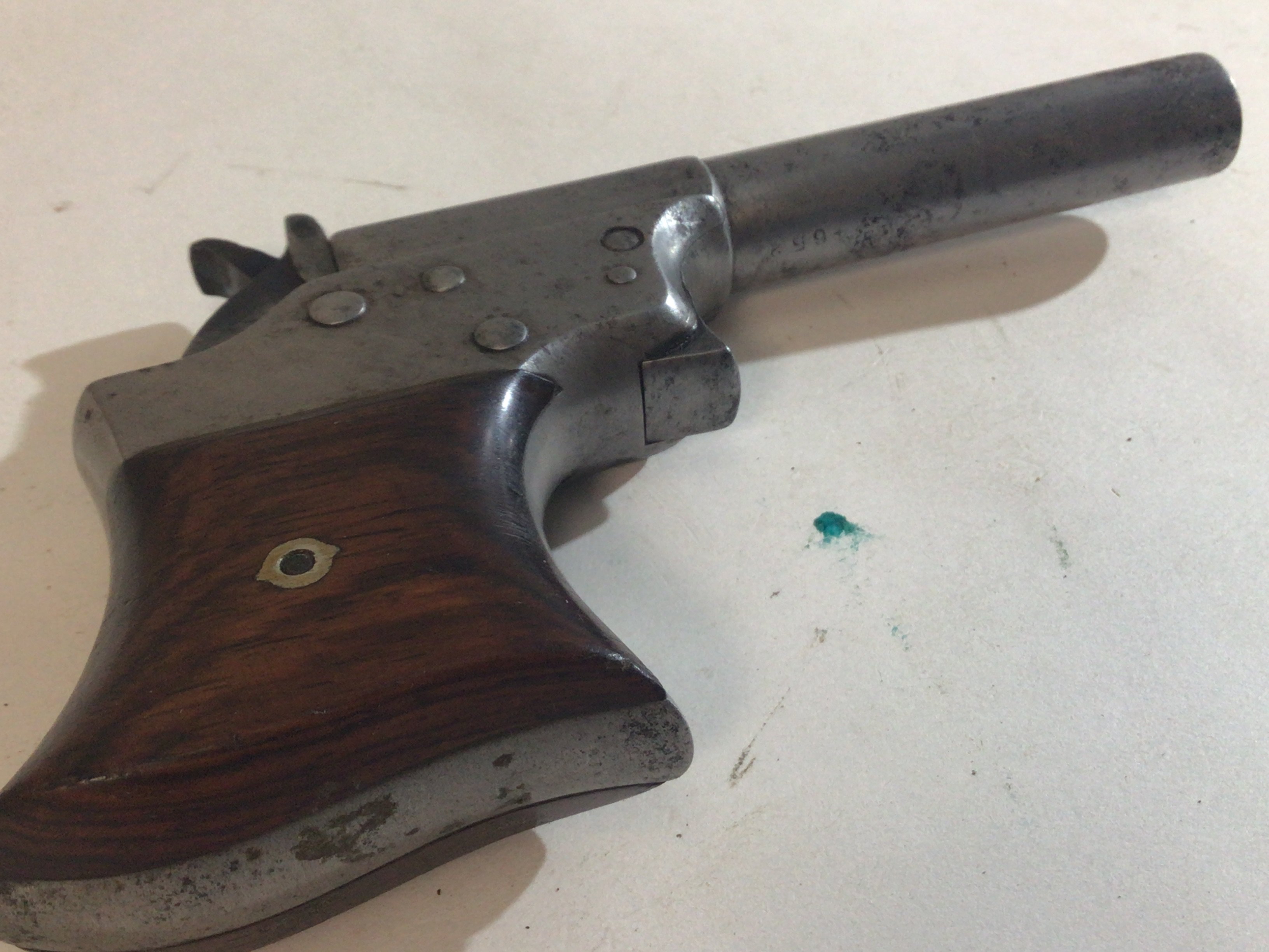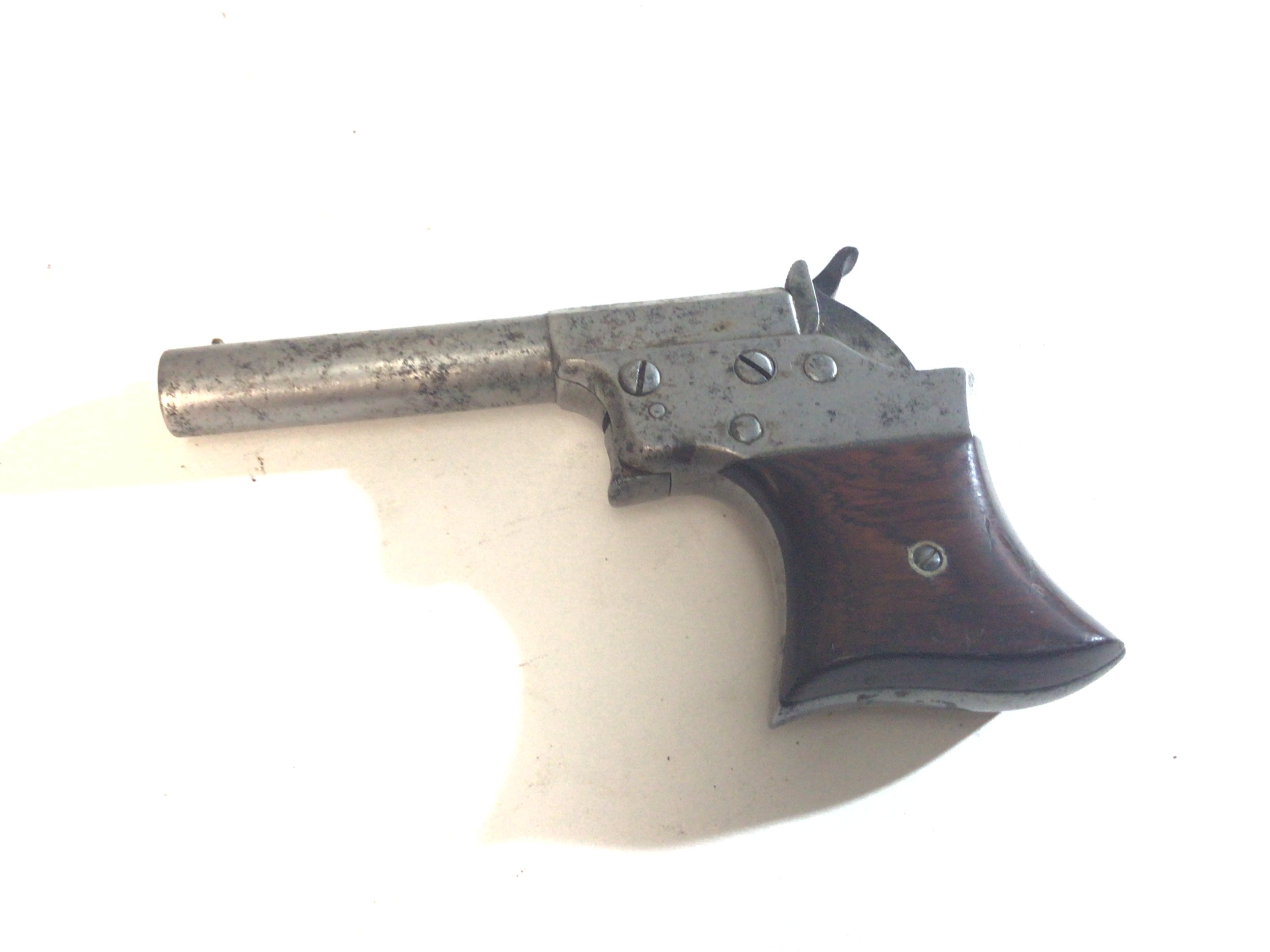 A Rare American Remington .41 Caliber Rim Fire Vest Pocket Deringer Pistol. Circa 1860 these where produced in low numbers the top of the action with Remington and Patient dates Oct 1 1861 serial number possible 861