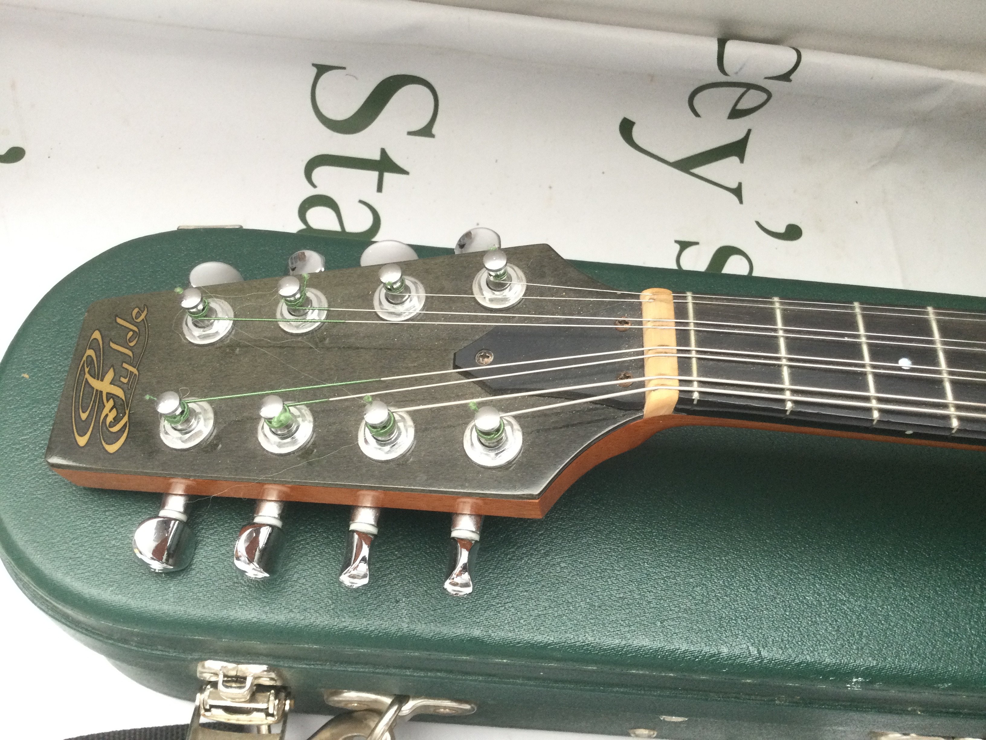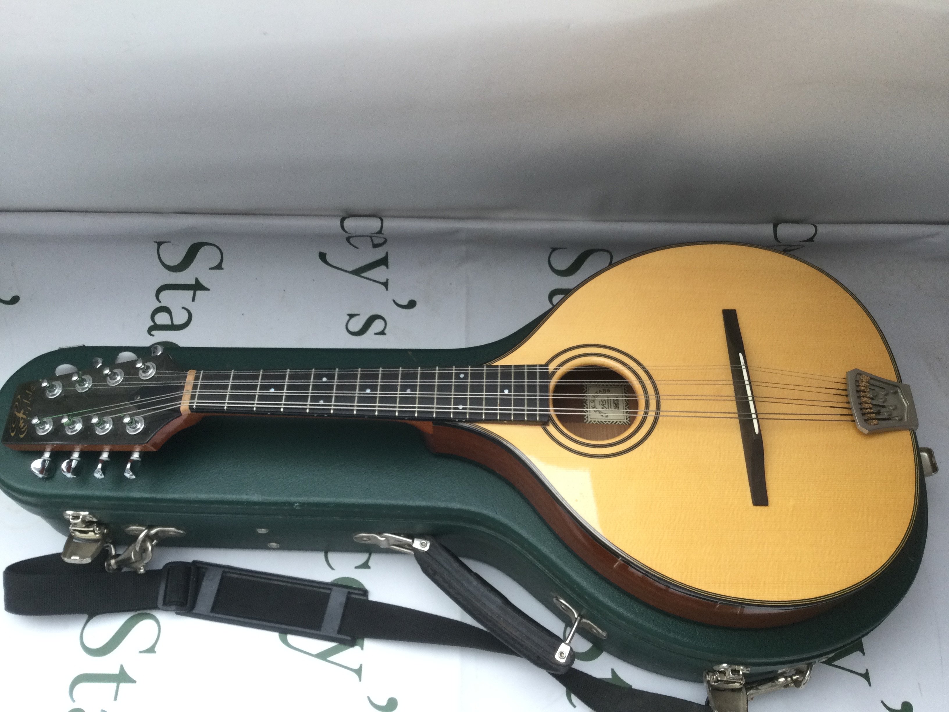 A fine quality Fylde mandolin with hard carry case and a mandolin songbook.