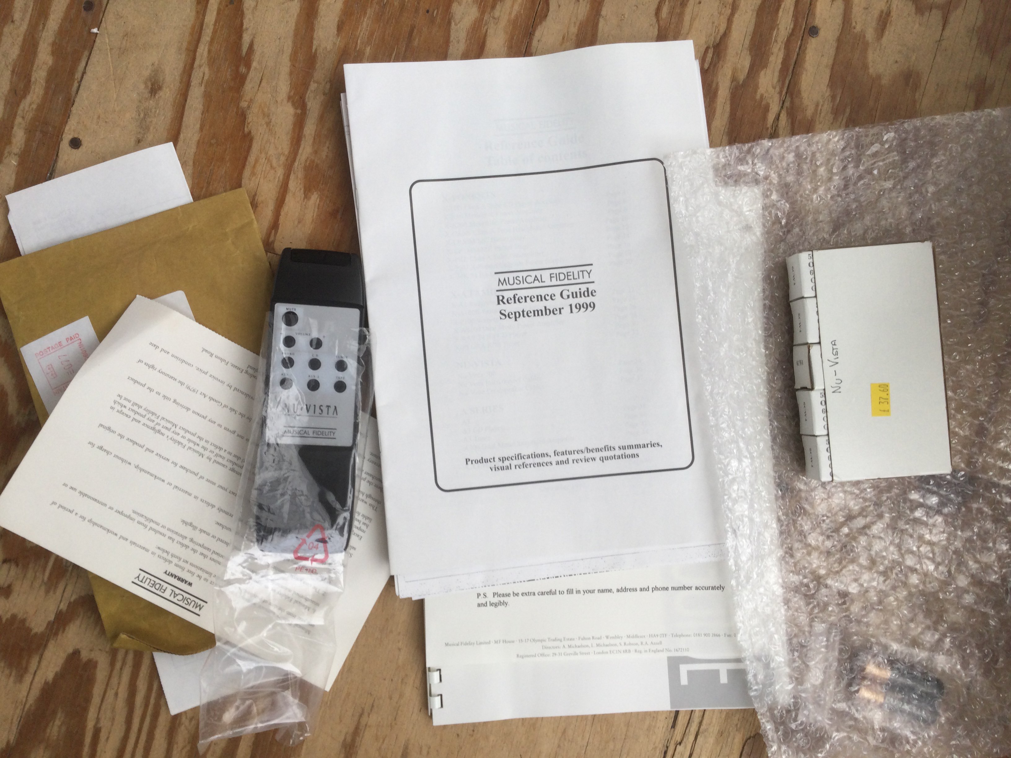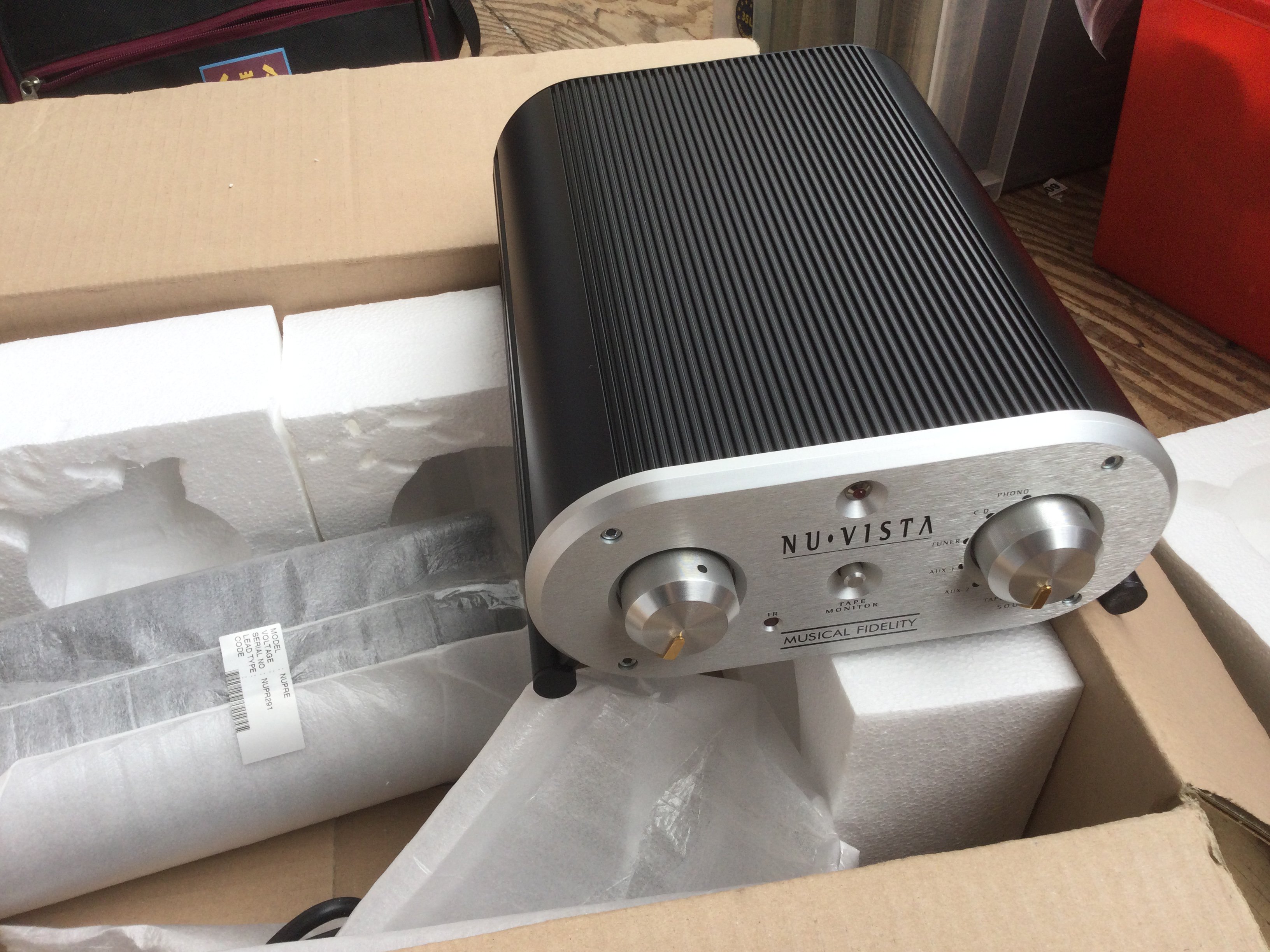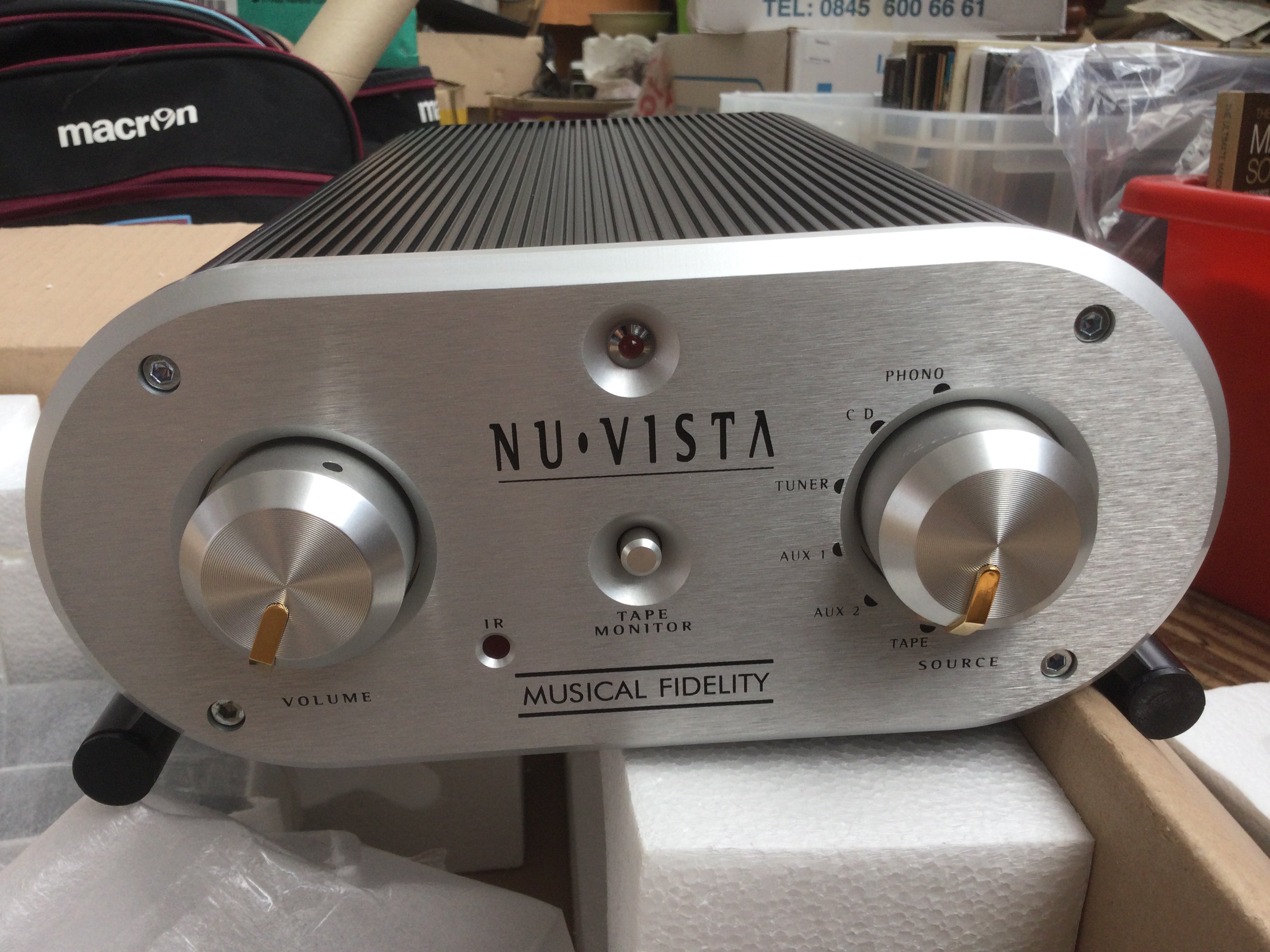 A boxed and as new Nu Vista Musical Fidelity integrated valve amplifier with cables and manual.