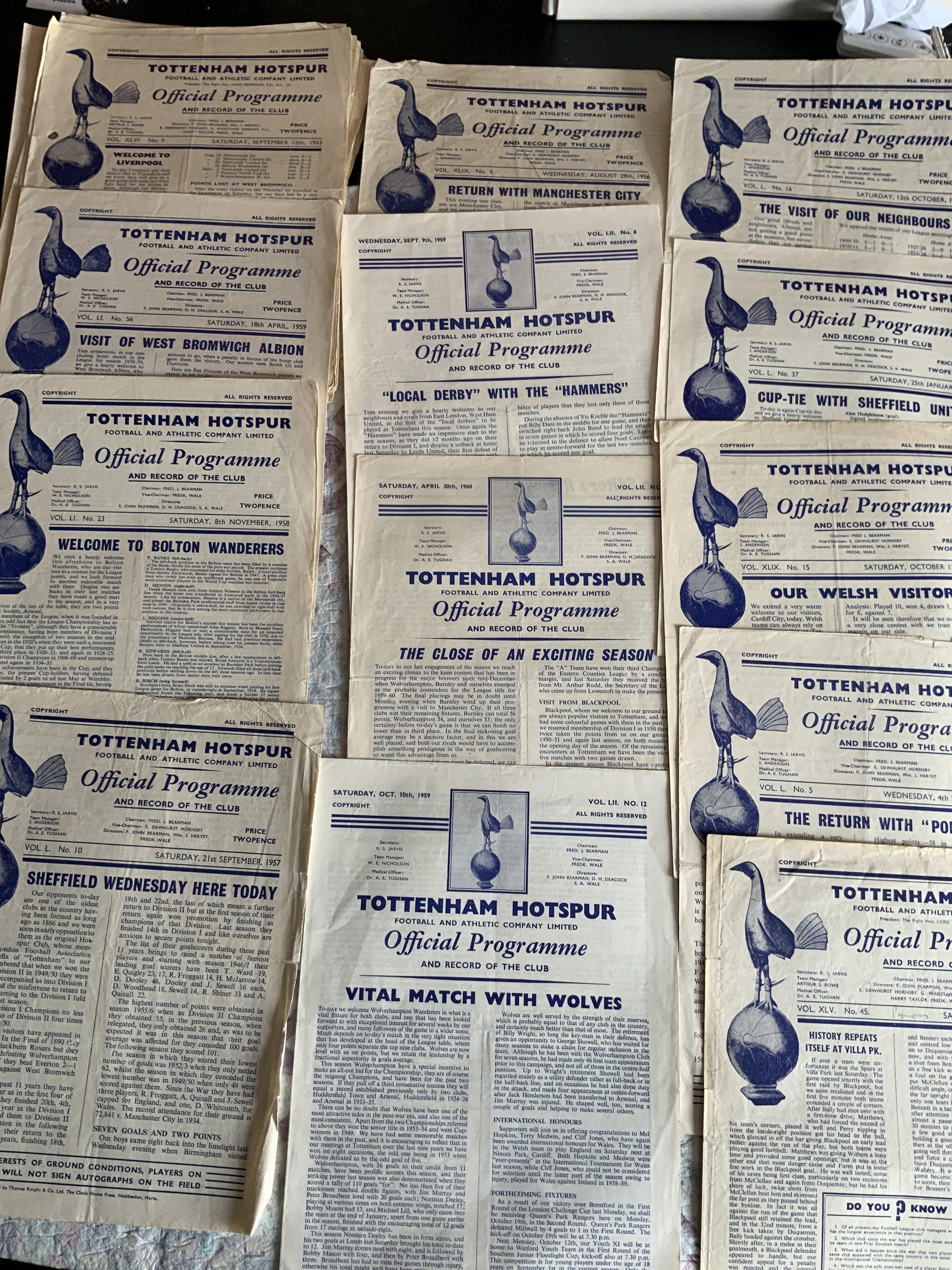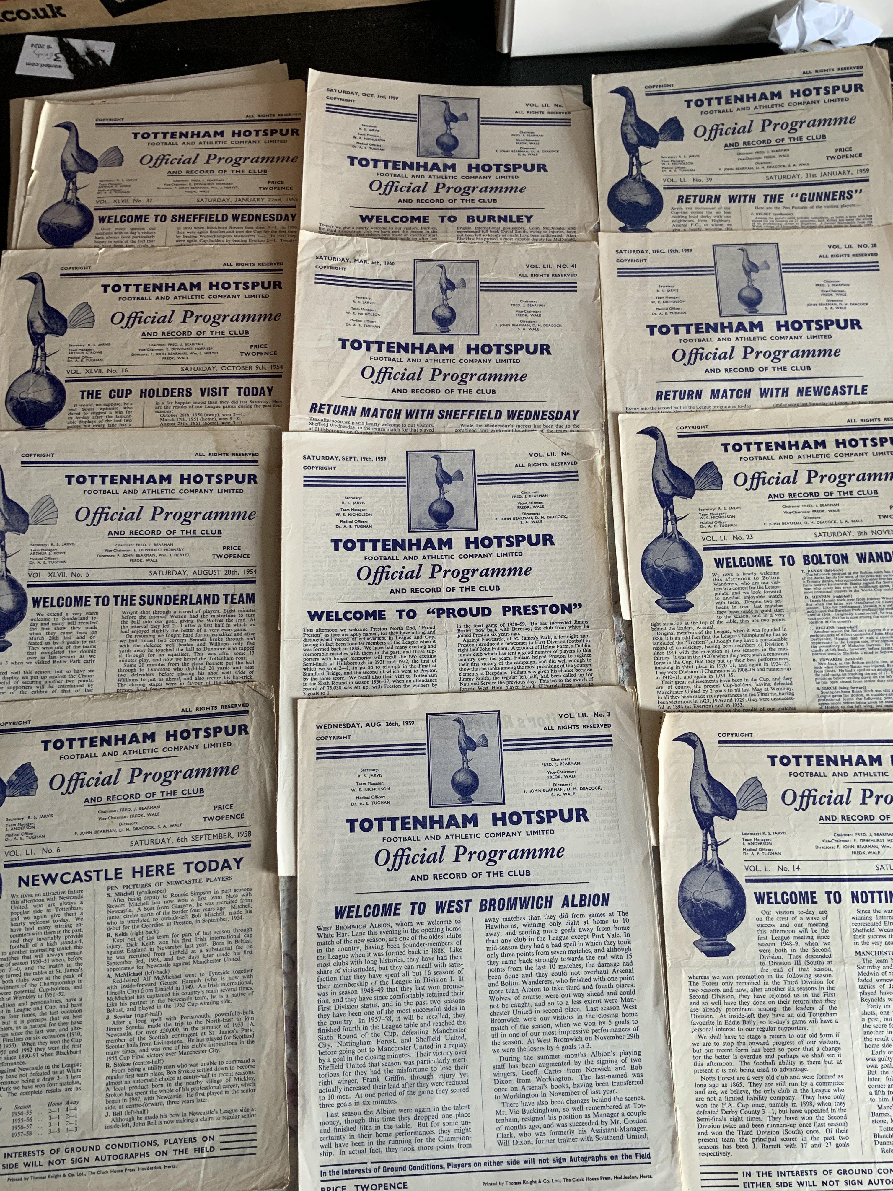 Tottenham 1950s Home Football Programmes: From 52/53 to 60/61 which are 4 page sheets. Fair/good with no duplication. (40)
