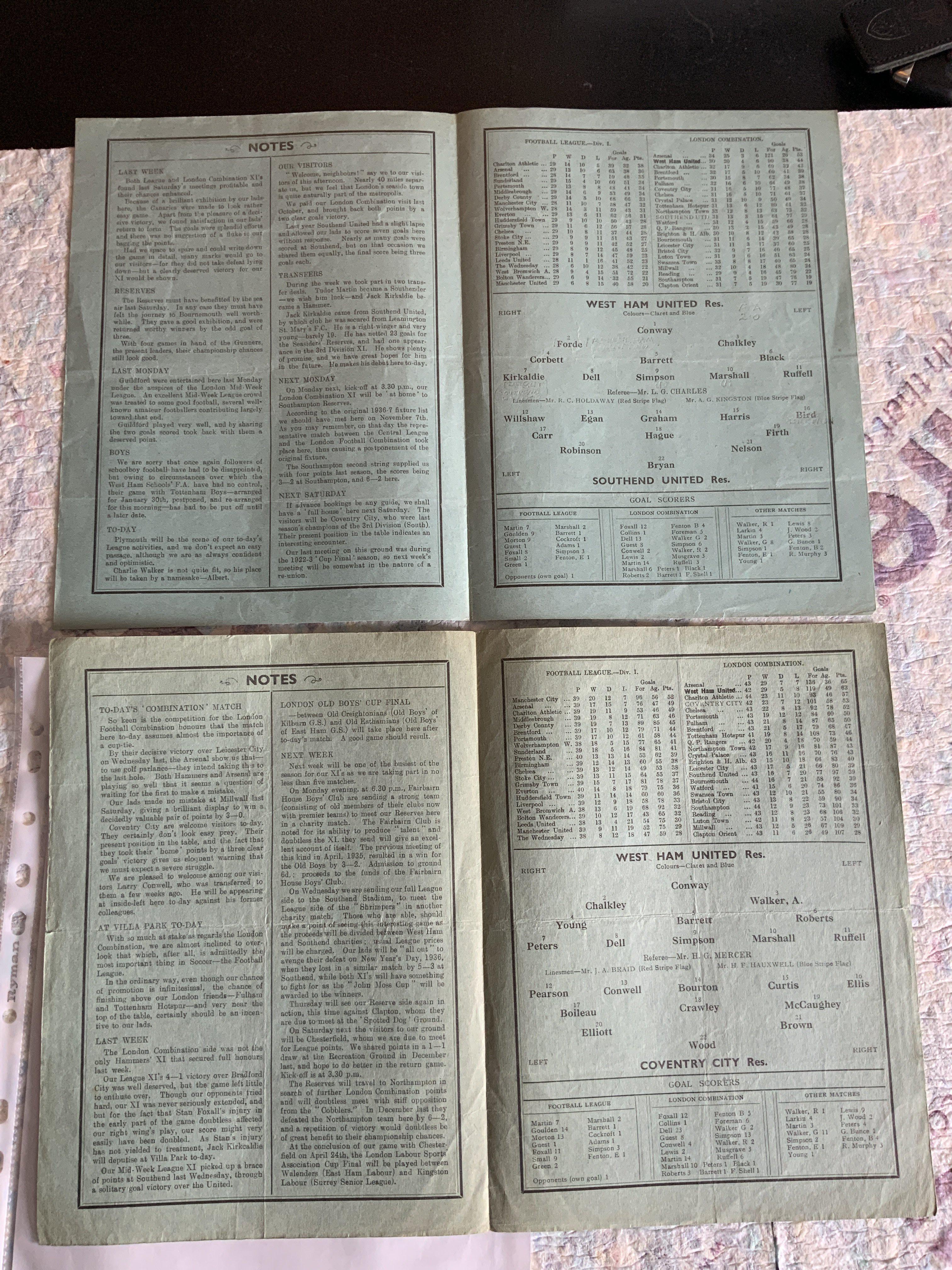 36/37 West Ham Home Reserve Football Programmes: London Combination matches v Southend and Coventry In good condition with no team changes. (2)
