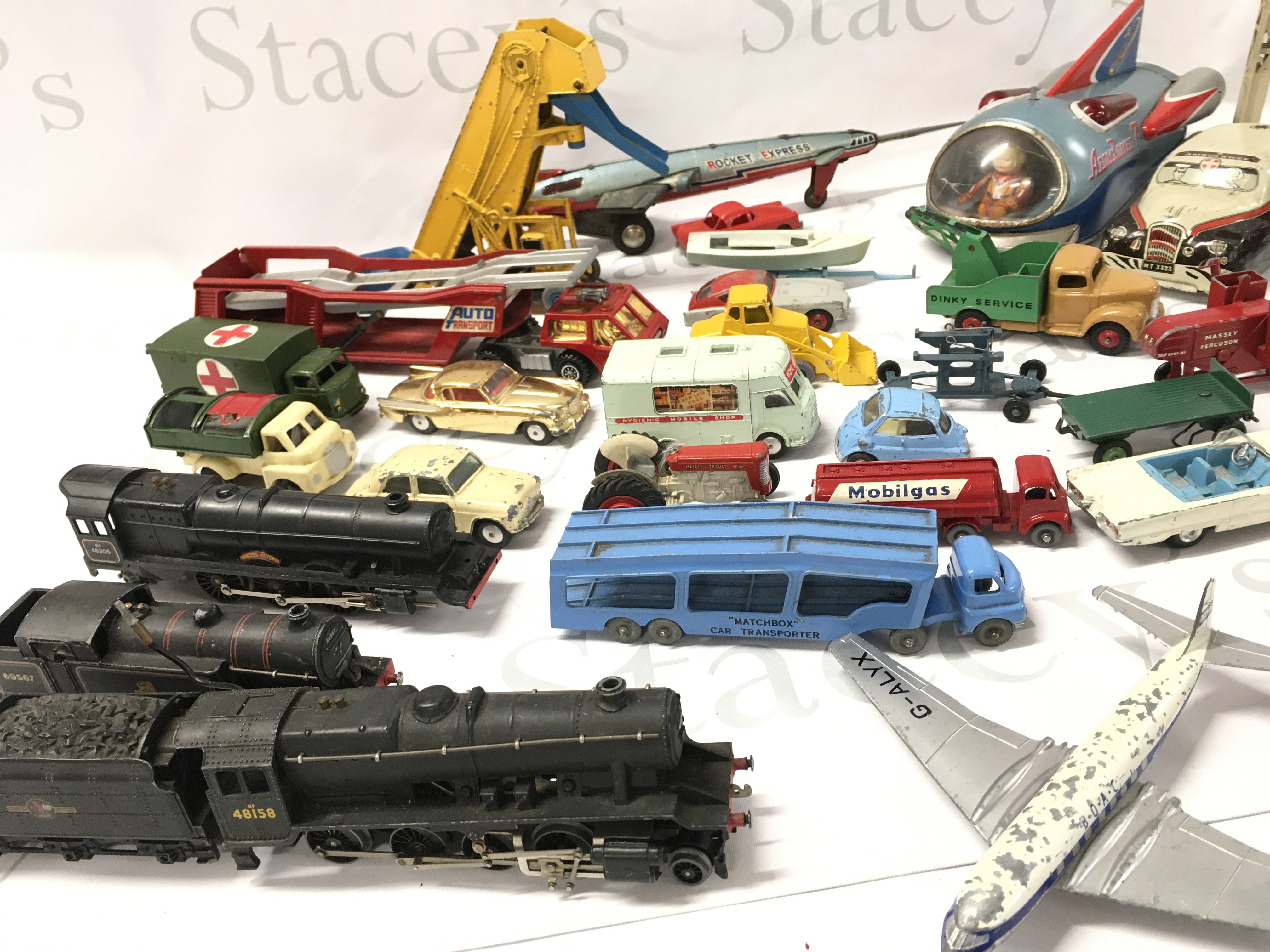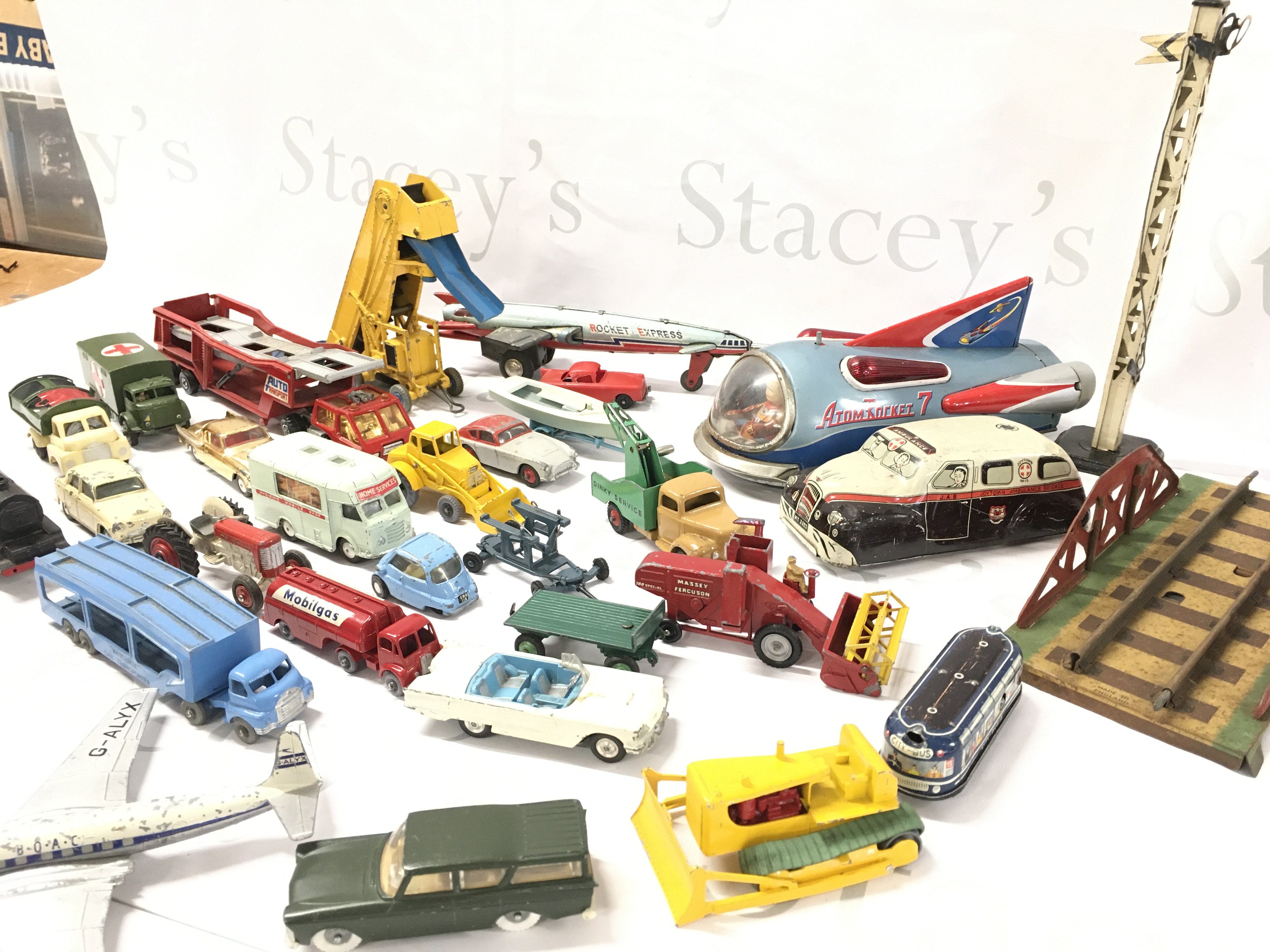 A Collection of Playworn Diecast And Tinplate. Includes Corgi. Dinky Also 3 00 Gauge Locos.