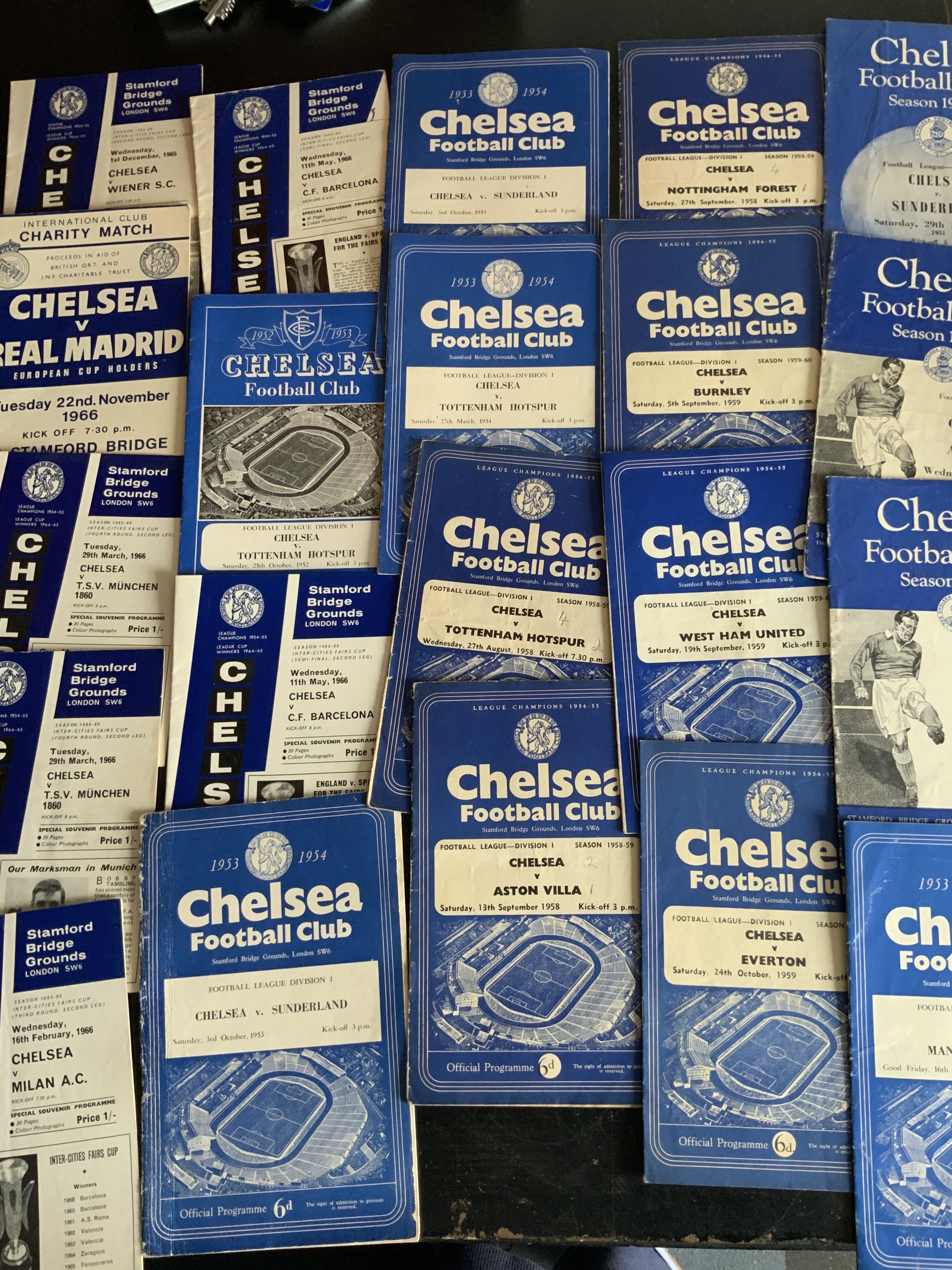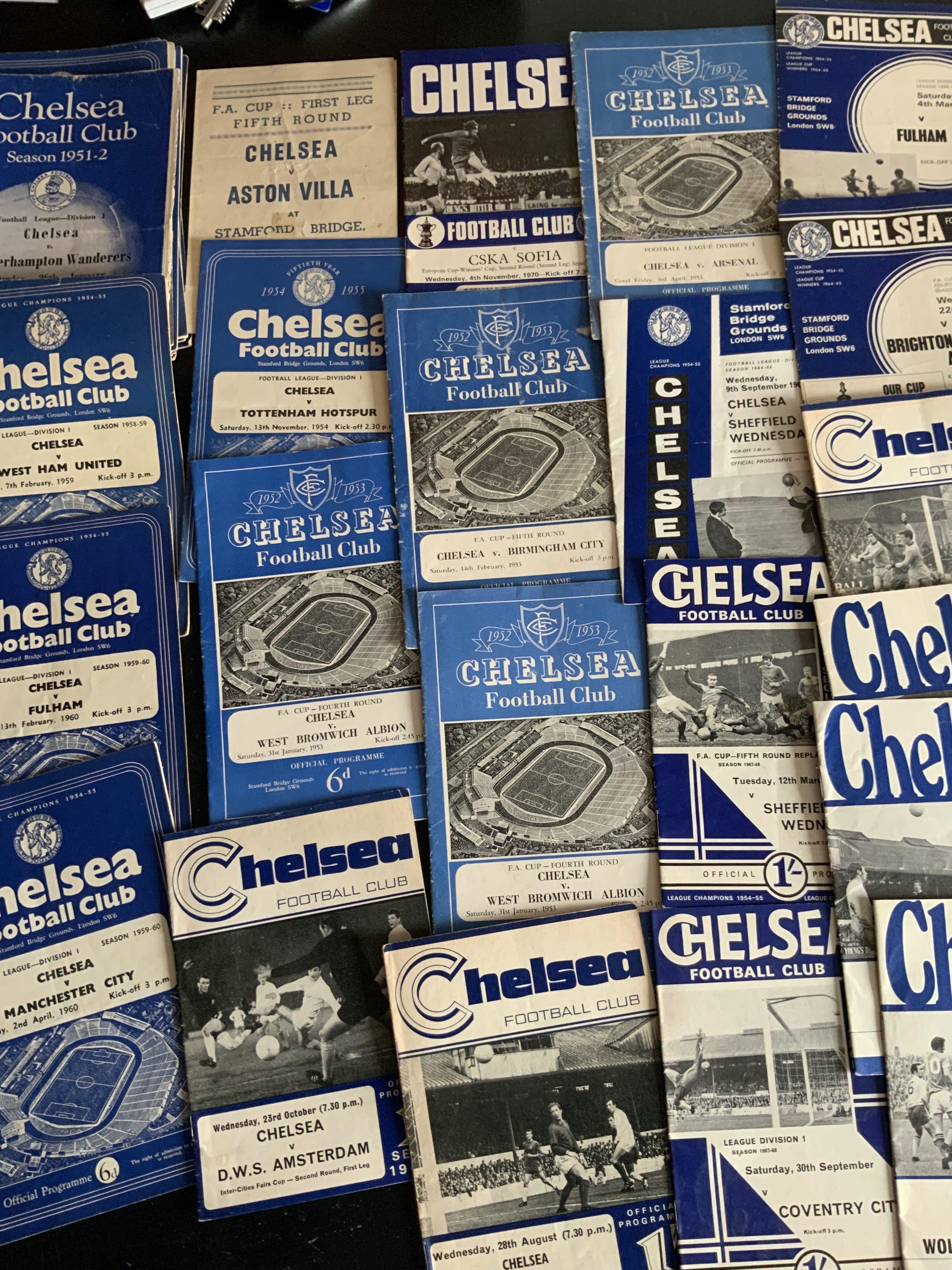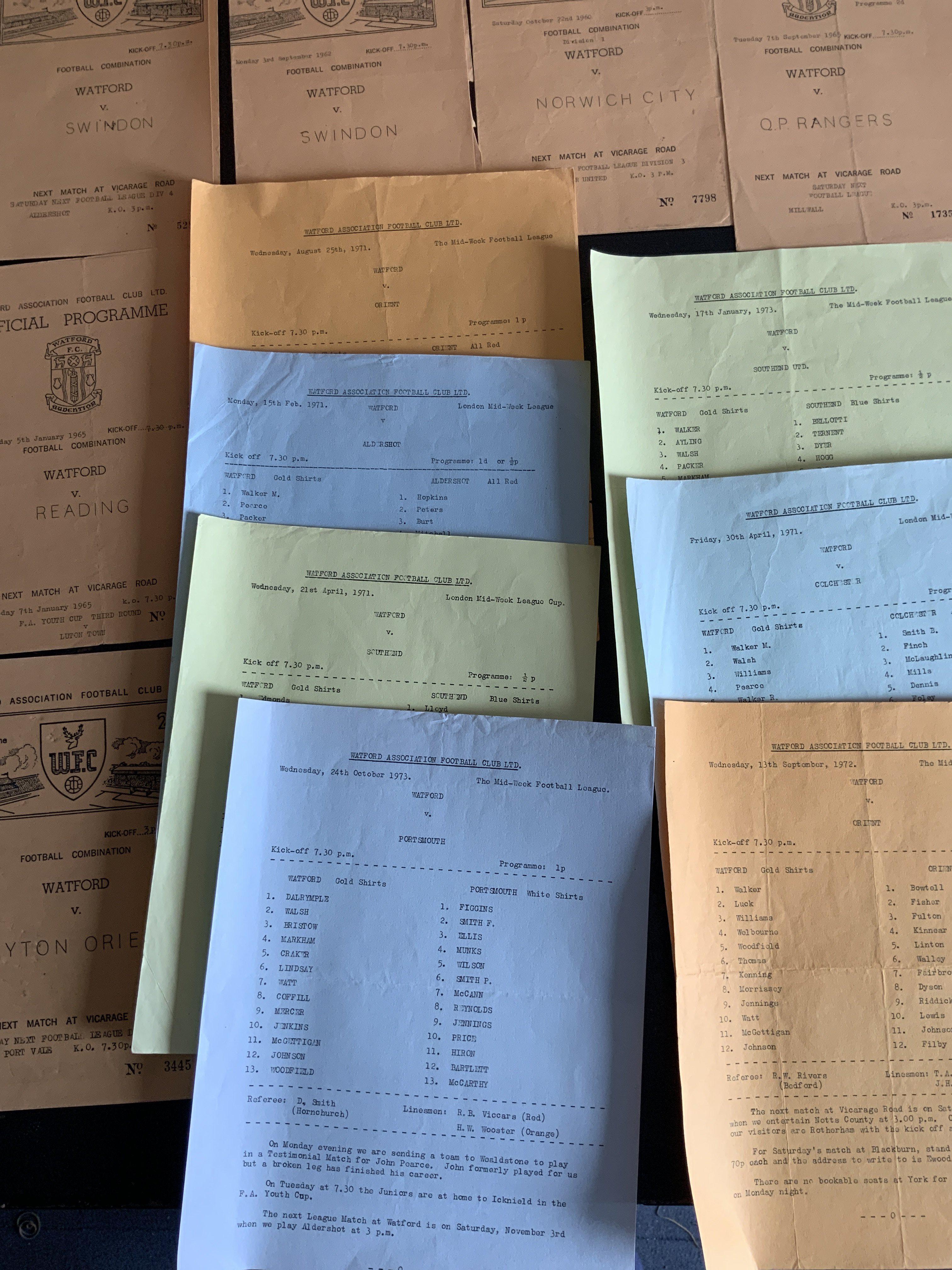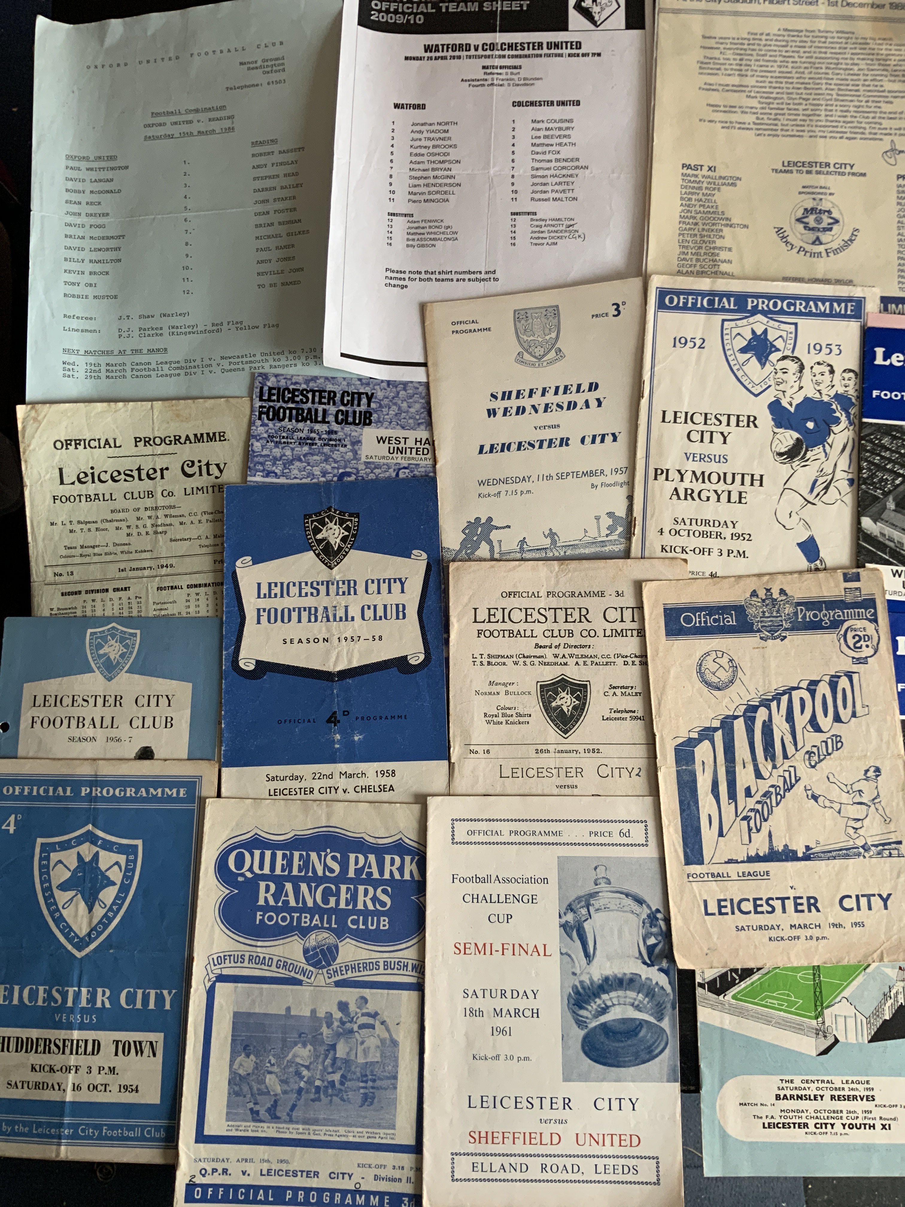 Watford Chelsea + Leicester City Football Programmes: Good condition Watford reserves from the early 60s x 6 and some large sheets from the London Midweek League in the early 70s. C/W some mixed condition Leicester programmes to include home v 48/49 Coventry. There are around 50 programmes also of Chelsea homes from the 50s and 60s.