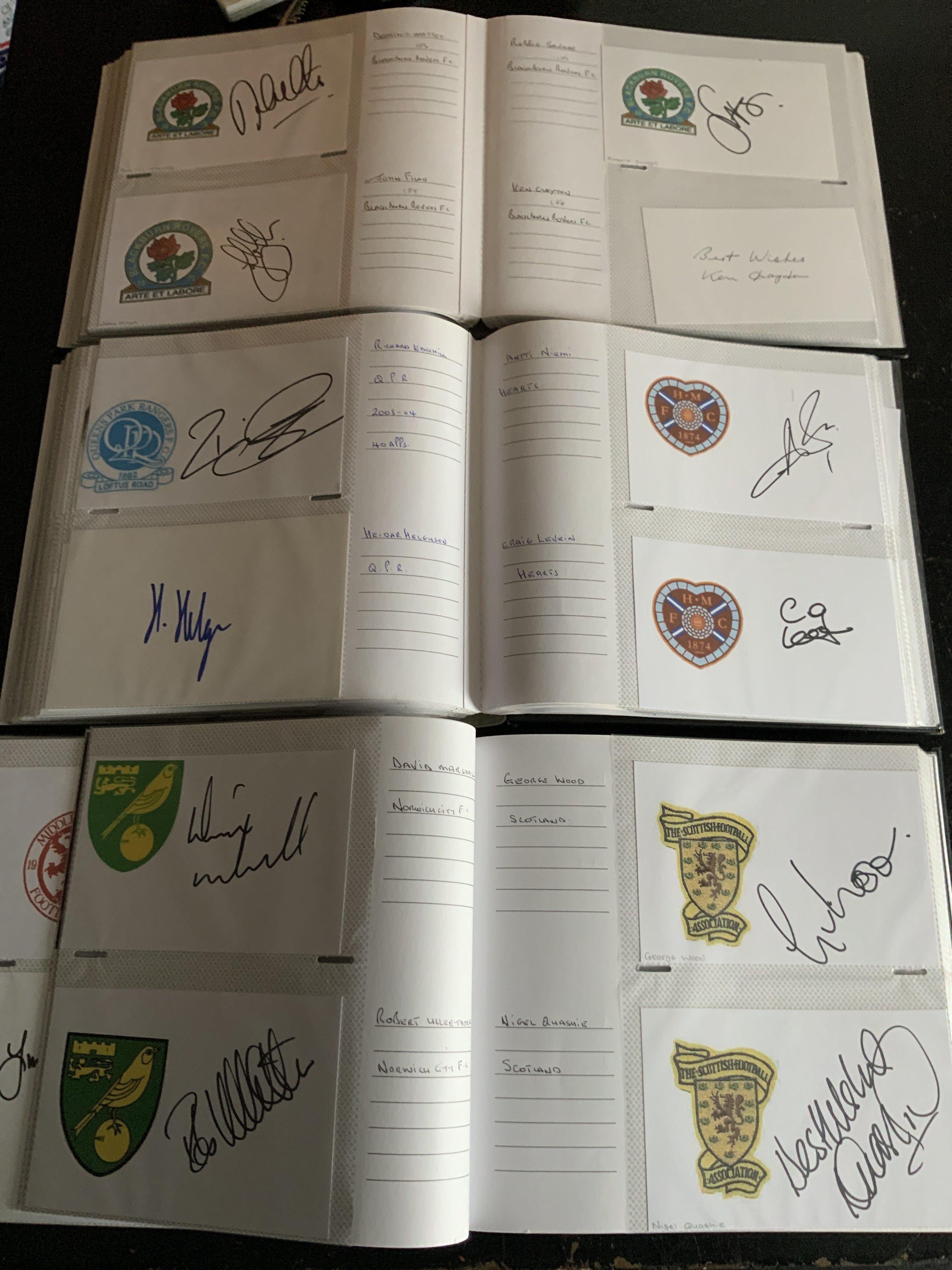 Football Player Signed White Card Collection: 3 albums housing over 500 signatures of footballers with each one identified. Mainly modern to include the odd postcard size photo all undedicated. (500+)
