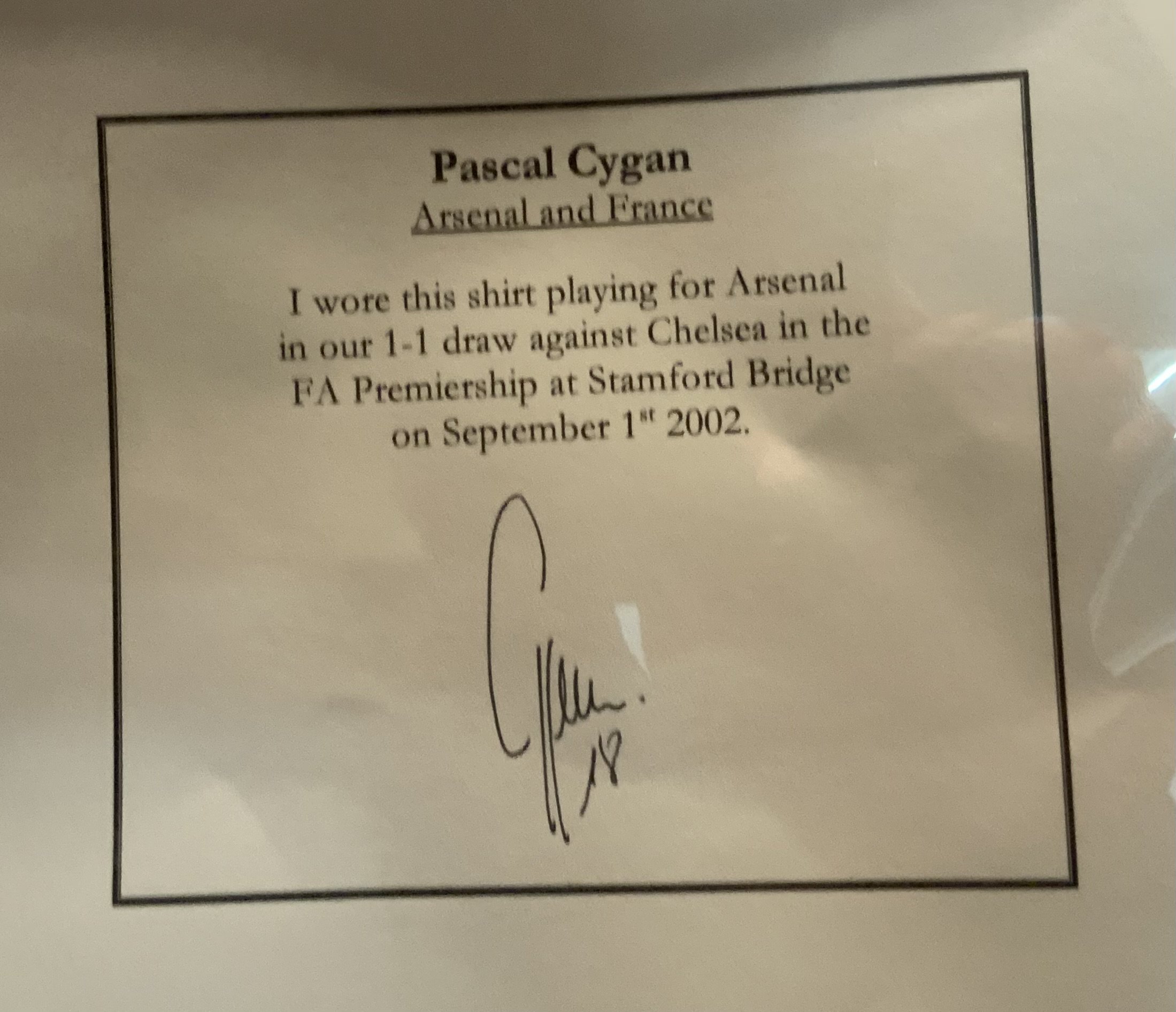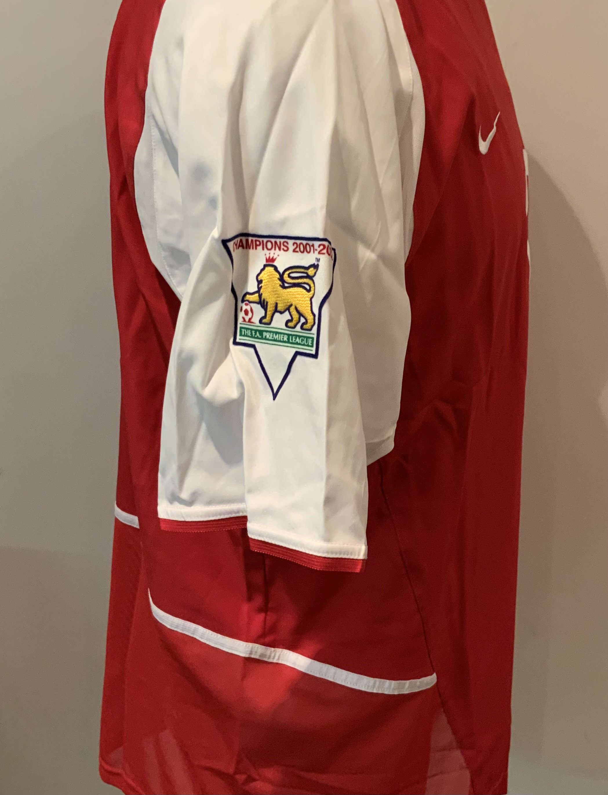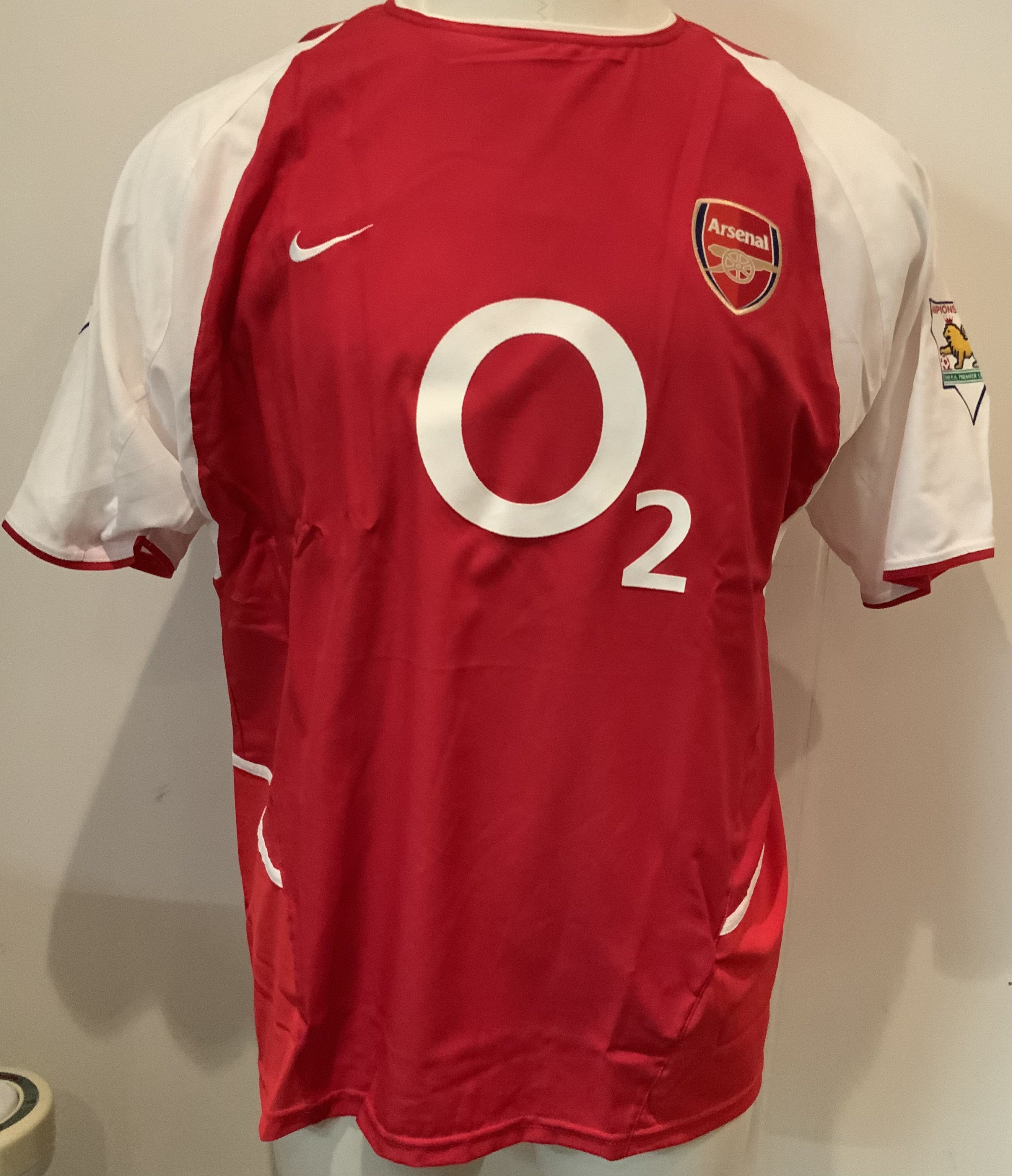 Arsenal 2002 - 2003 Match Worn Home Football Shirt: Nike red short sleeve shirt with O2 sponsorship. Cygan 18 to rear and Premier League Winners 2001/2002 sleeve badging. Inner mesh still attached. Worn by Cygan v Chelsea on 1 9 2002 with a COA signed by him.