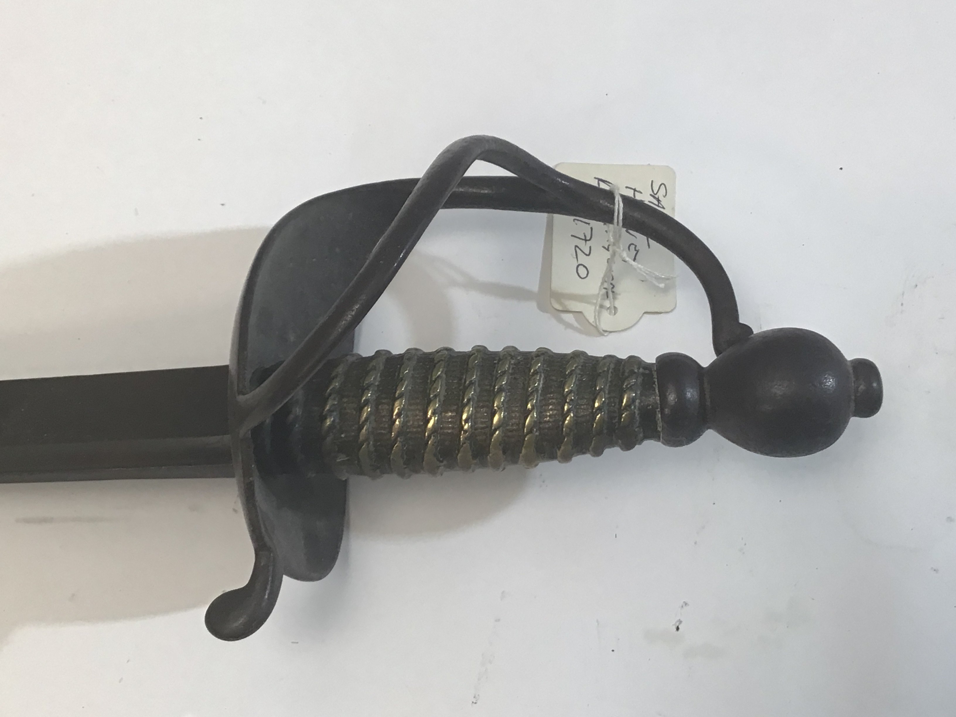 An intresting and quite rare Sword late 18th century with makers stamp mark a fox with initials for Samuel Harvey. brass grip. 79cm long no scabbard.