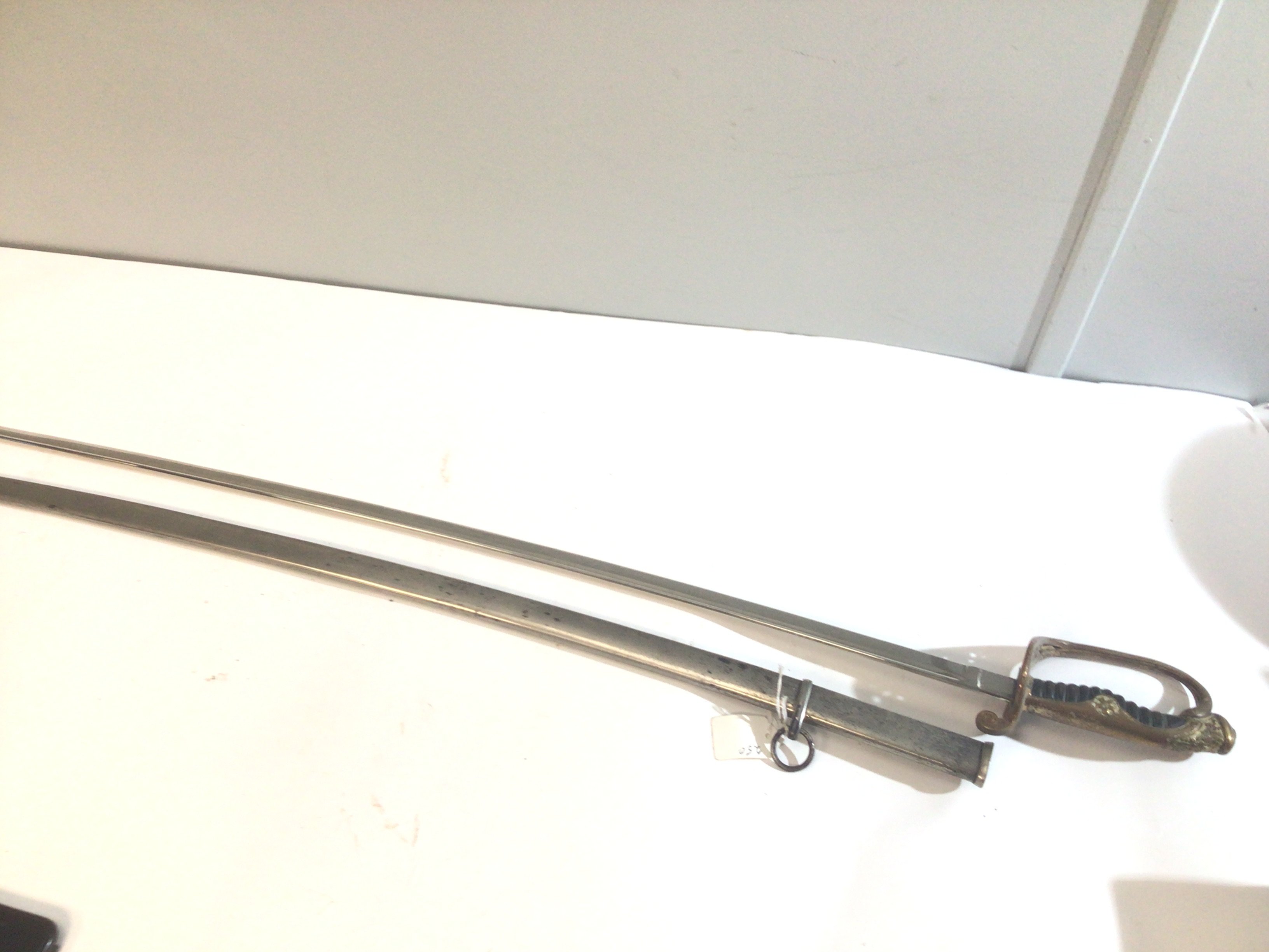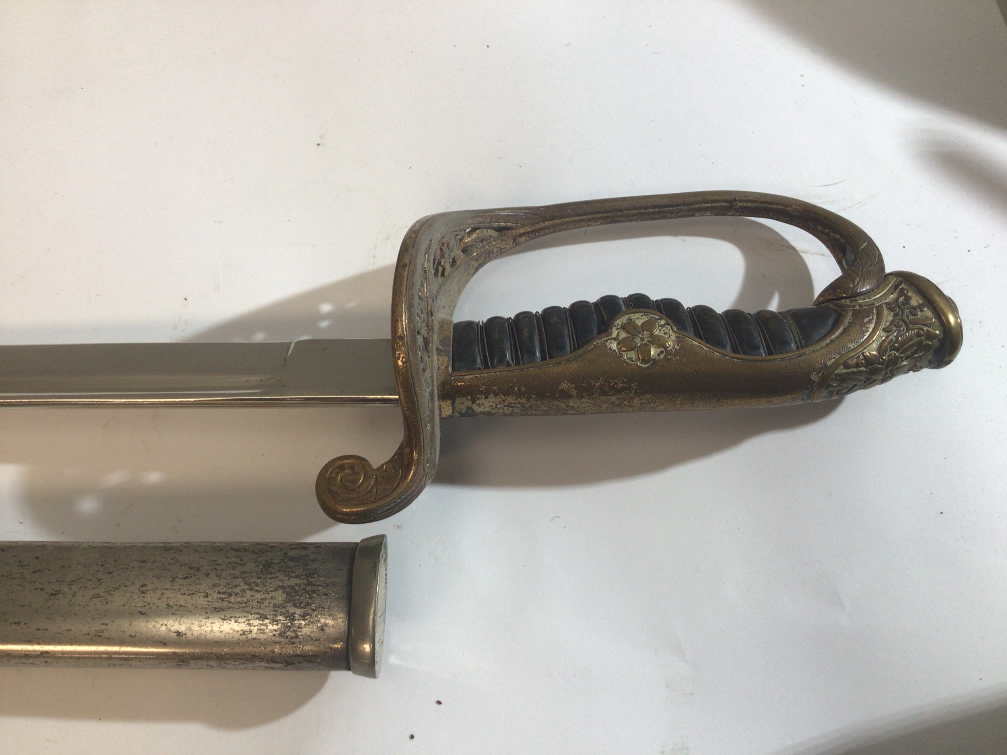 A Japanese parade sword Kyu possibly an 1875 pattern. Steel blade and scabbard the Guard with applied gilt decoration floral pattern