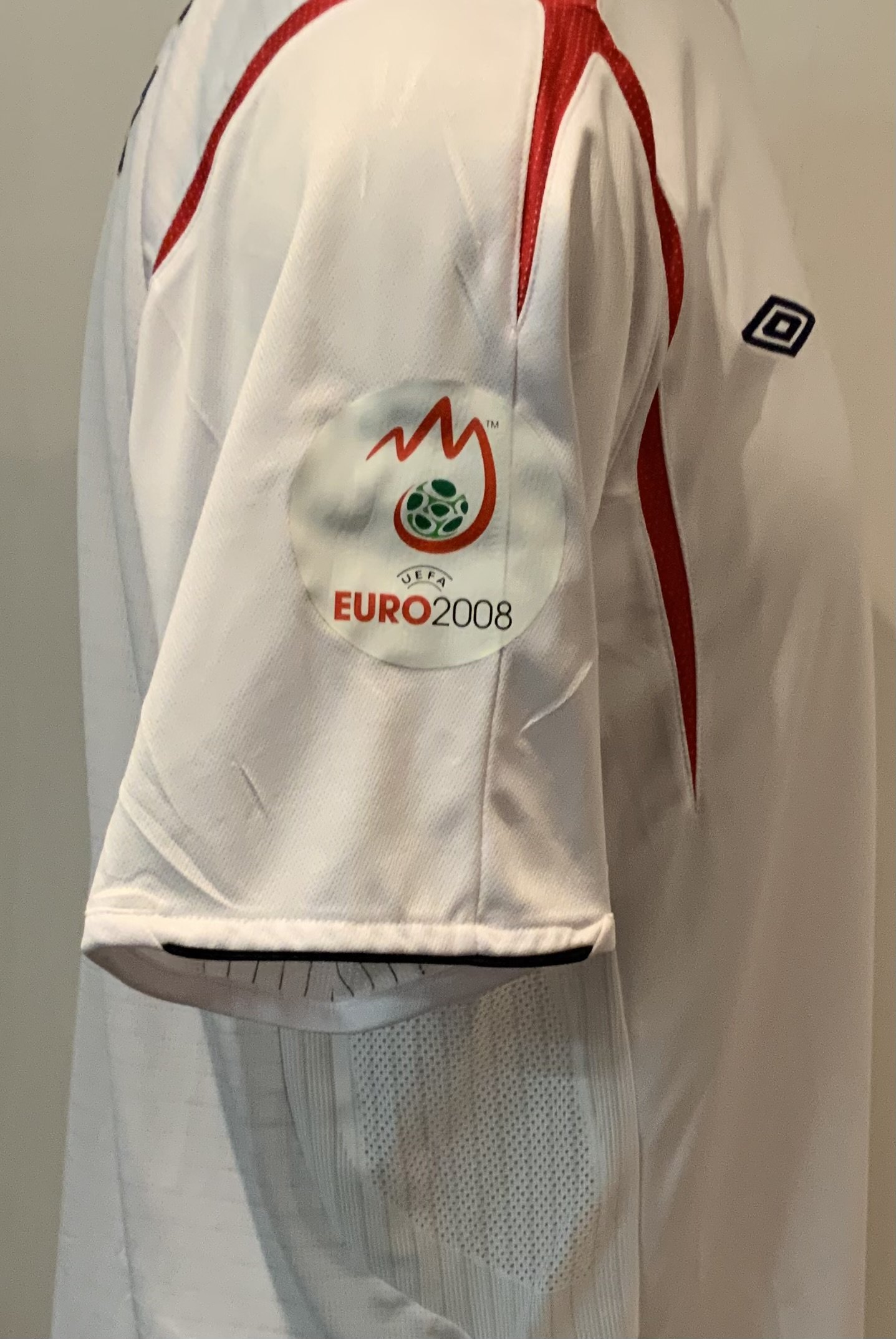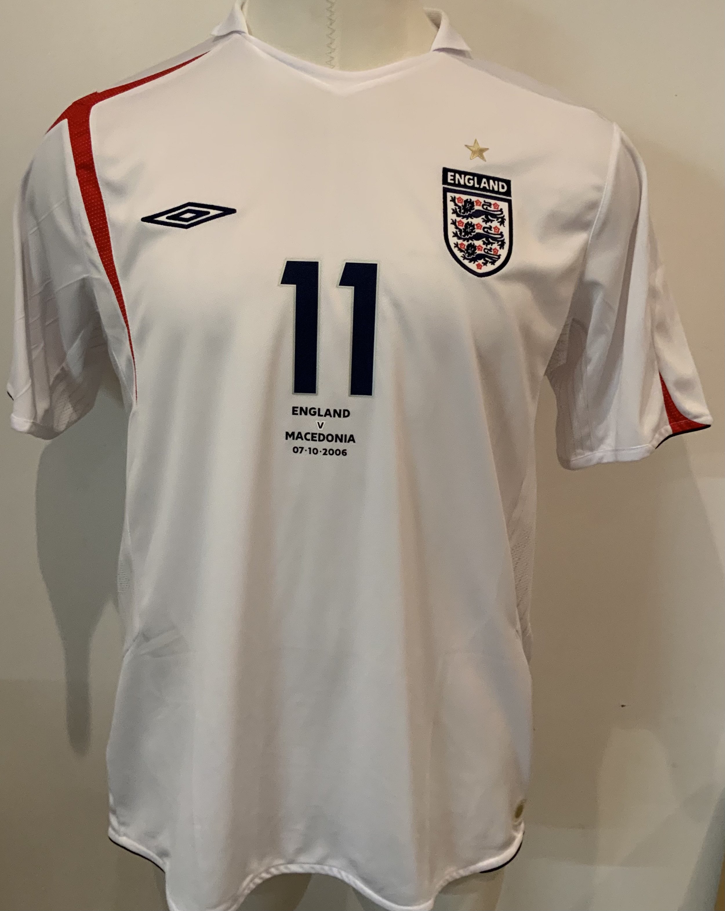 England 2006 Match Issued Home Football Shirt: Umbro short sleeve shirt with Downing 11 to rear and Euro 2008 badging to sleeve. Number 11 above match details England v Macedonia 07 10 2006. Direct from top source who we know.