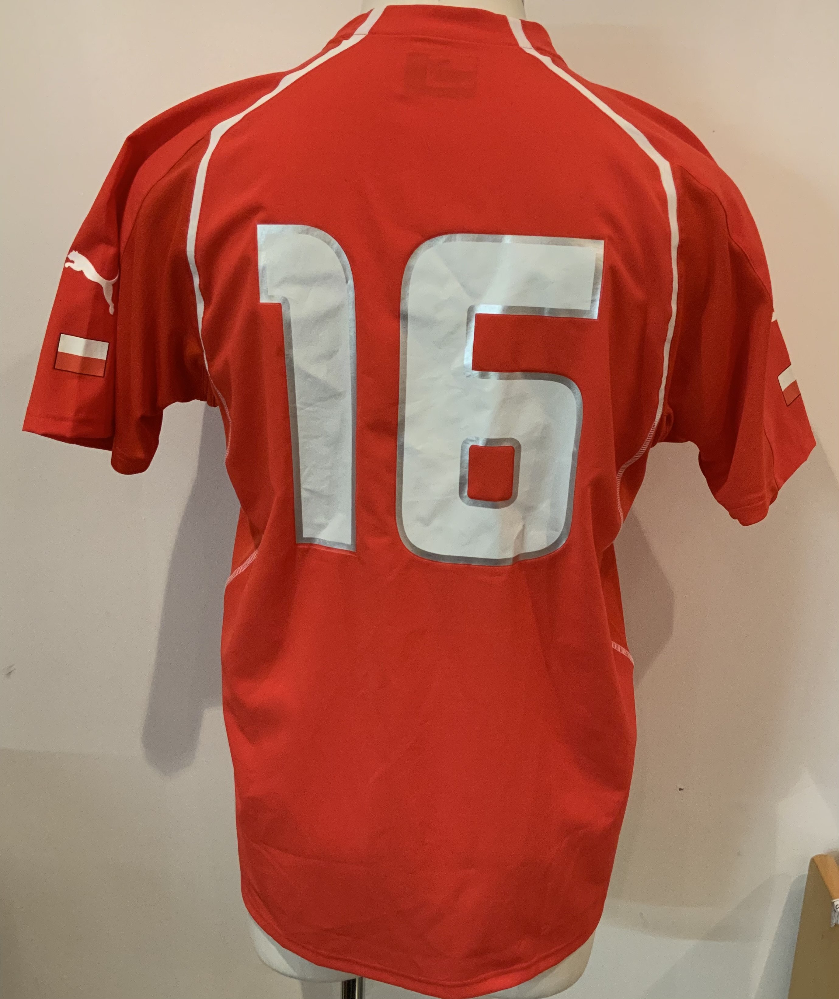 Poland 2005 Match Worn Football Shirt: Puma short sleeve shirt with number 16 to front and rear. Worn by Radomski v England at Manchester United on 12 10 2005. Direct from top source who we know.