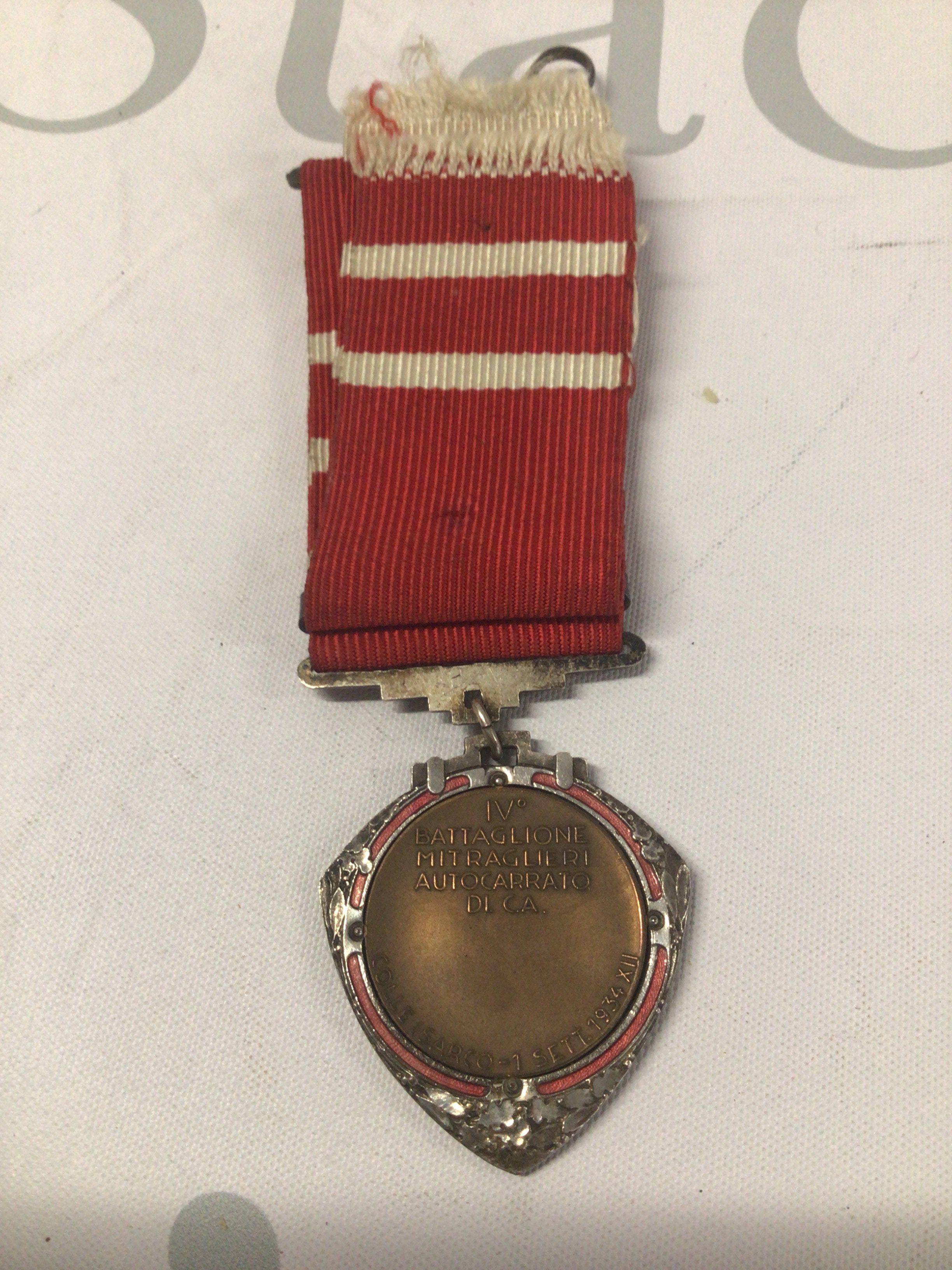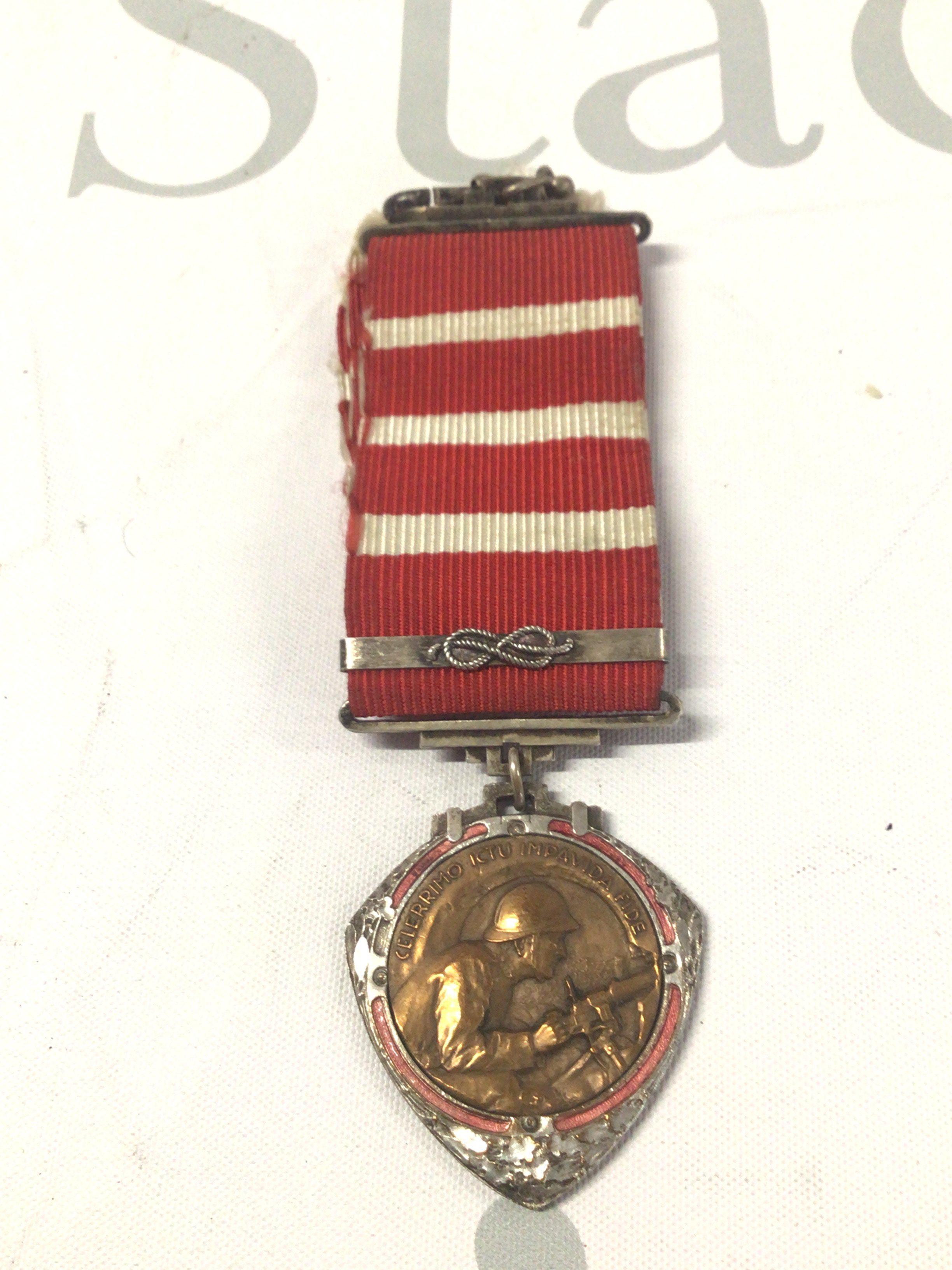 An Italian war medal centred with a solider with a machine gun.