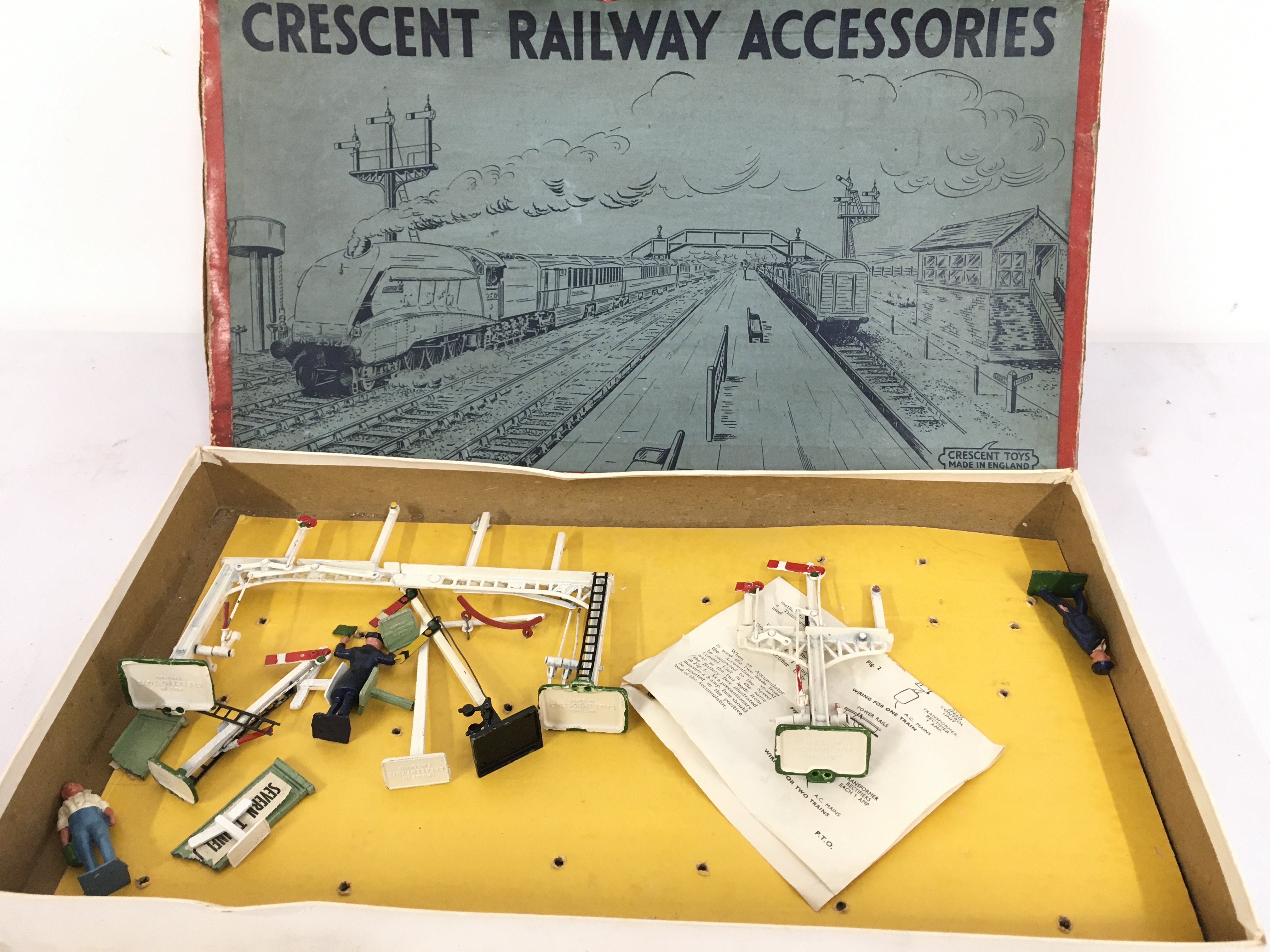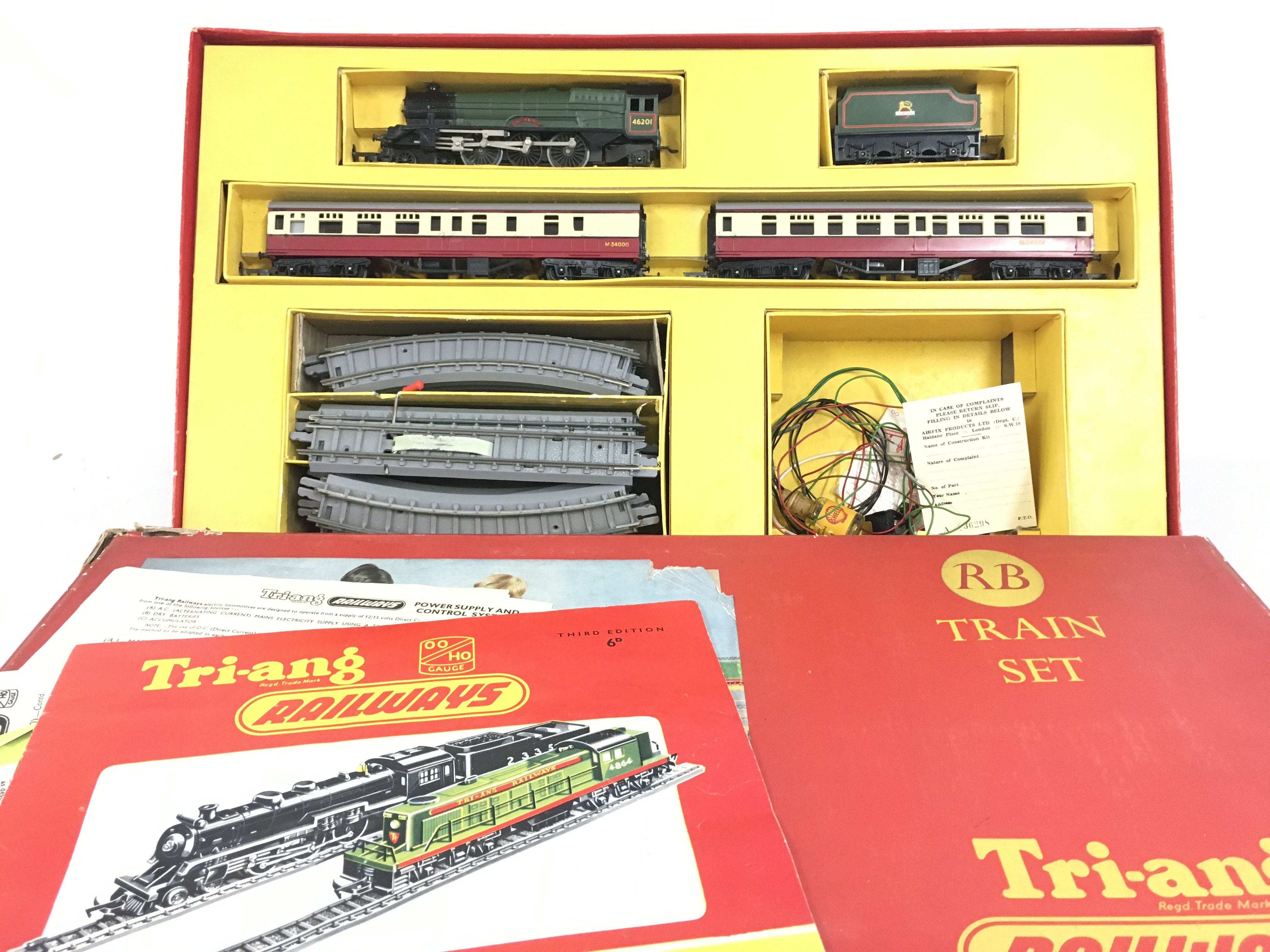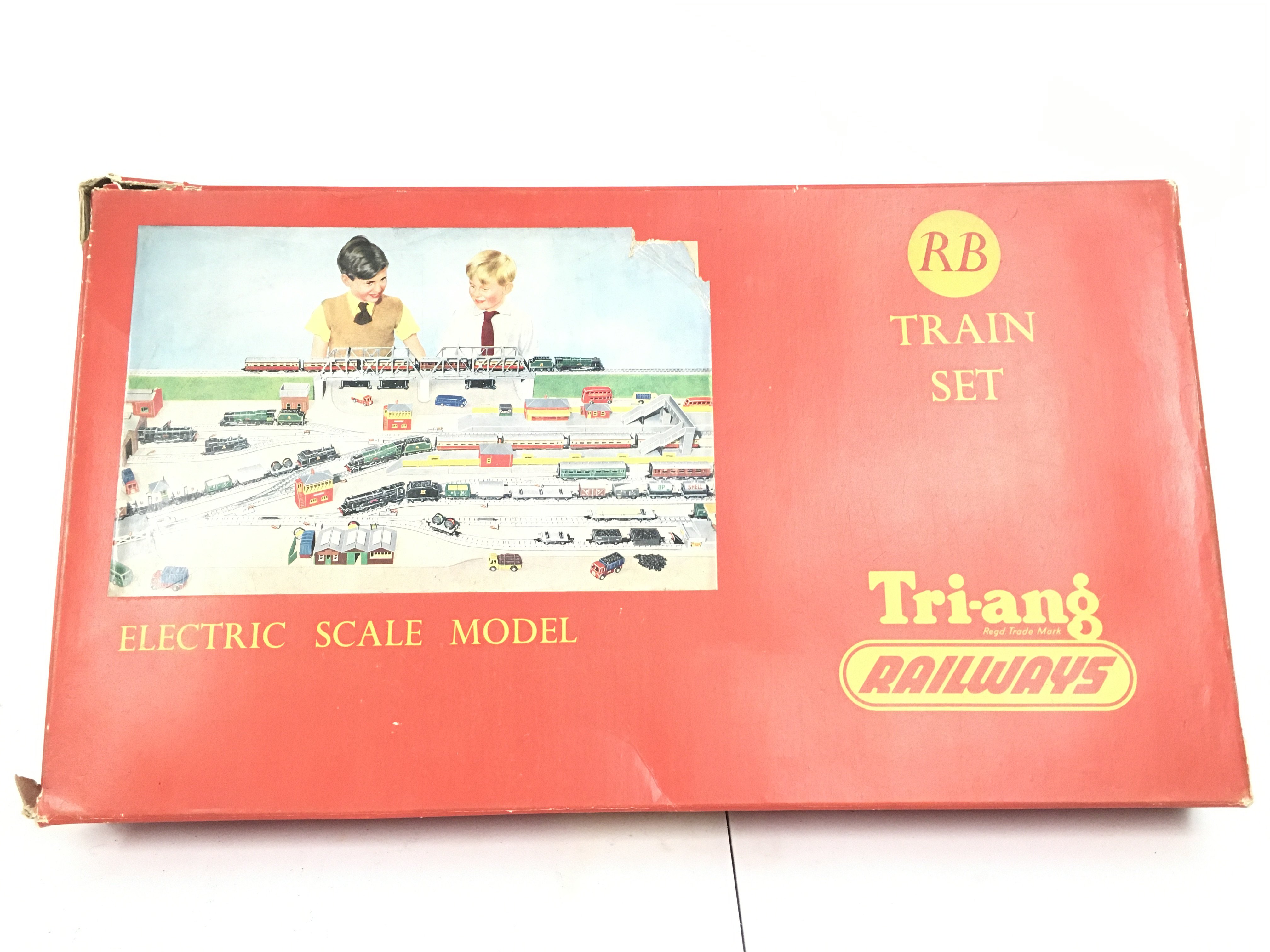A Boxed Tri-Ang 00 Gauge Set #RB with Extra Track. A Operating Mail Coach Set. A Station. A Crescent Railway Accessories Set Etc.