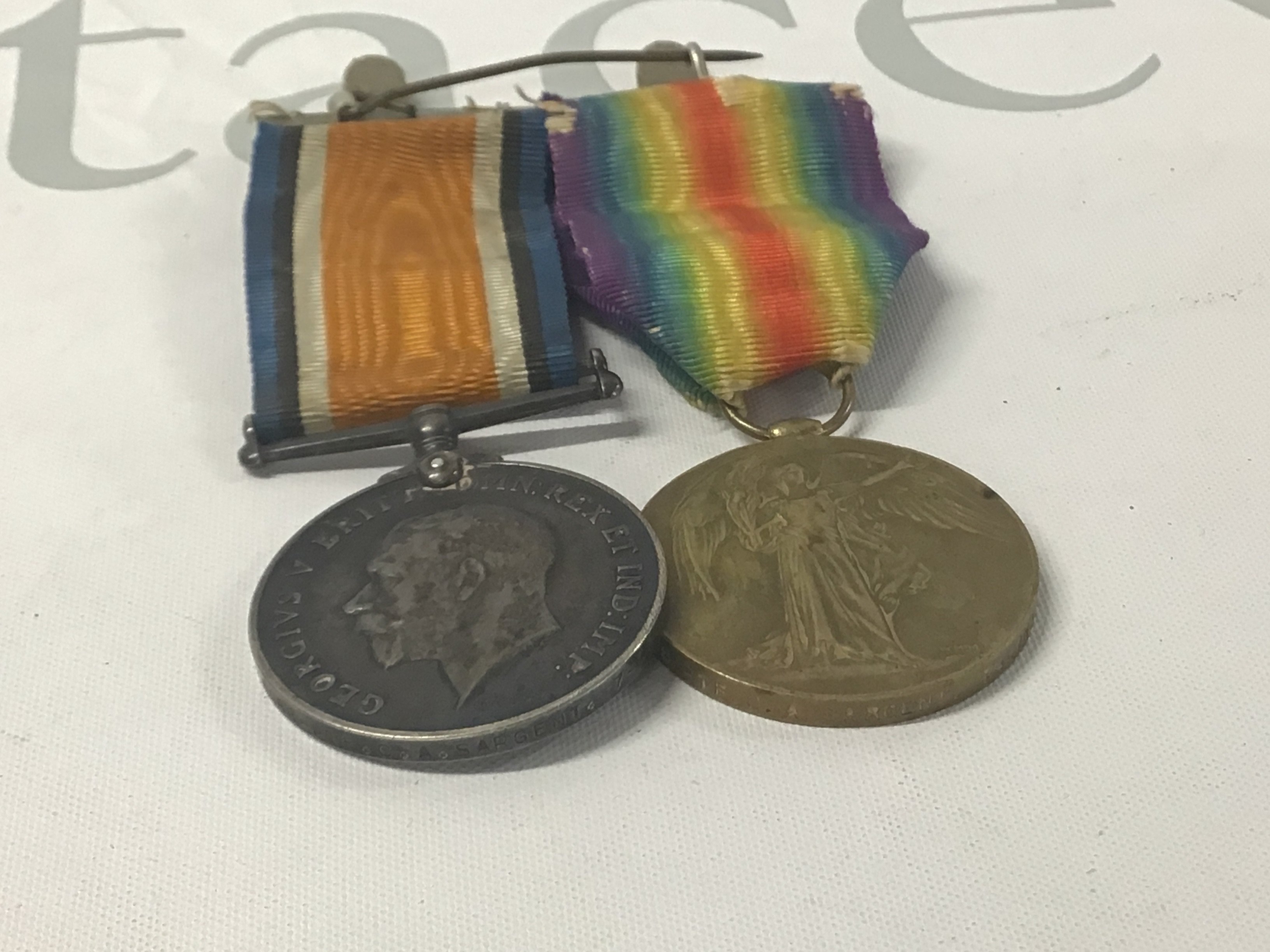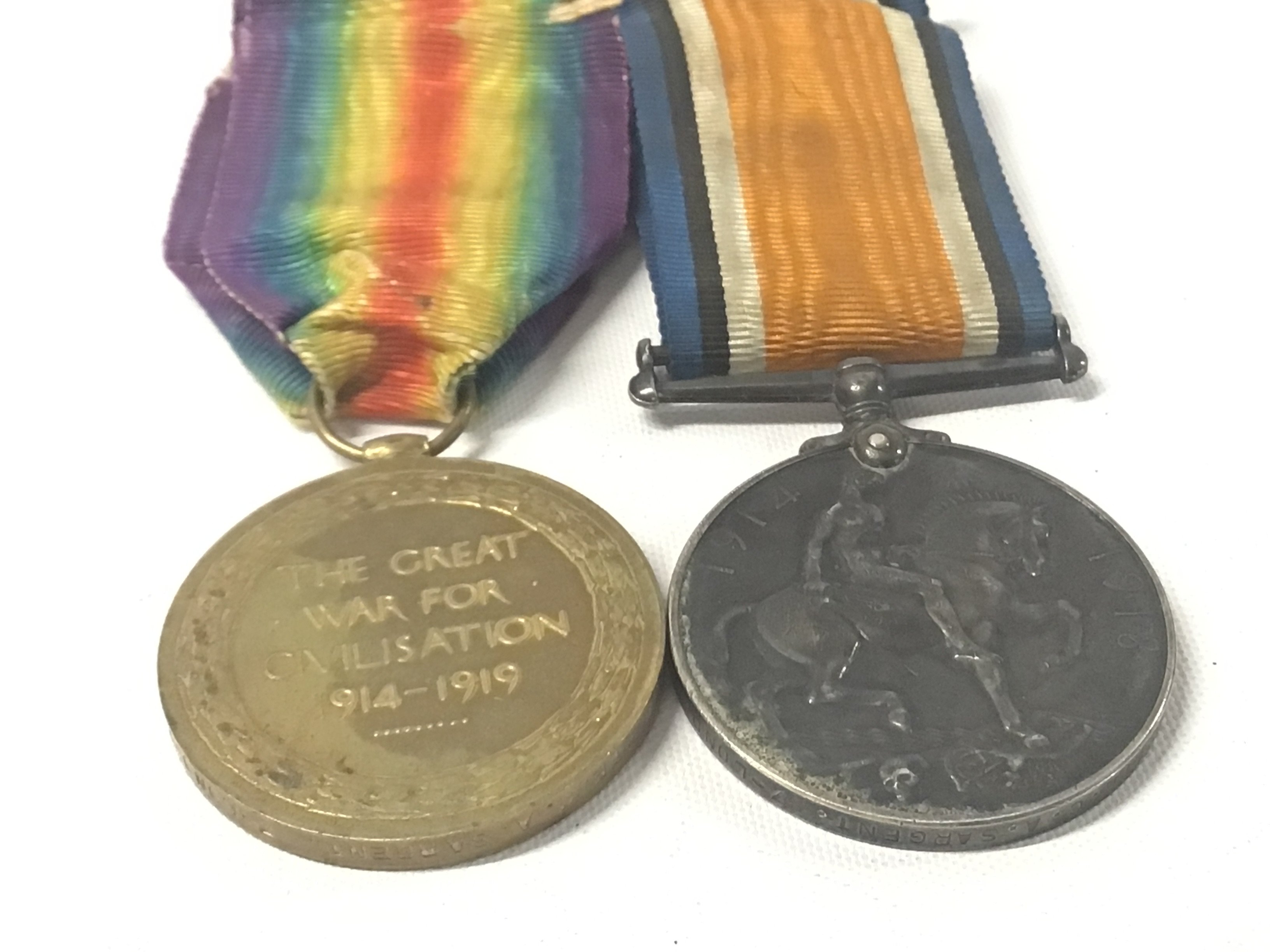 Two I World war medals awarded 5088 Pte C.A. Sargent 7-Lond.R