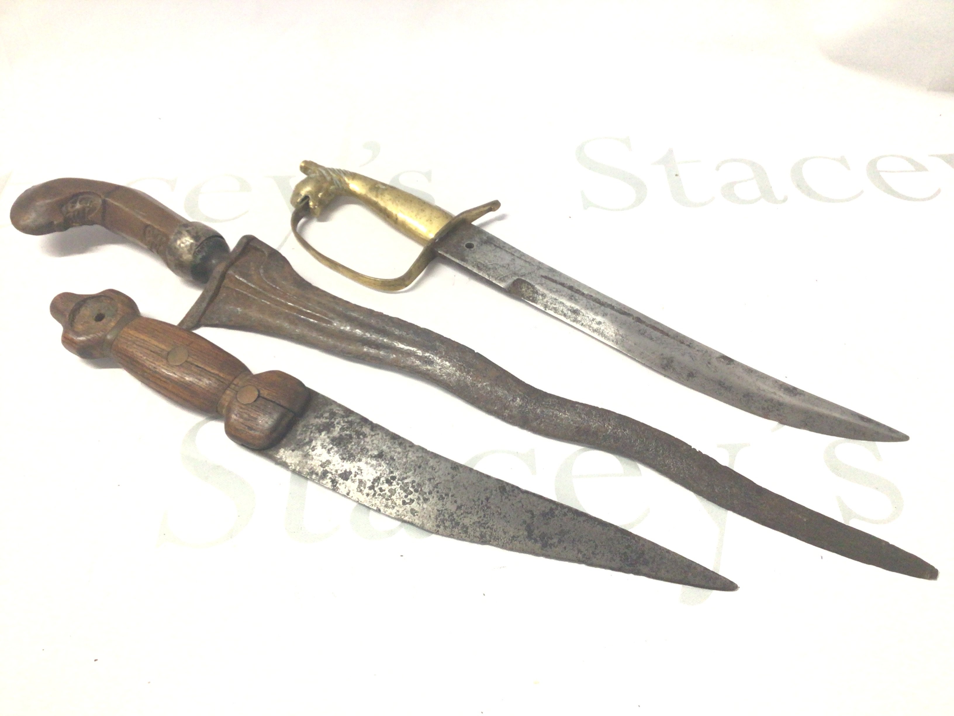 An Antique Java type Kris Knife with carved wood grip and two other daggers (3)