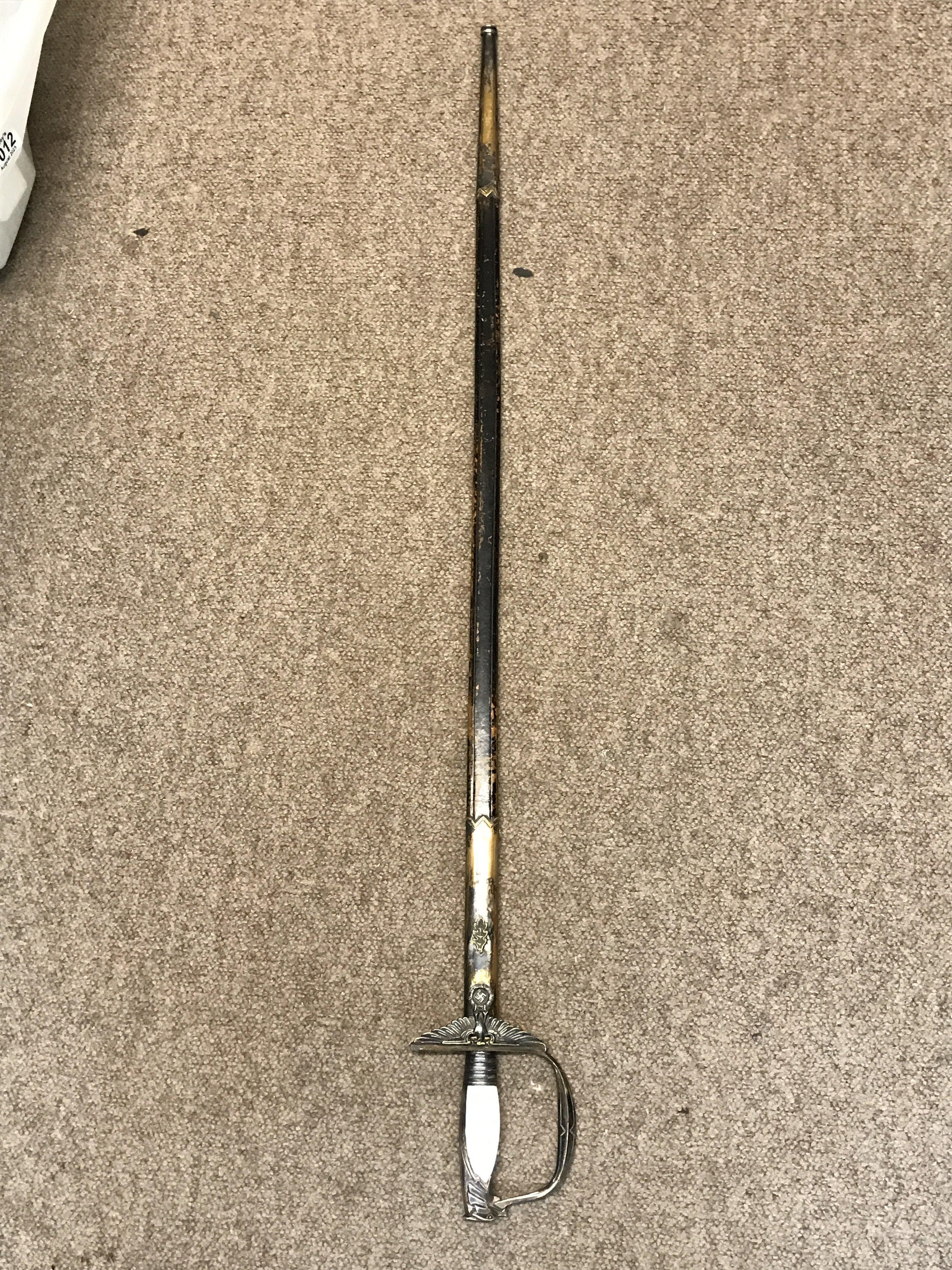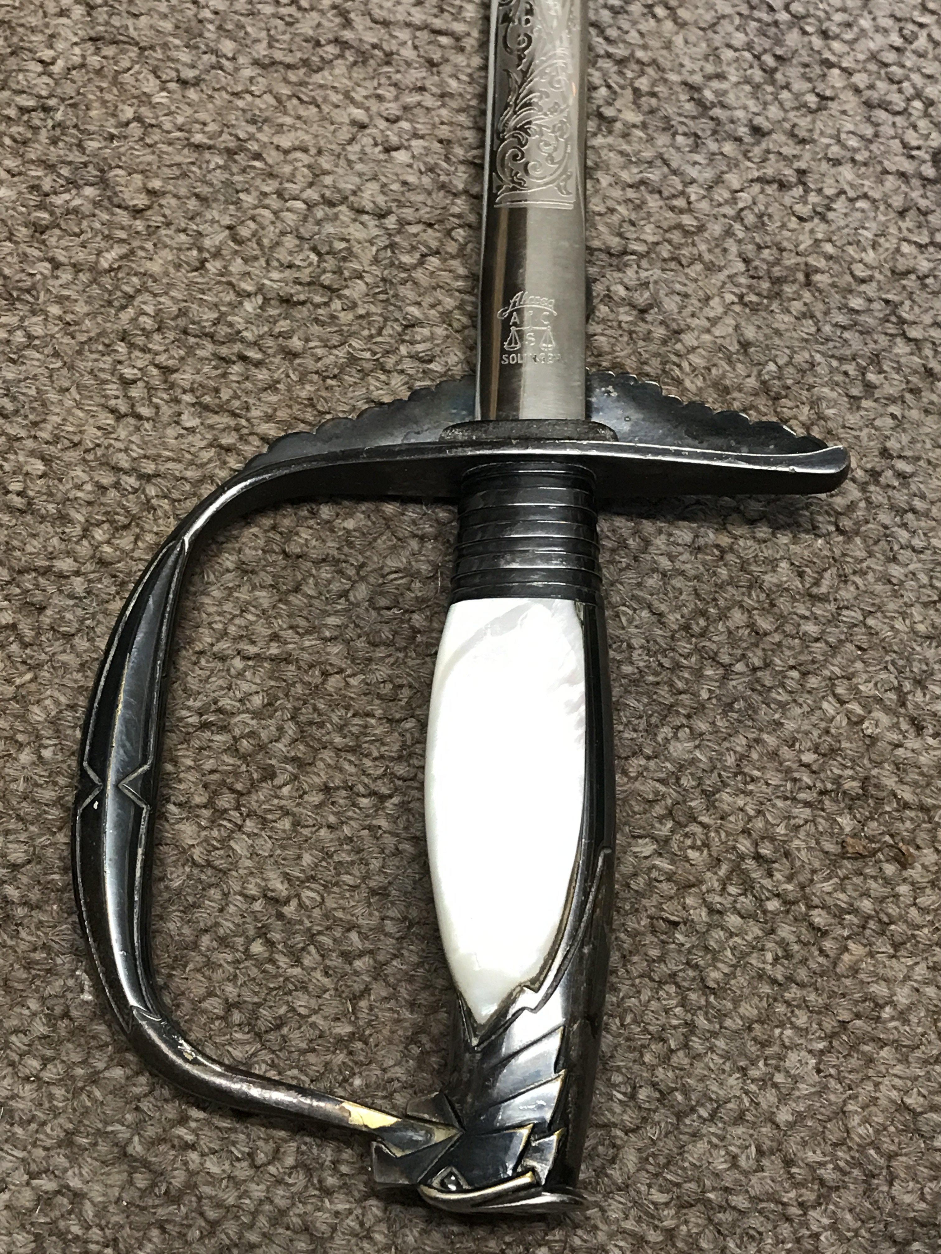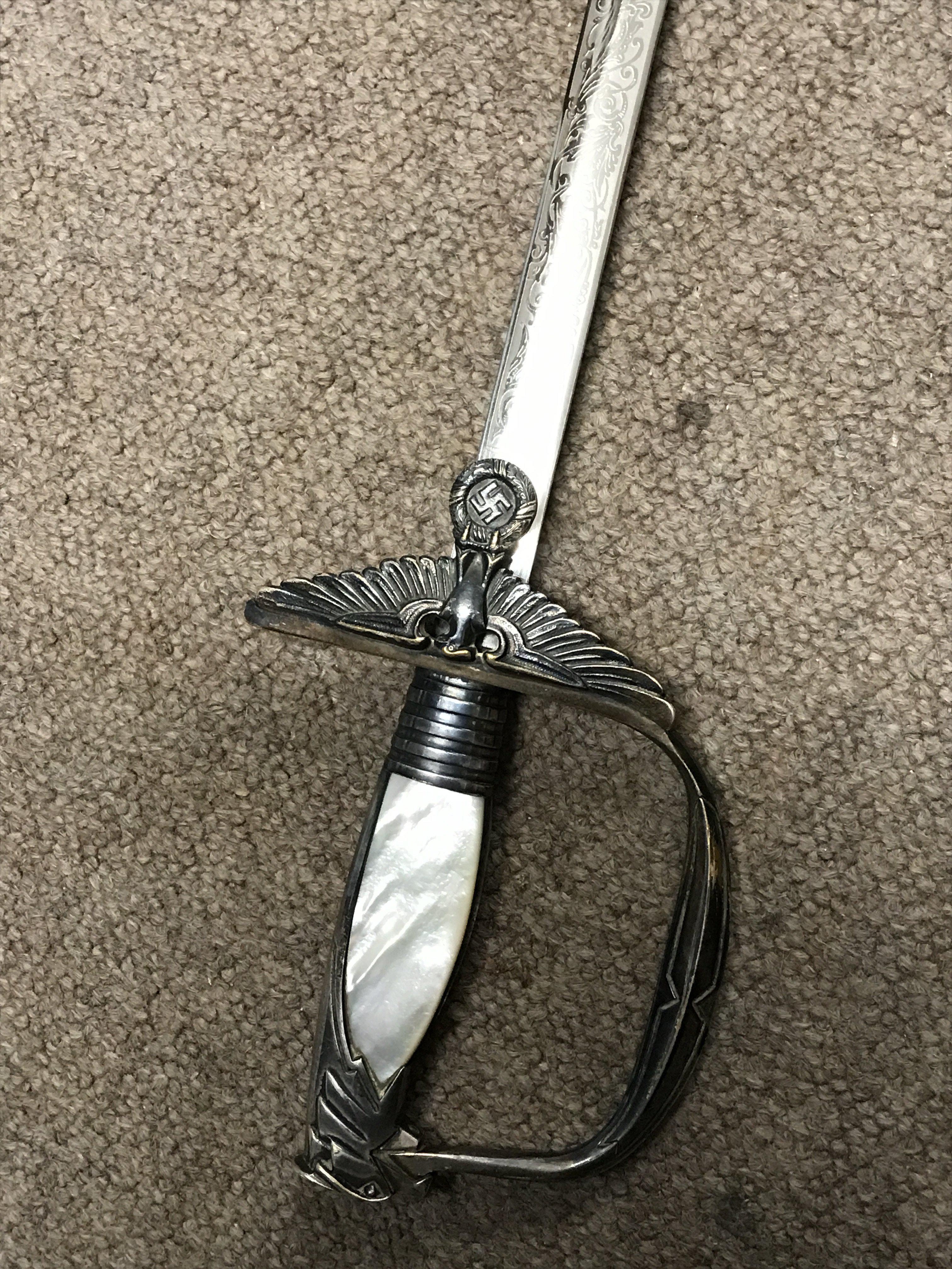 A WW2 German Third Reich diplomatic sword by Alcoso with scabbard . Blade 79cm long, total sword length 91cm