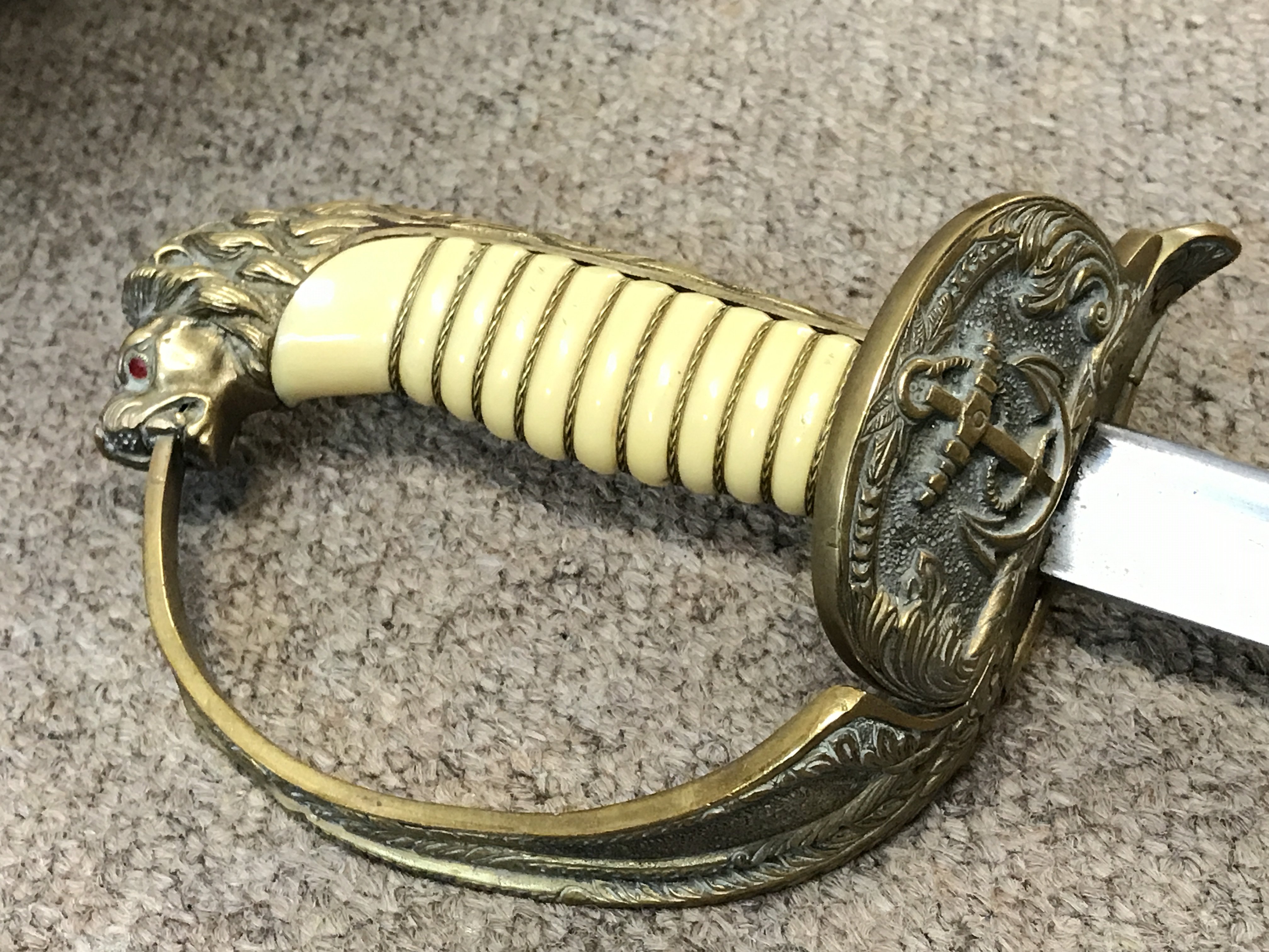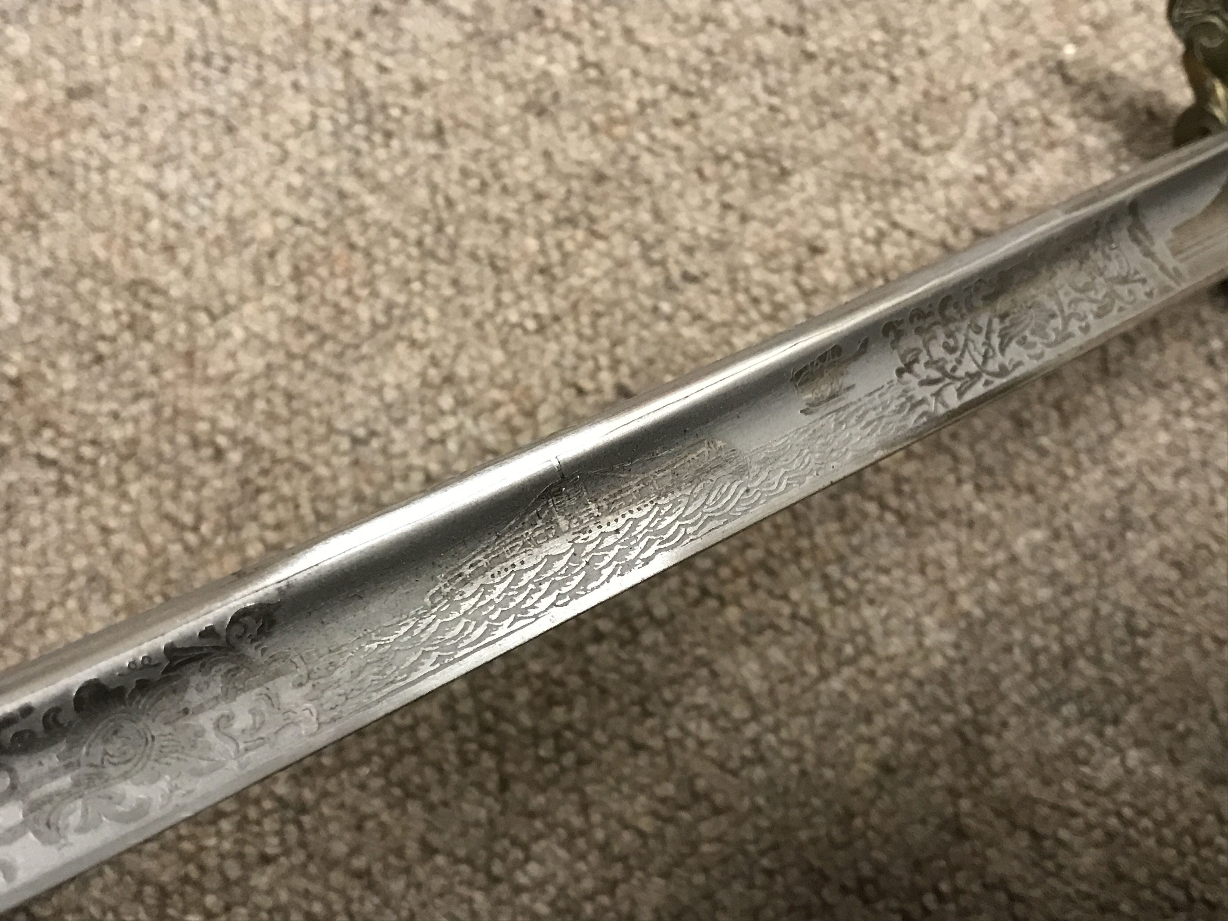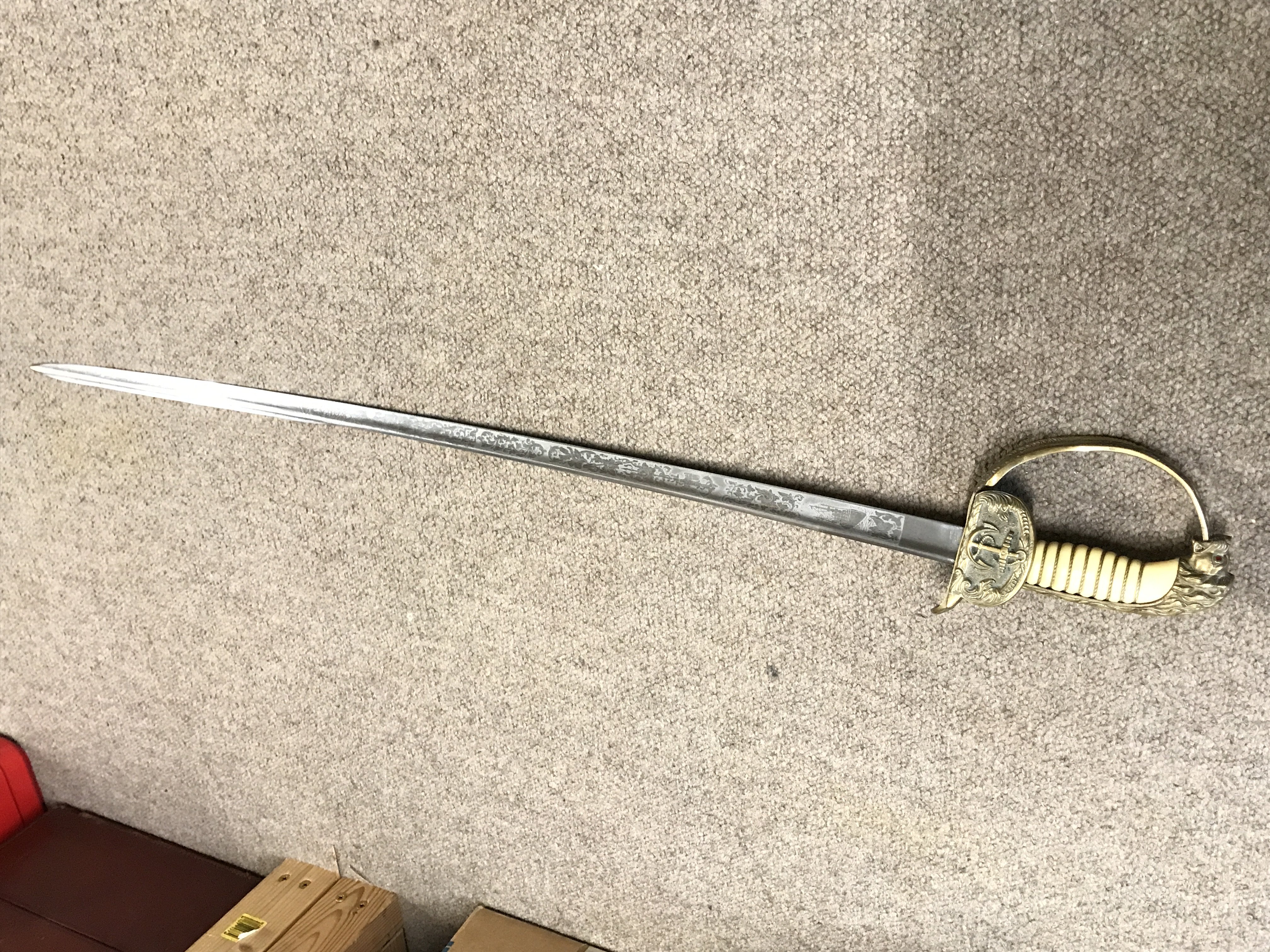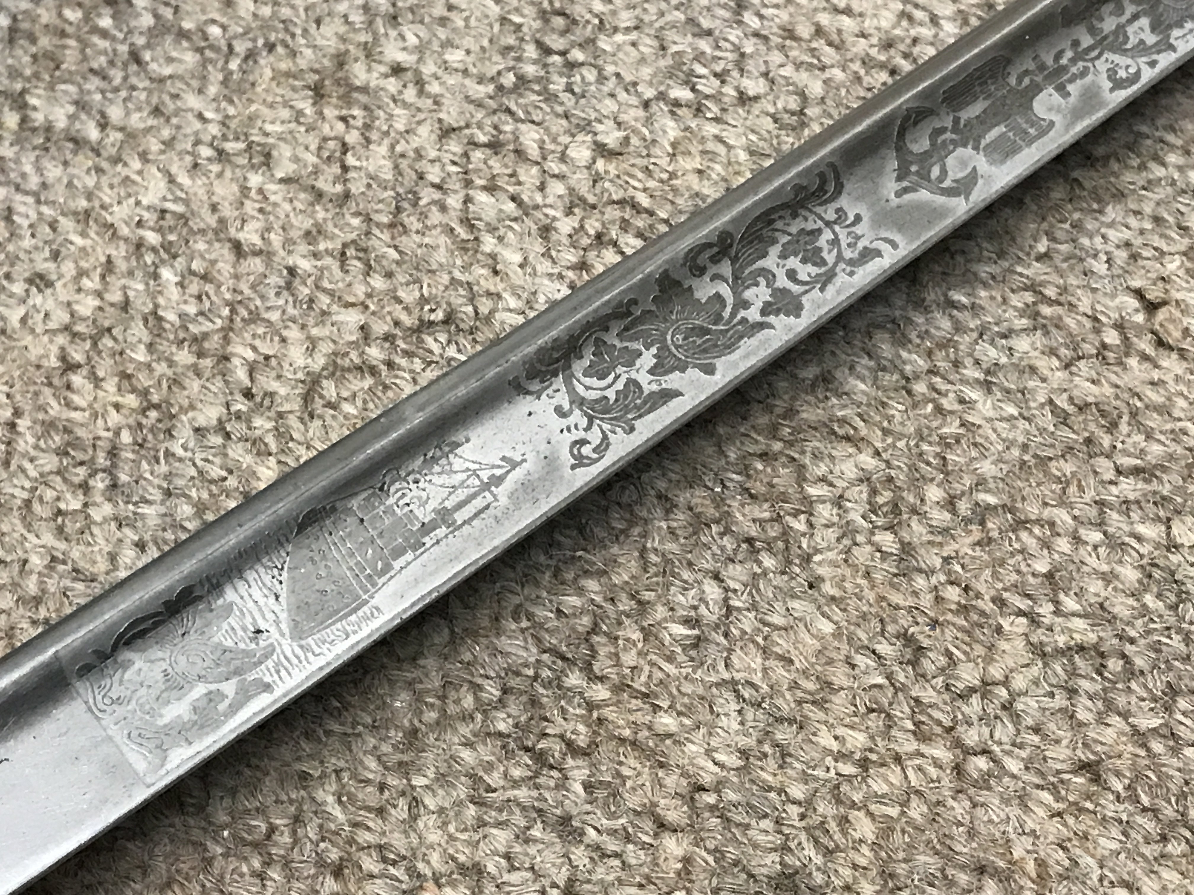 A German WW1/ WW2 navy sword by Eickhorn with triple etch and original bag. blade 82cm long ,97cm total length