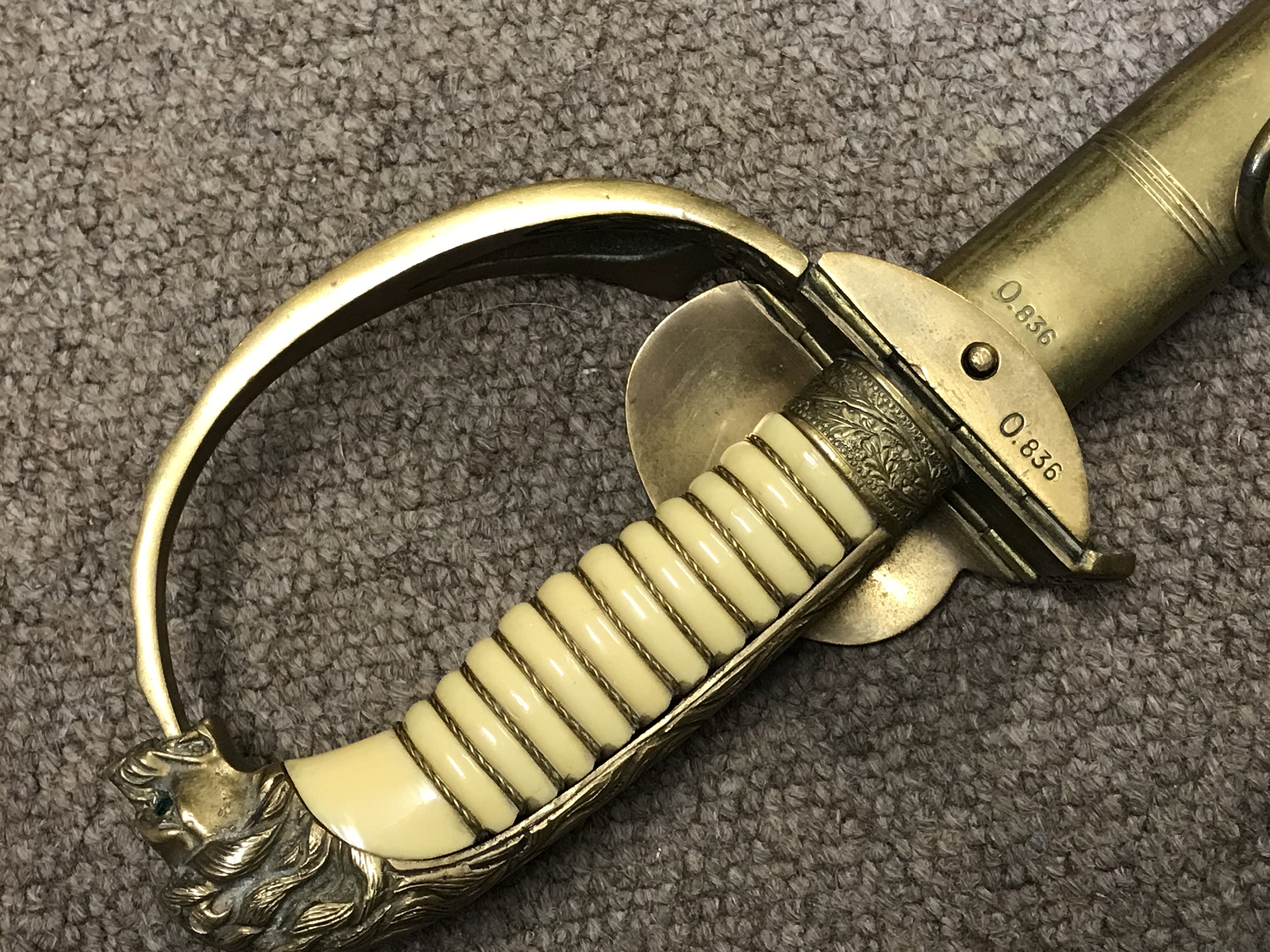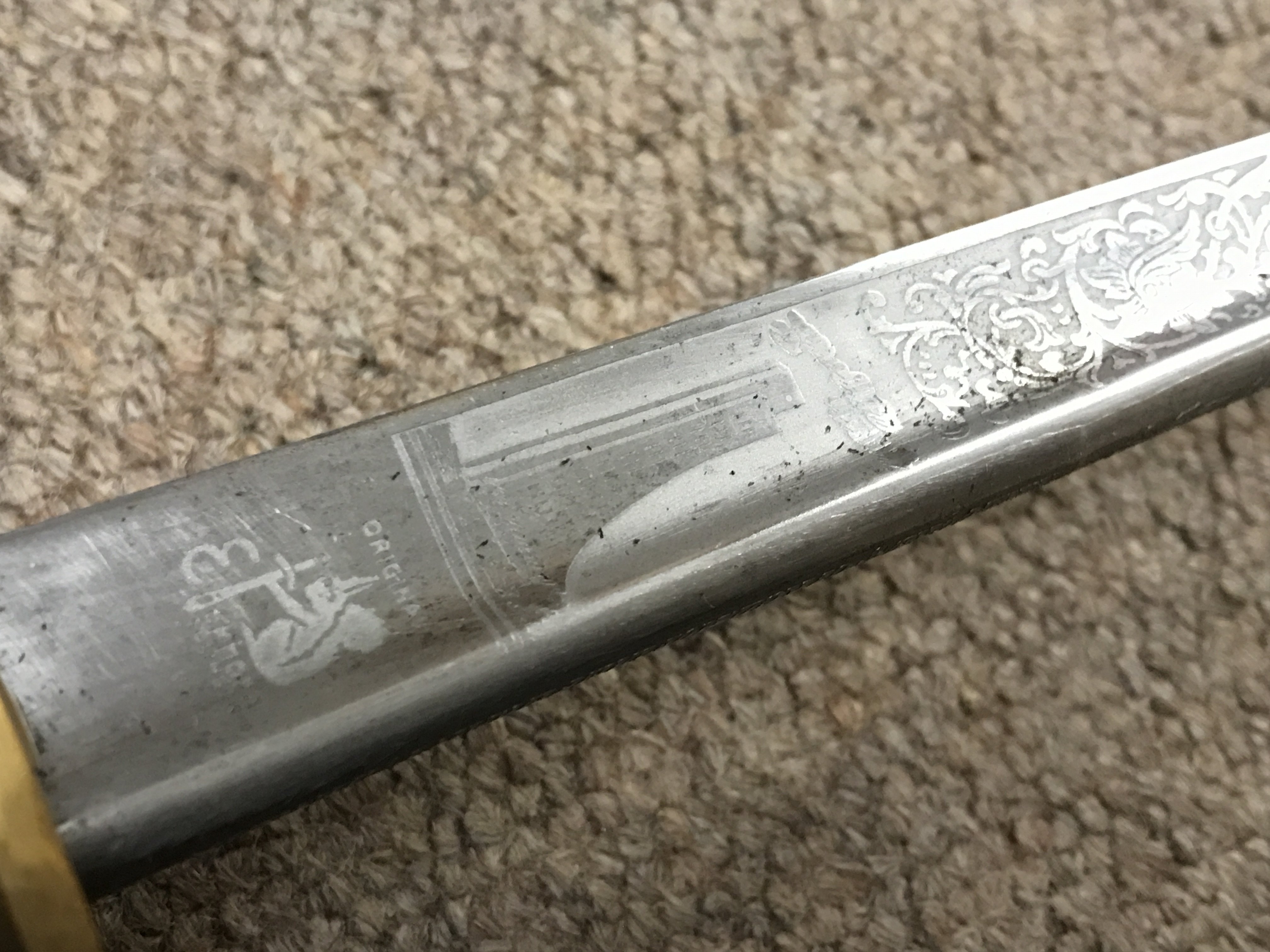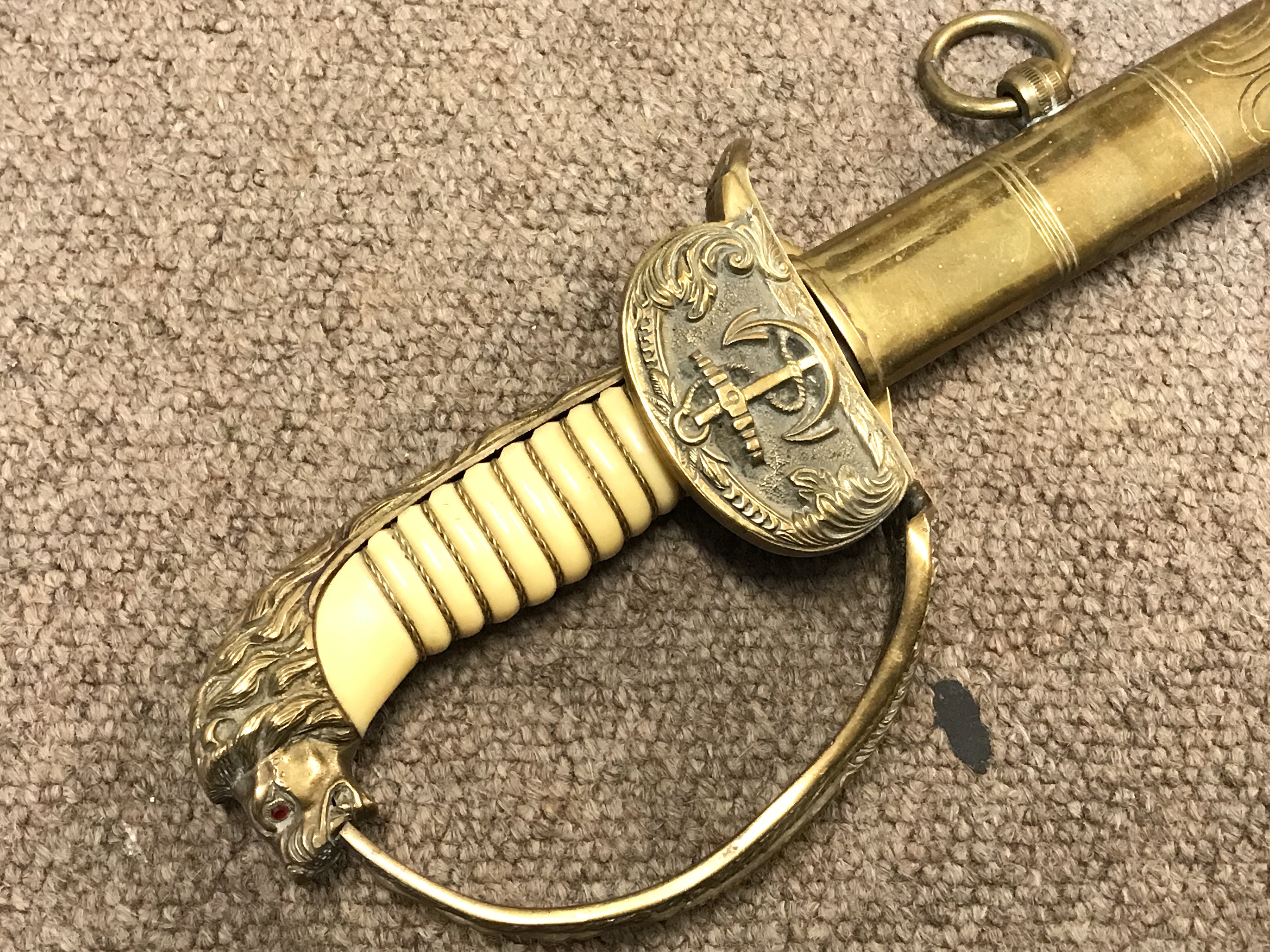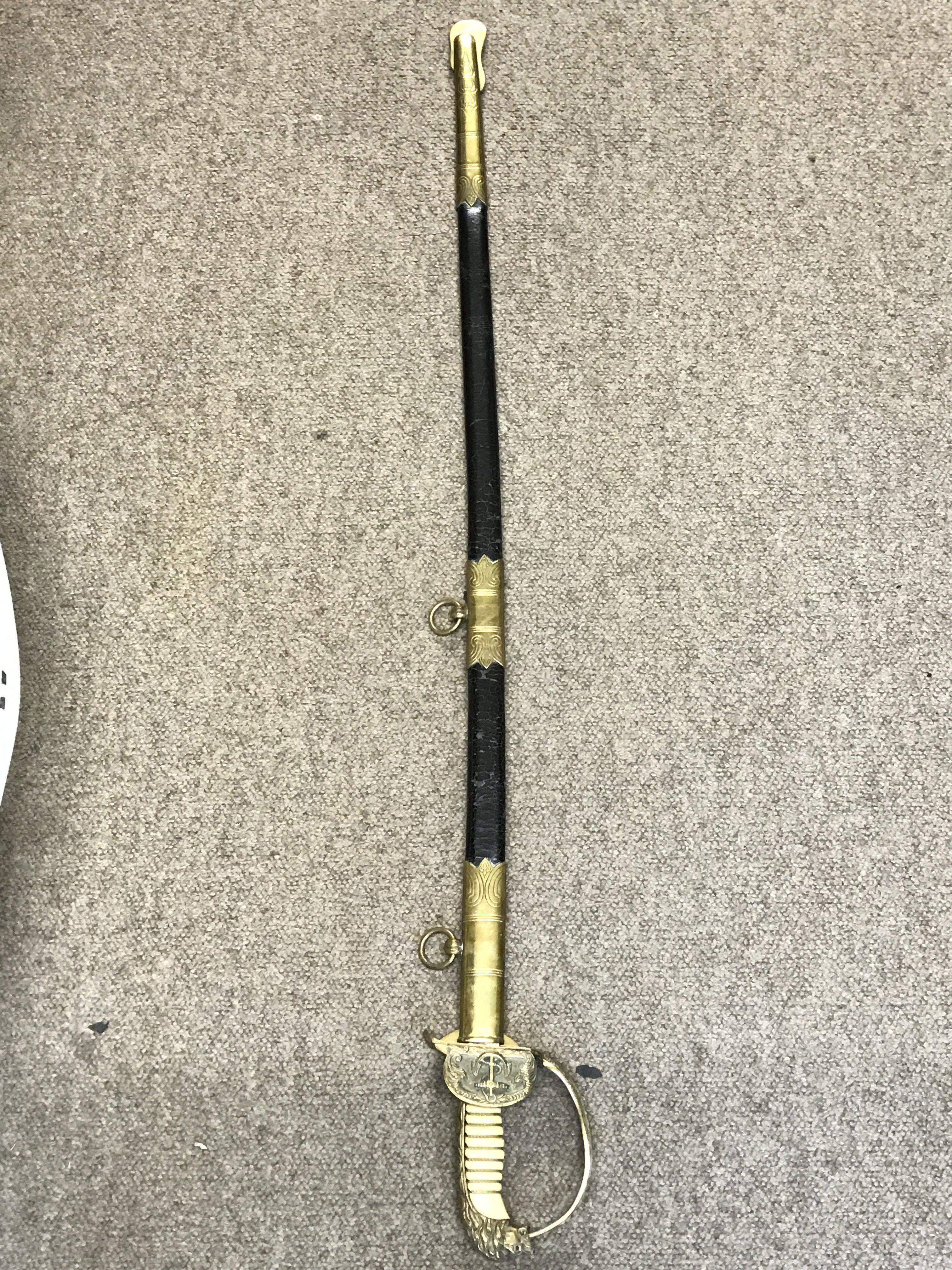 A German WW1/ WW2 navy sword by Eickhorn with triple etch and original bag. blade 82cm long ,97cm total length