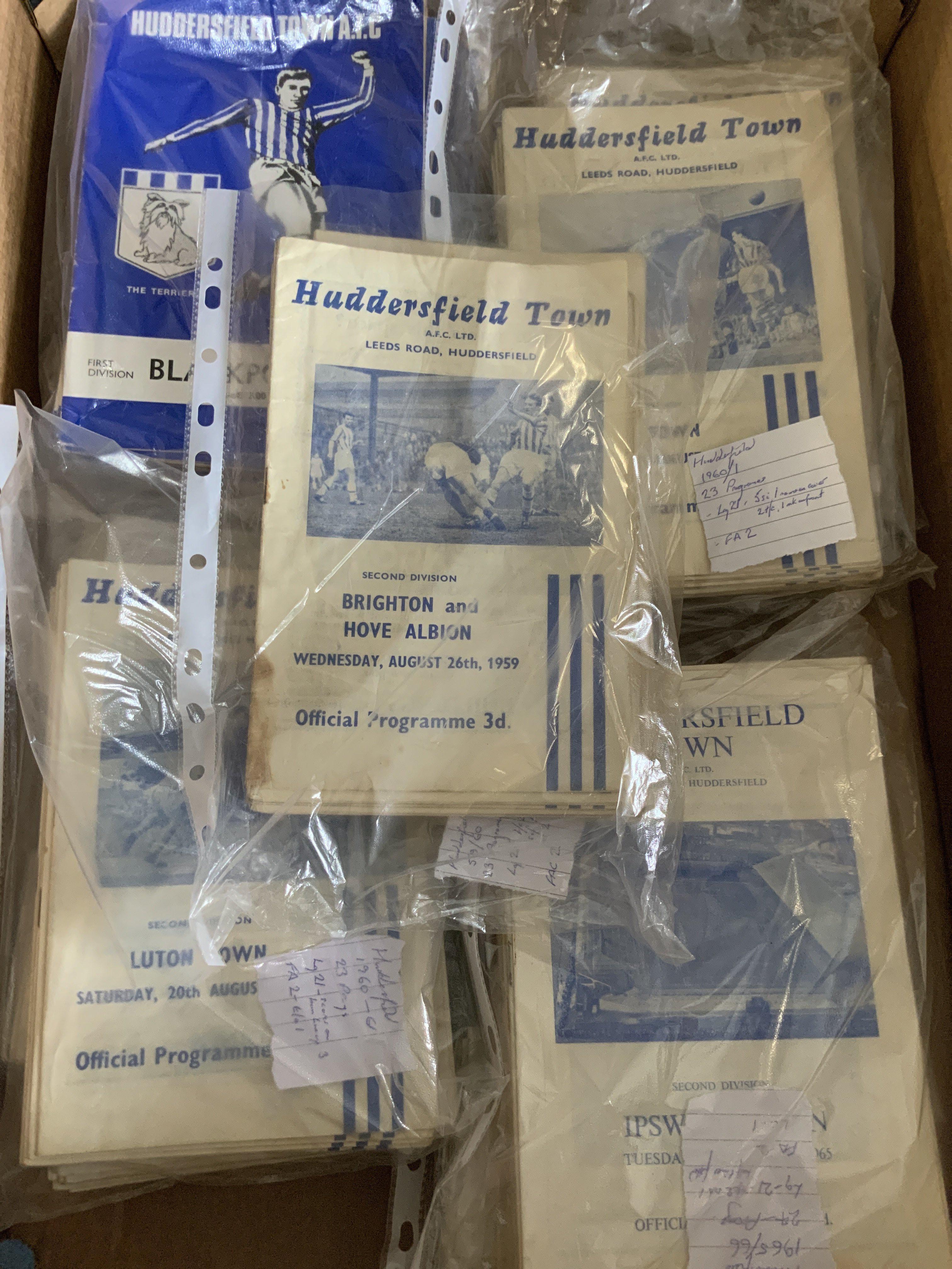 Huddersfield Town Home Football Programmes: 35 from the late 50s plus 7 complete or near complete sets from the 60s. In total around 300 from the 60s plus some early 70s. Instructions to sell. Very good. (est 350+)
