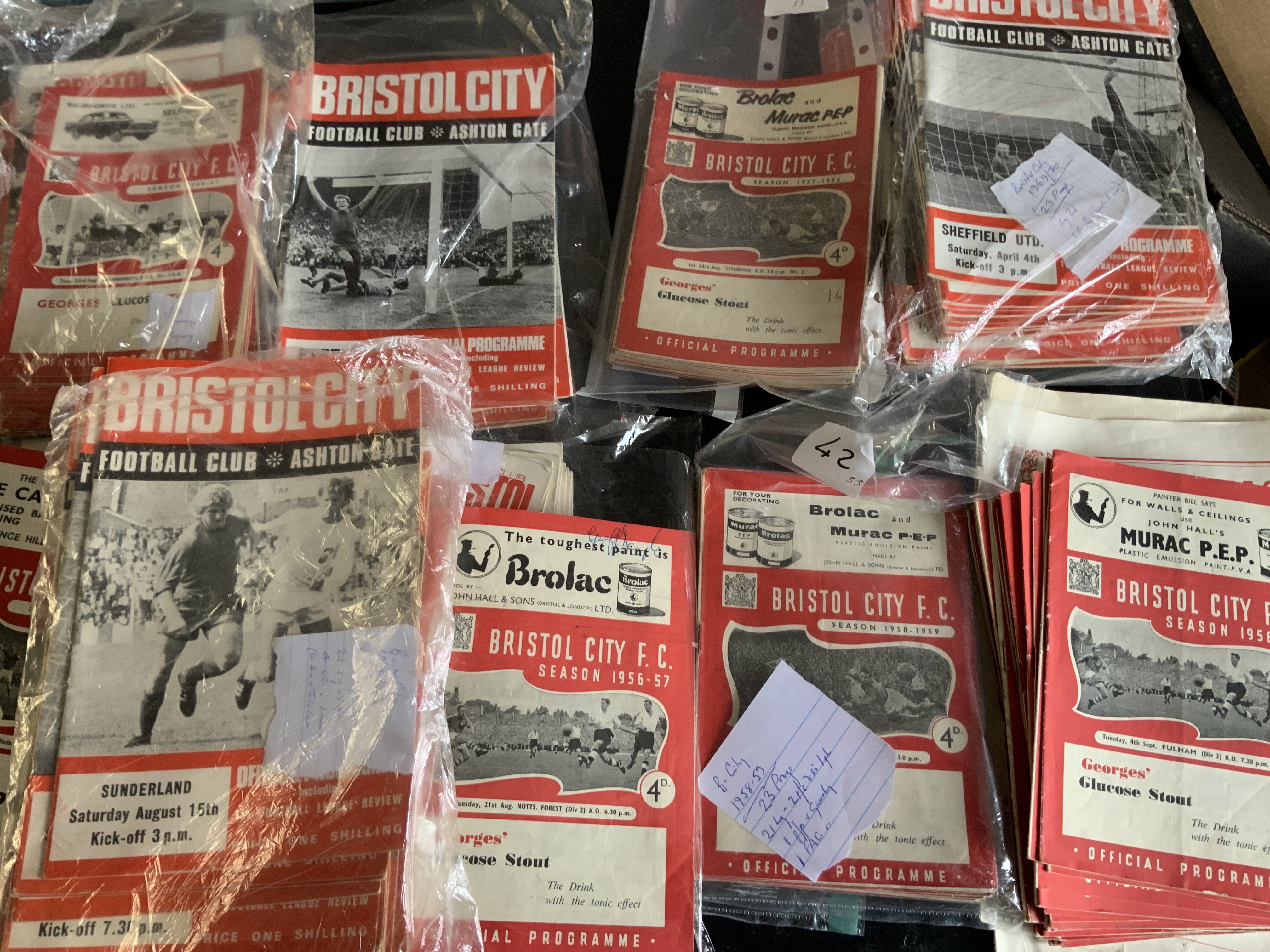 Bristol City Home Football Programmes: Near complete or complete sets from 56/57 57/58 58/59 and 60/61. In total over 100 from the 50s and 170 from the 60s plus some early 70s. Instructions to sell. Very good. (est 200+)