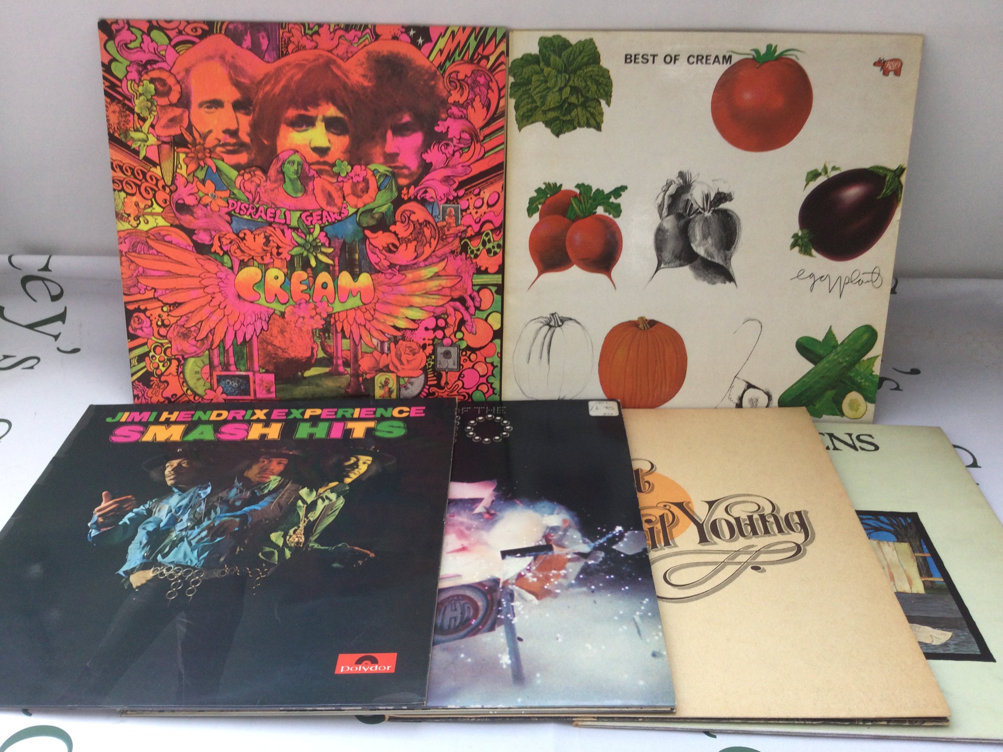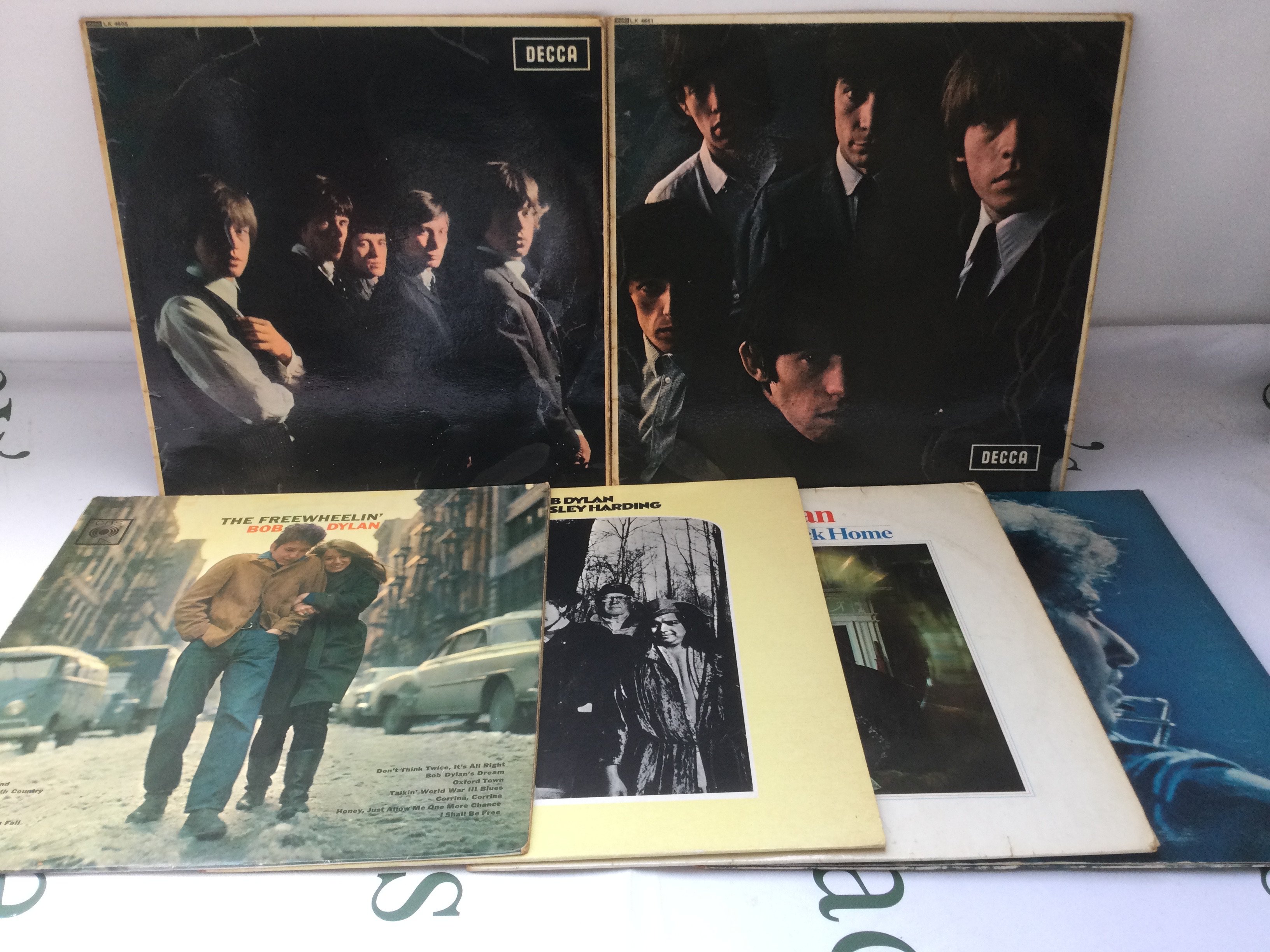 Twelve LPs comprising early UK pressings by various artists including The Rolling Stones, Bob Dylan, Cream and others.