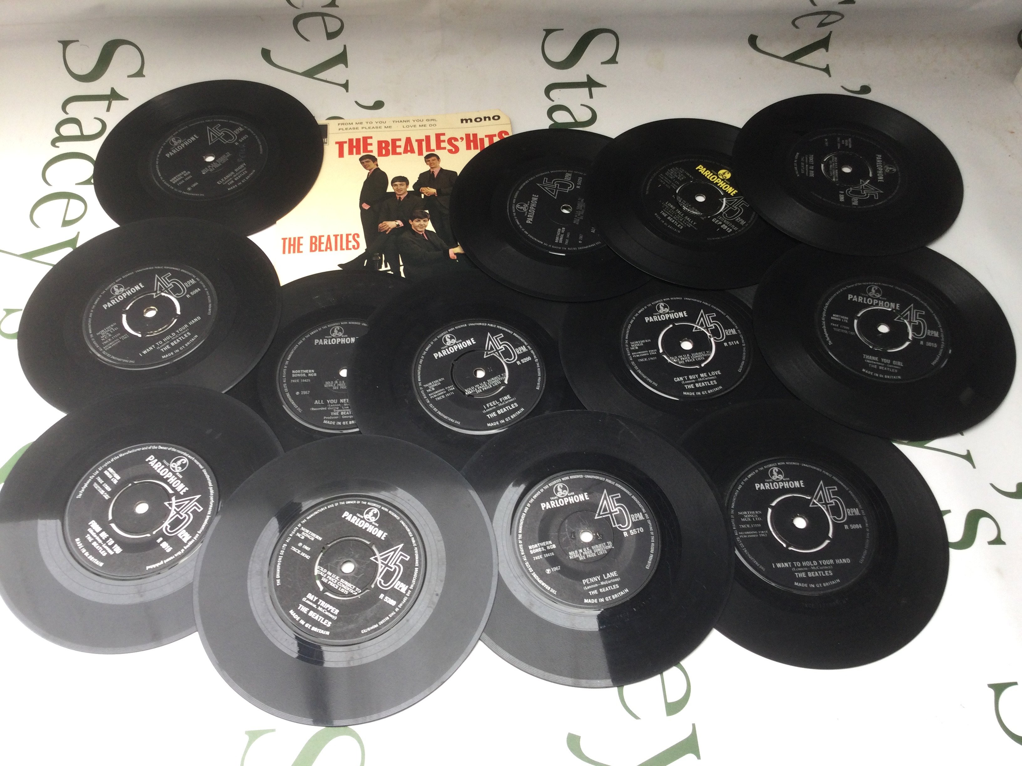 A collection of early pressings of Beatles LPs, EPs and 7" singles including Please Please Me (not black and gold labels), a US Capitol issued Magical Mystery Tour, Let It Be and others.