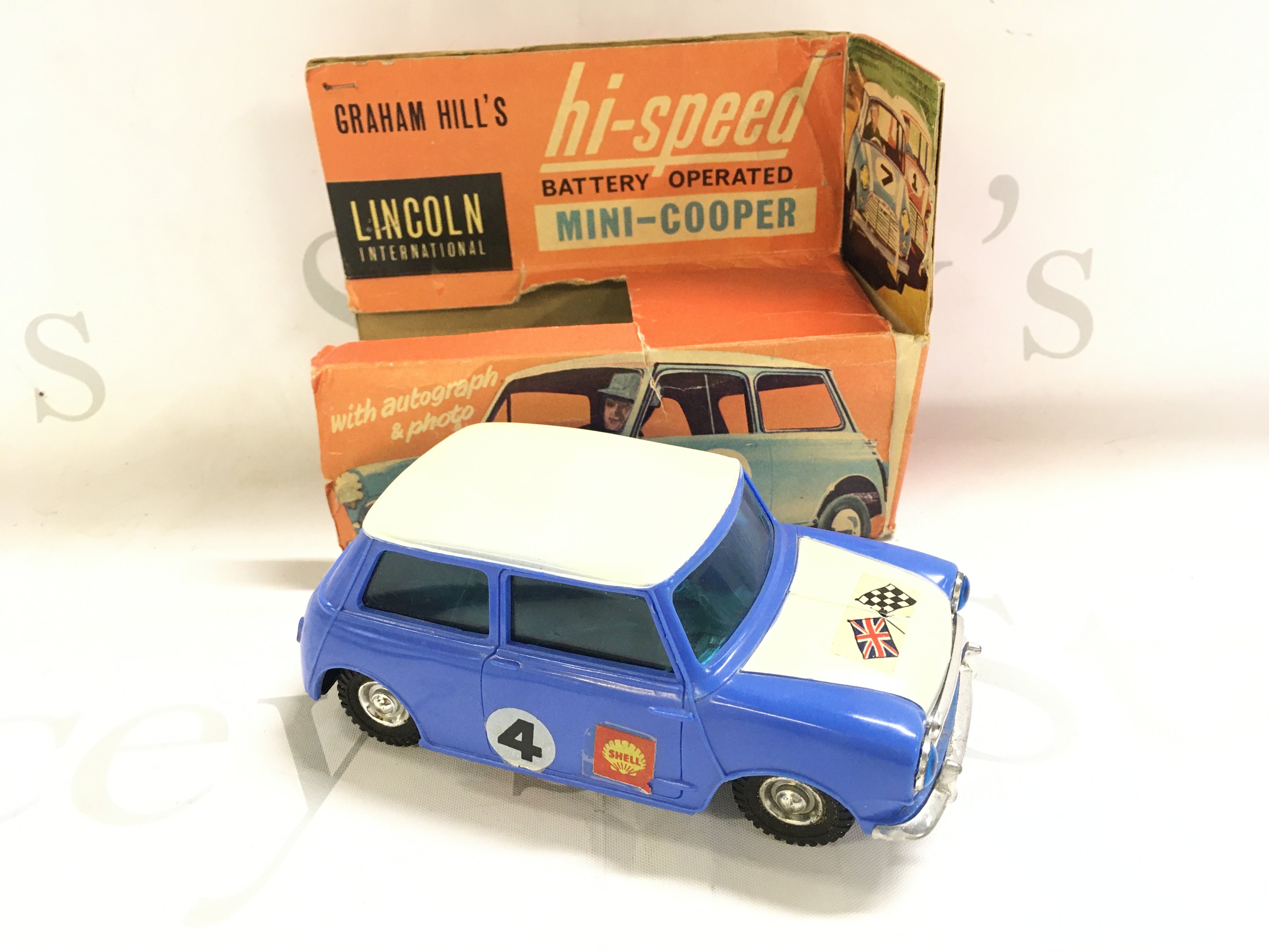 A Boxed Lincoln International Graham Hills Battery Operated Mini-Cooper. Box Is Worn Battery Cover Missing.