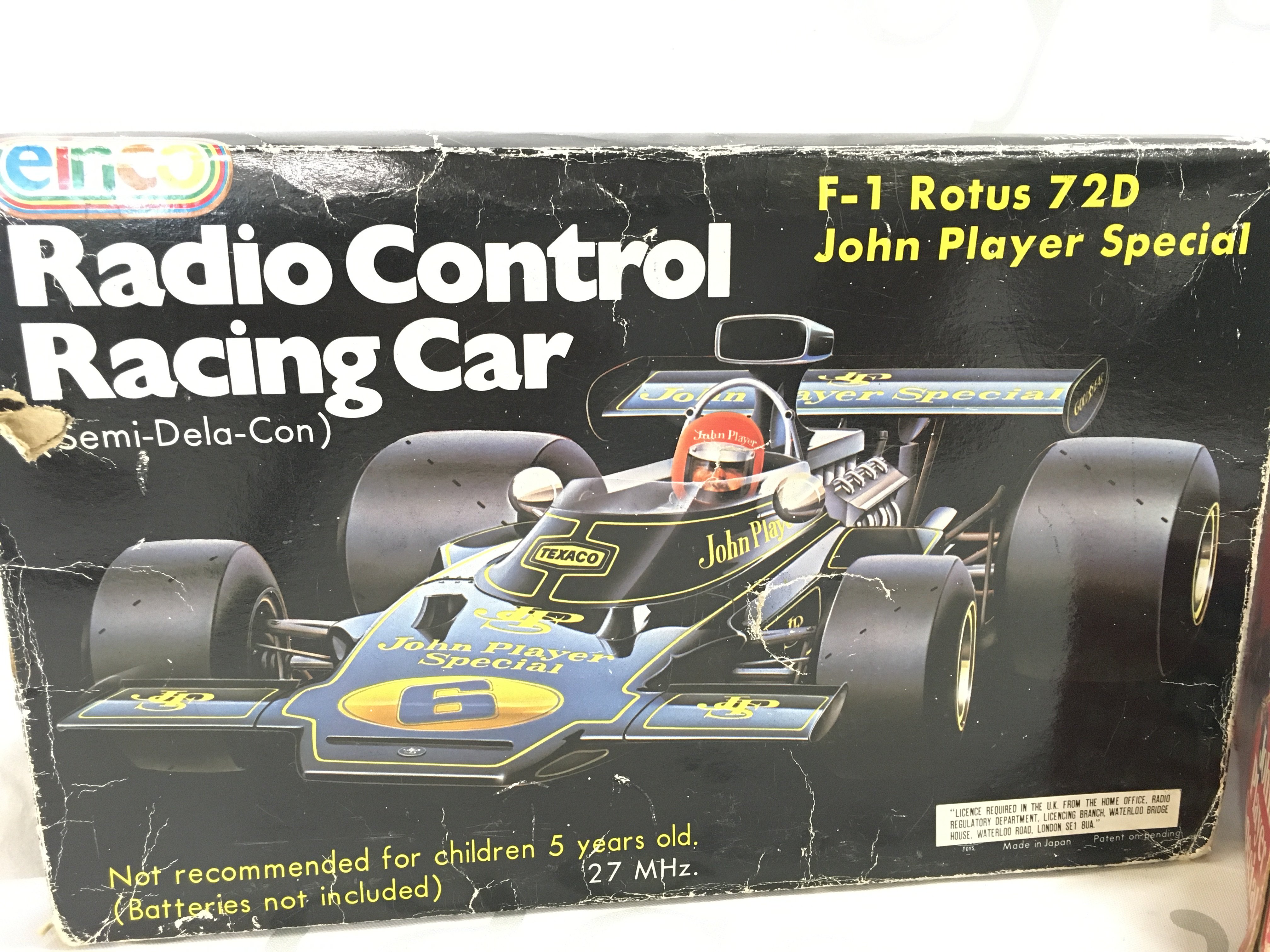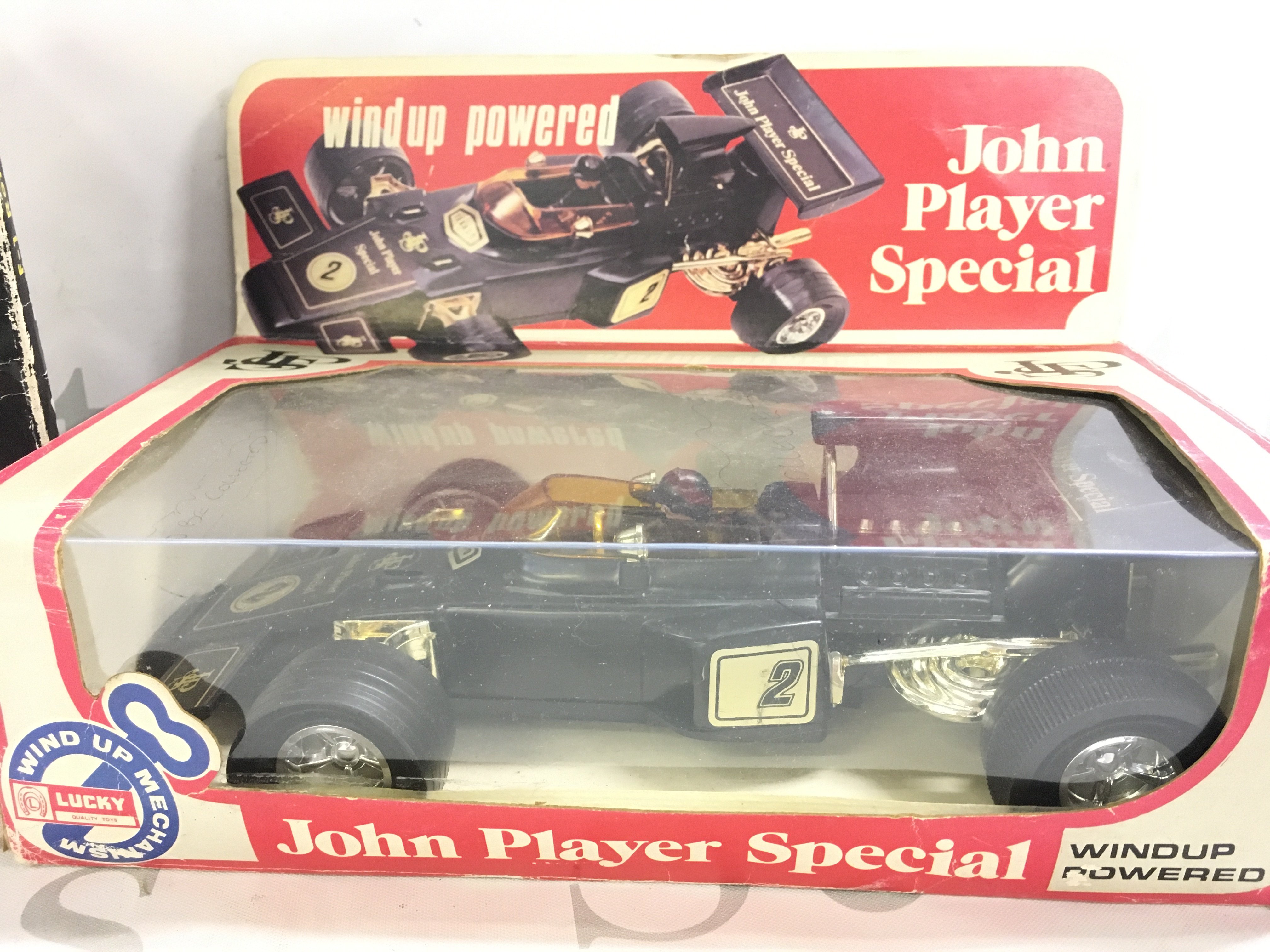 A Boxed Einco Radio Controlled J.P.S. Racing Car And a Lucky Toys Wind Up Powered Racing Car.(2).