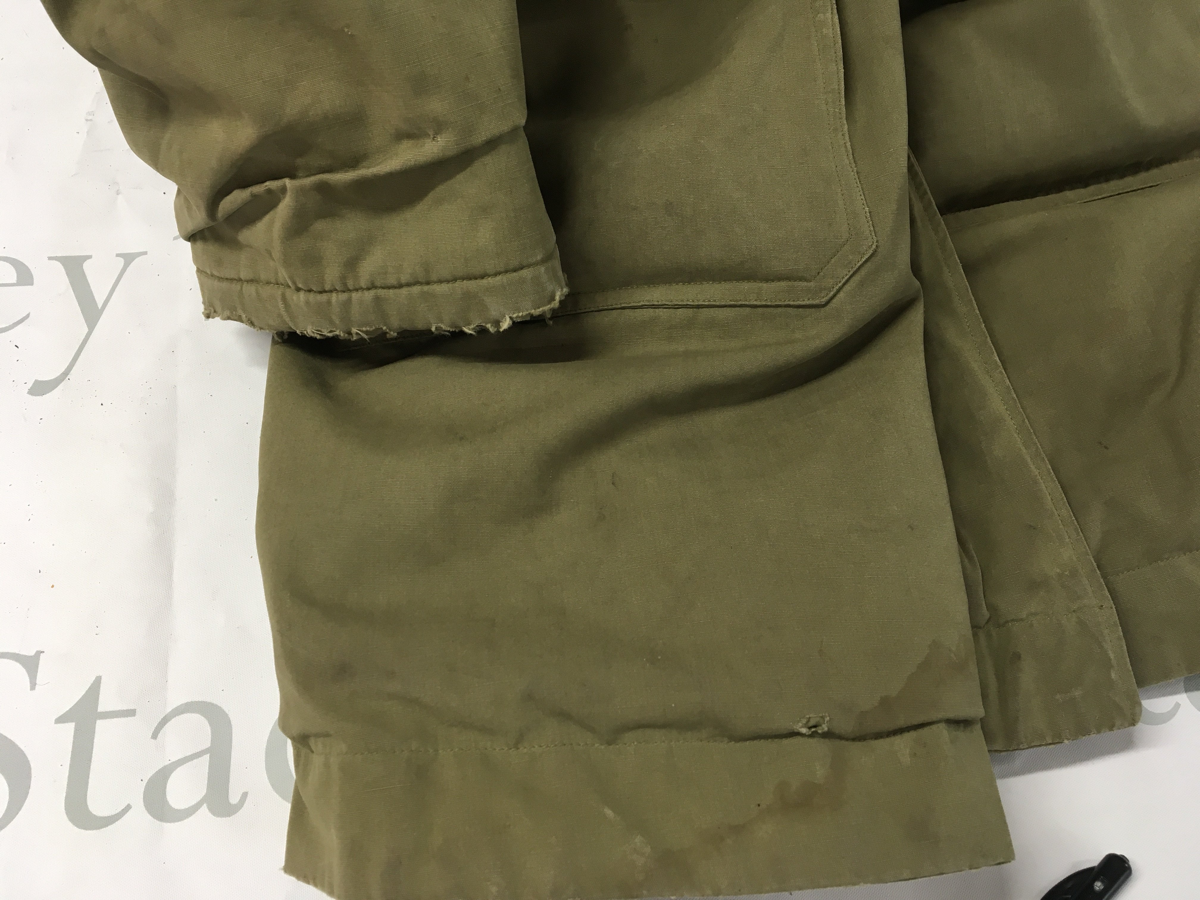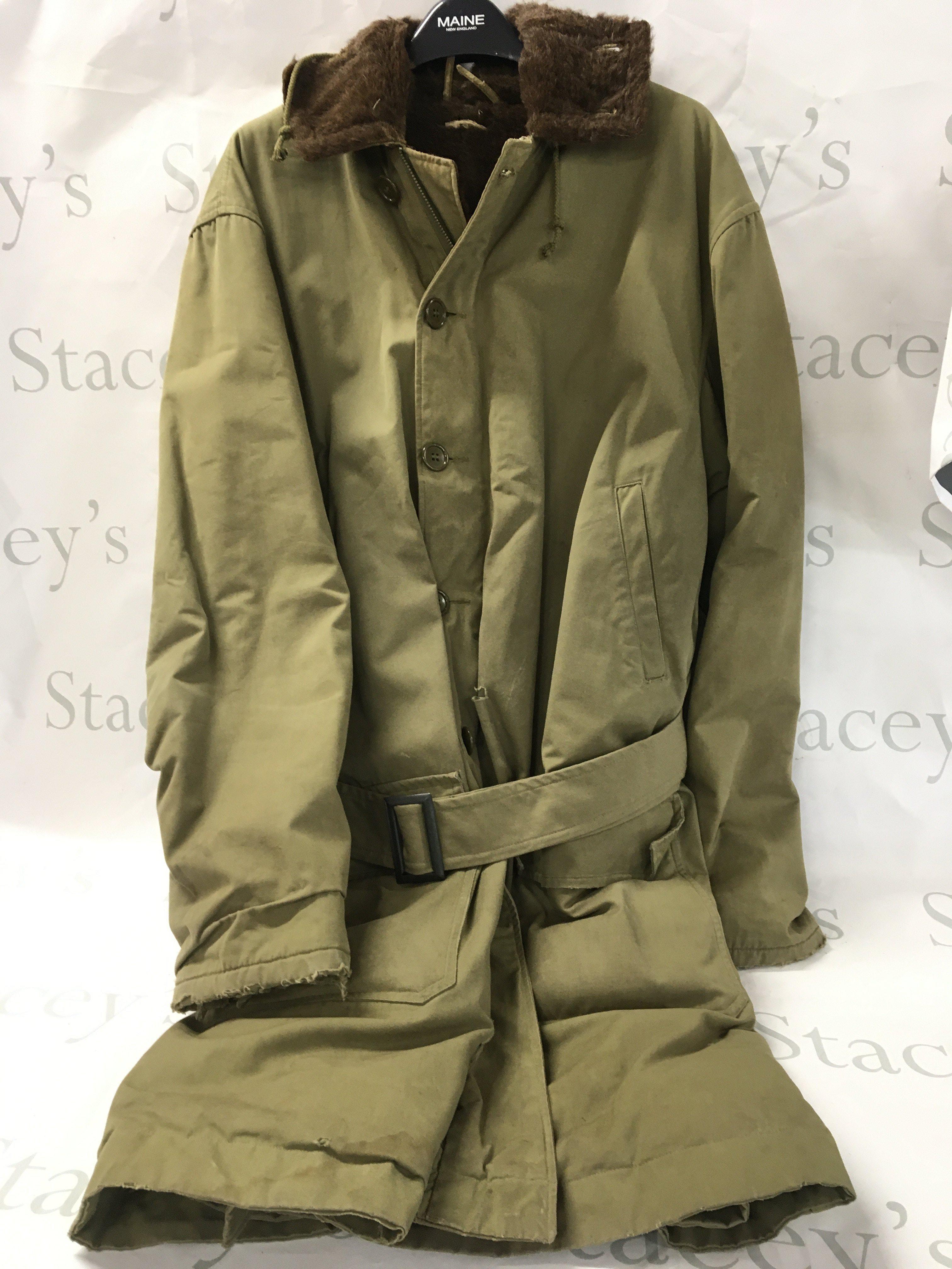 A Vintage II World war Jeep Coat with Alpac fur lining zip and button fastening. The coat with authentic edge and cuff wear in keeping with military use and age.