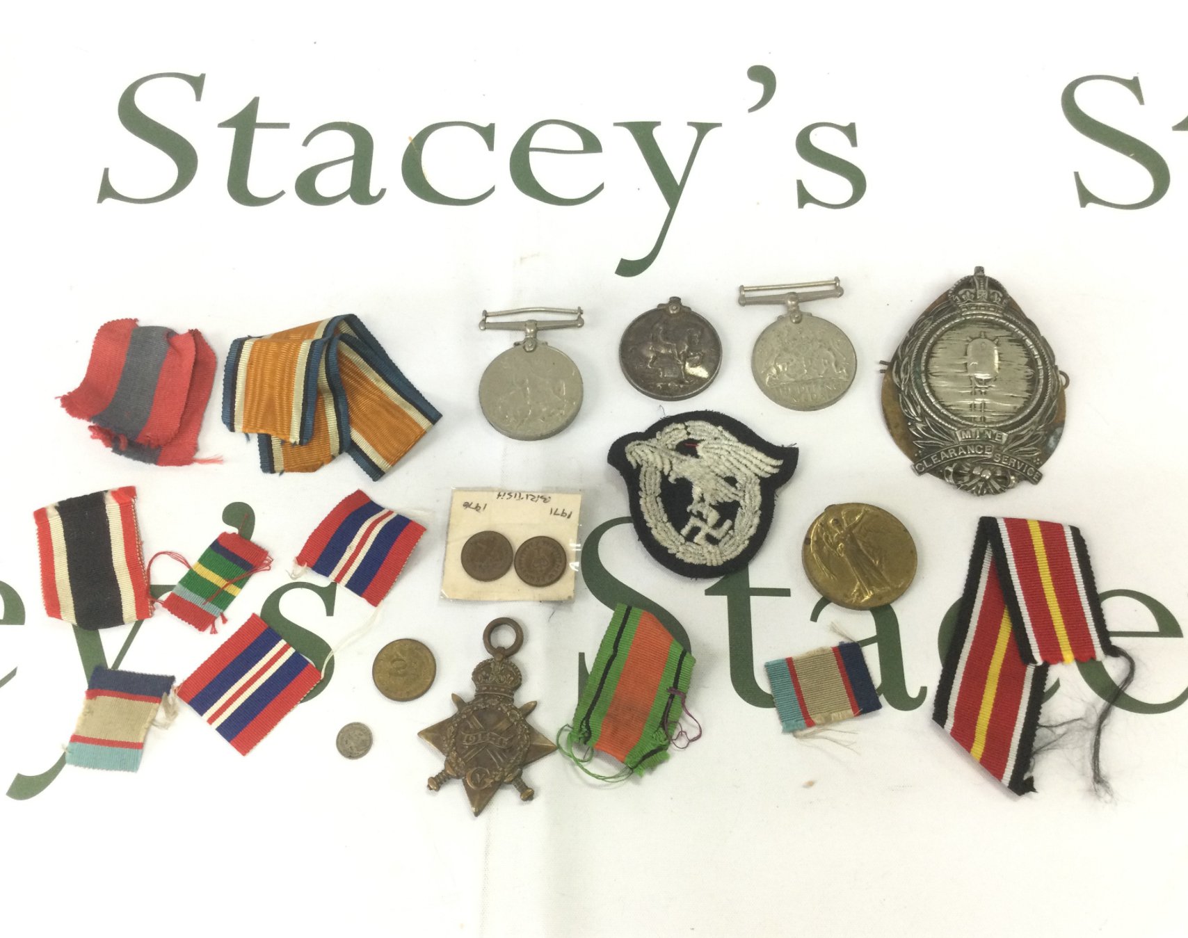 A collection of first and second world war medals including a mine clearance service badge. Shipping category A.
