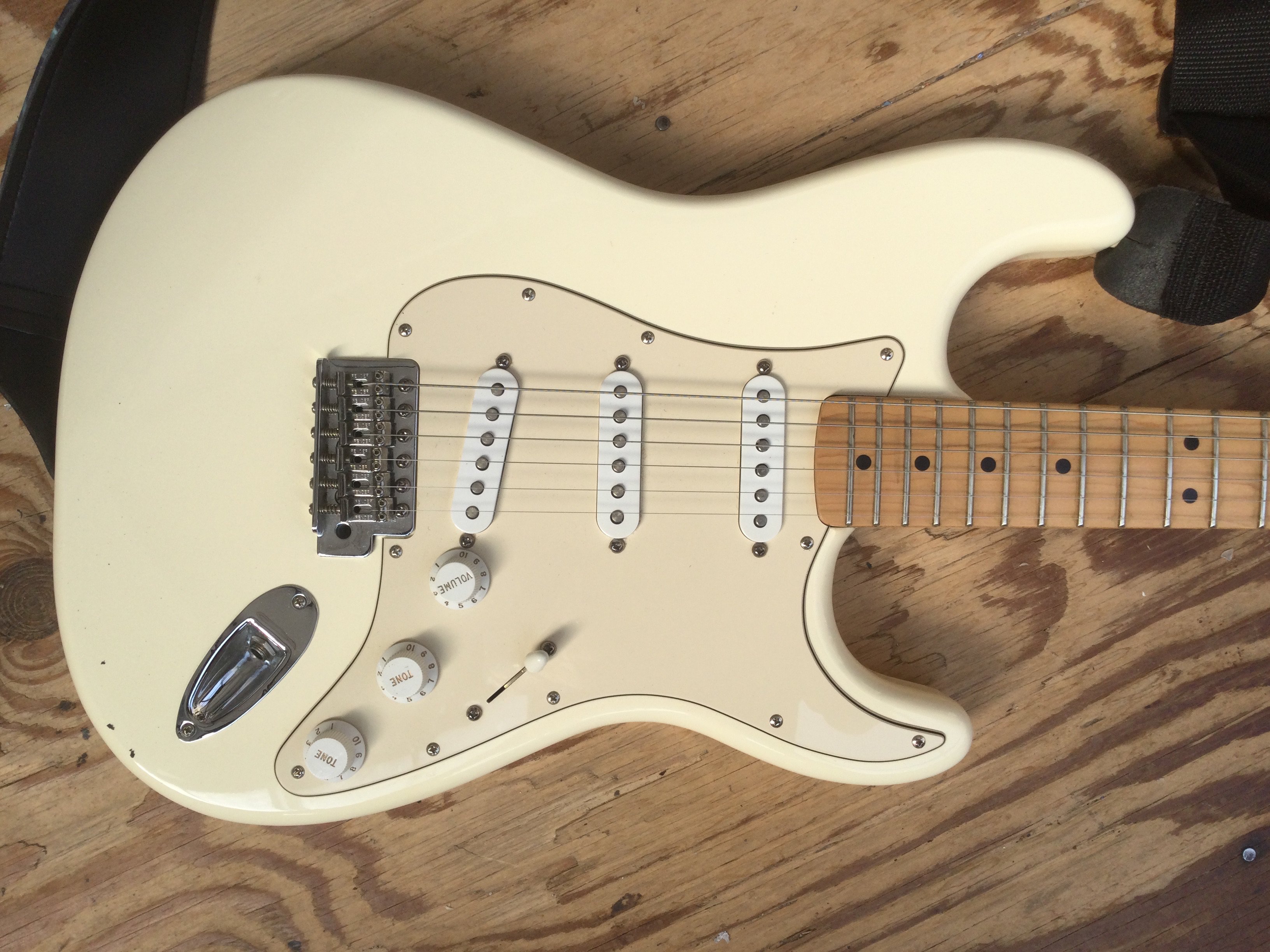 A 2005 Fender Stratocaster electric guitar, serial number MZ5203982. Comes with a soft carry case.