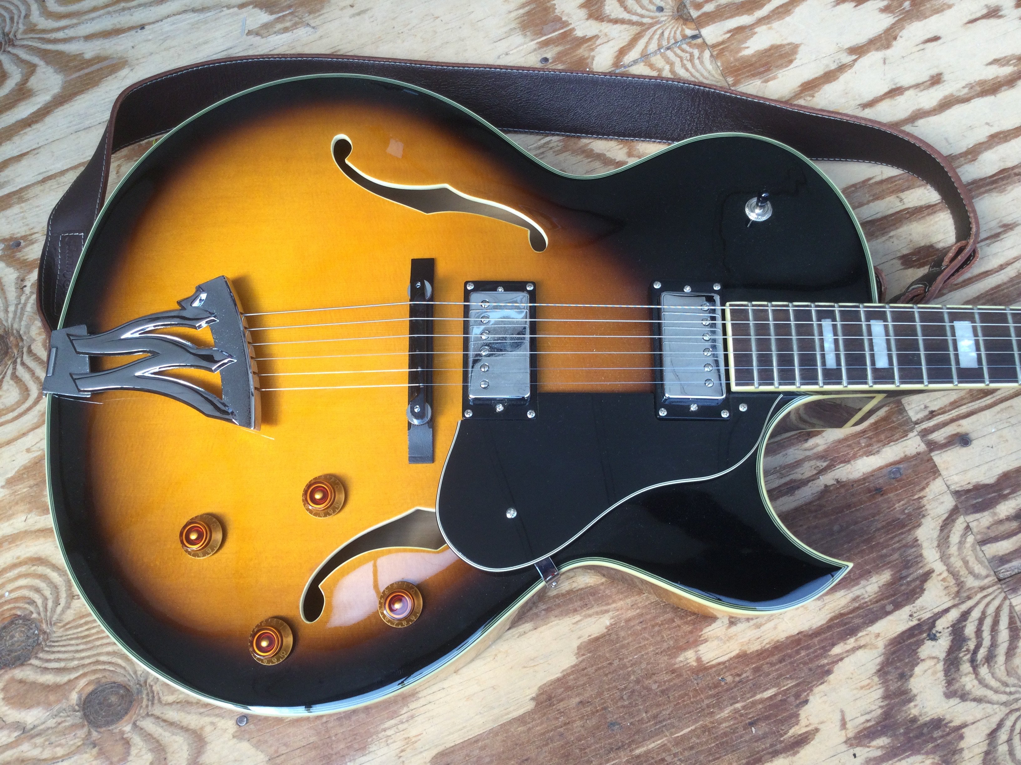A Washburn J3/TS electric guitar. Comes with a soft carry case.
