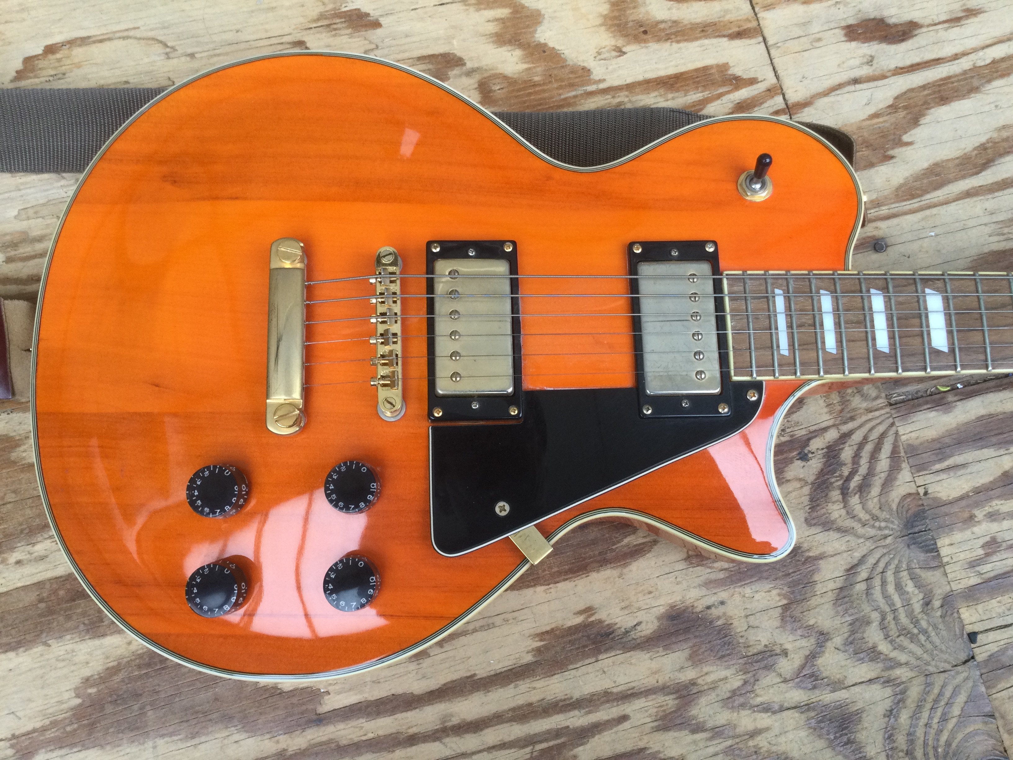 An Axl Les Paul style electric guitar. Comes with a soft carry case.