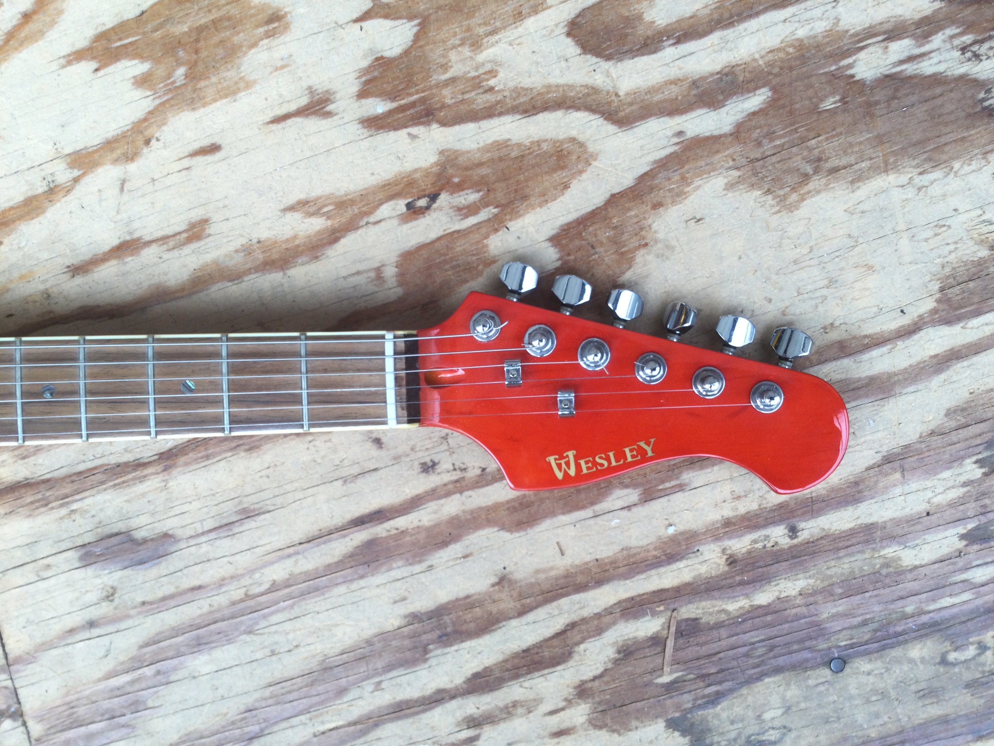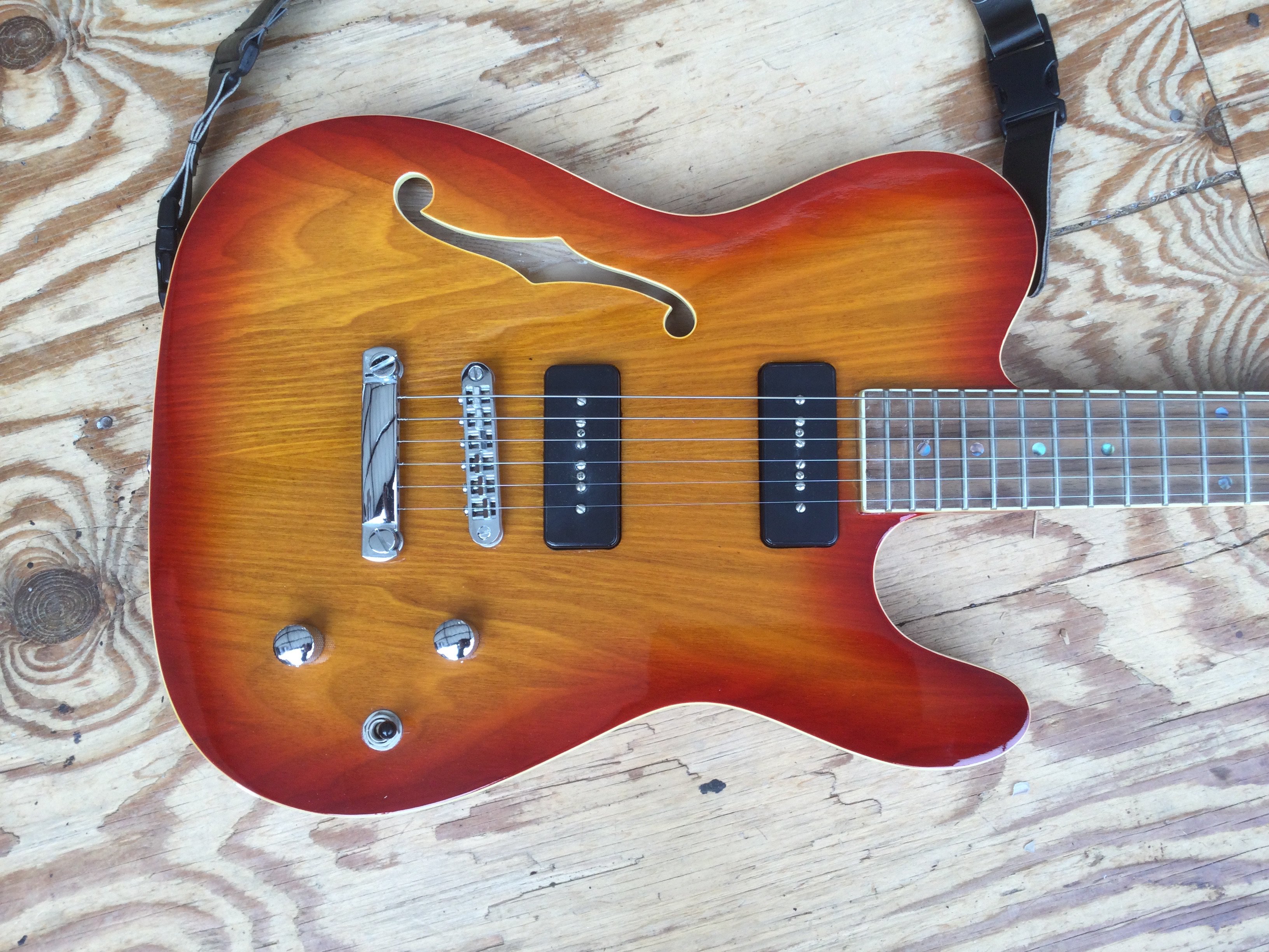 A Wesley Newport thinline Telecaster style electric guitar. Comes with a soft carry case.