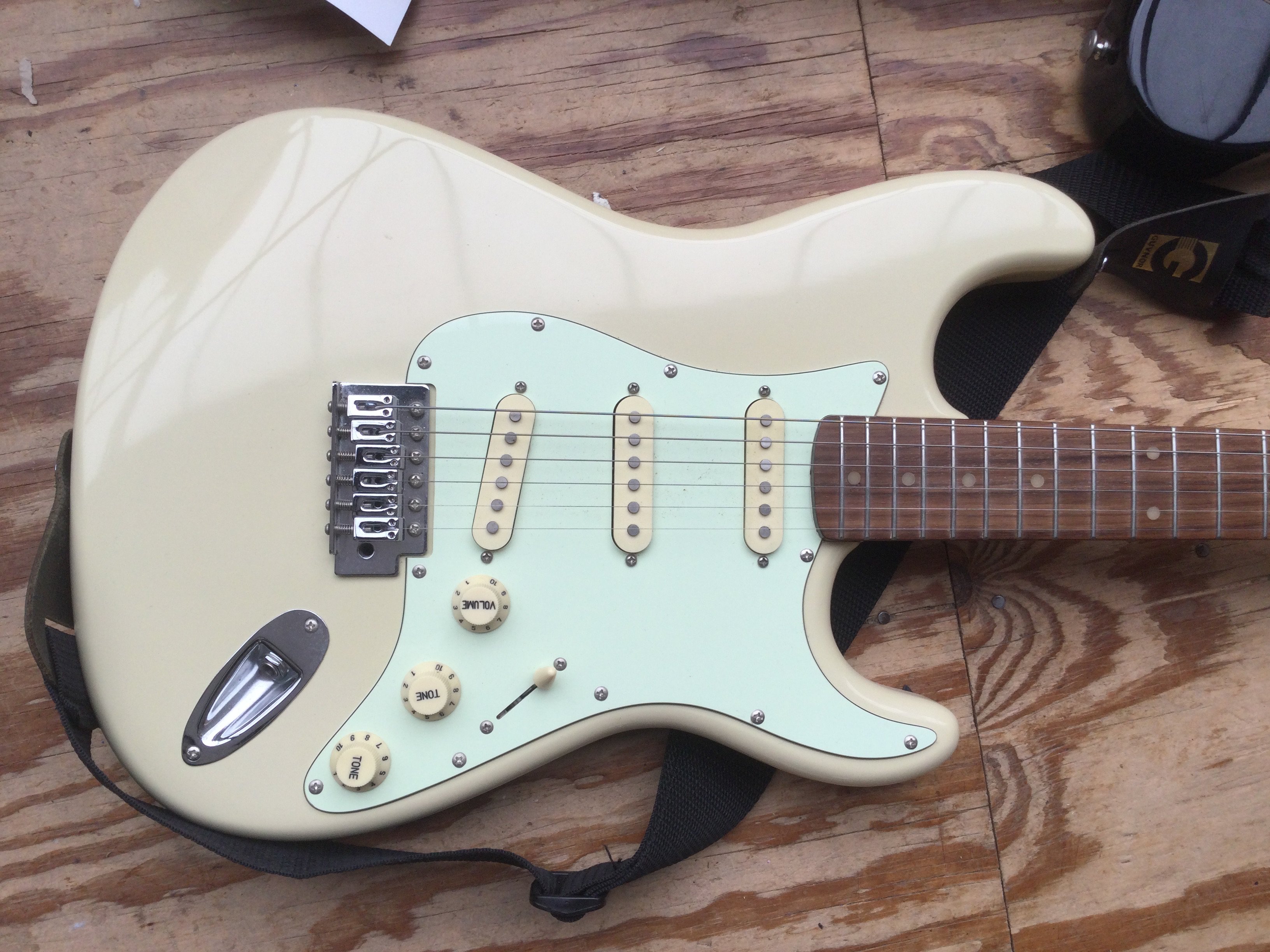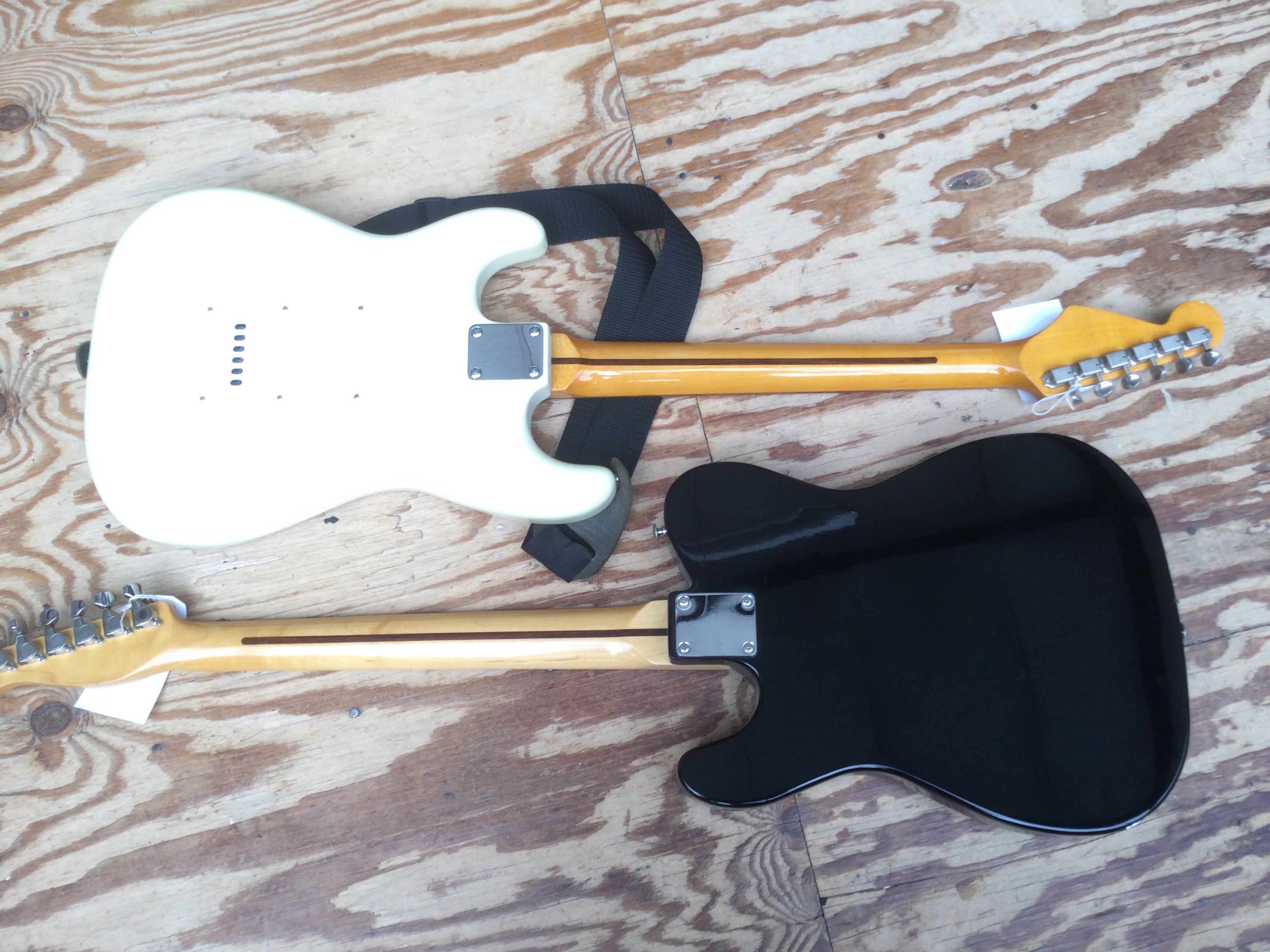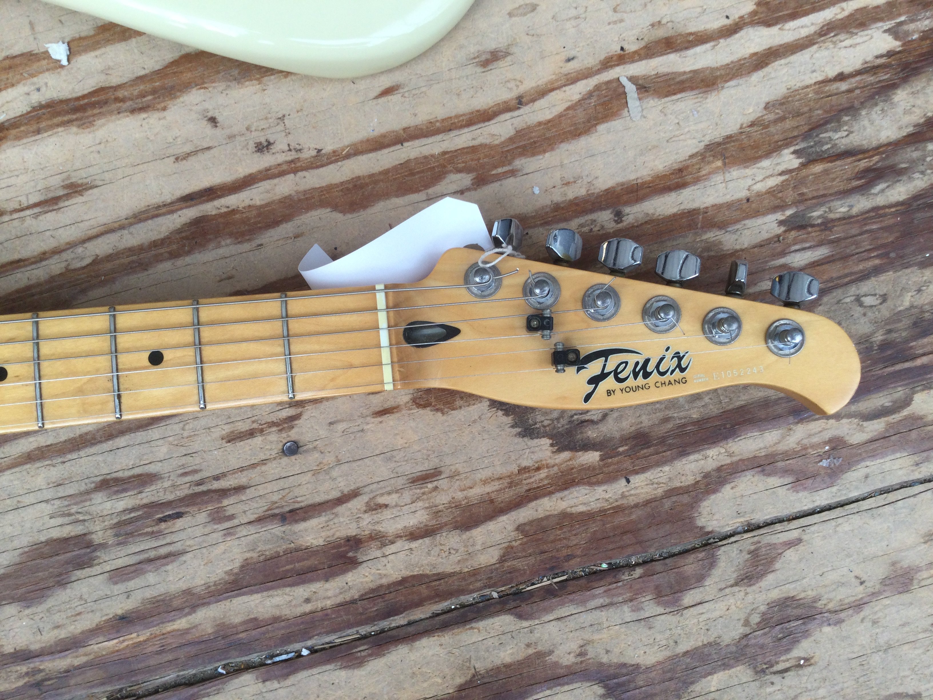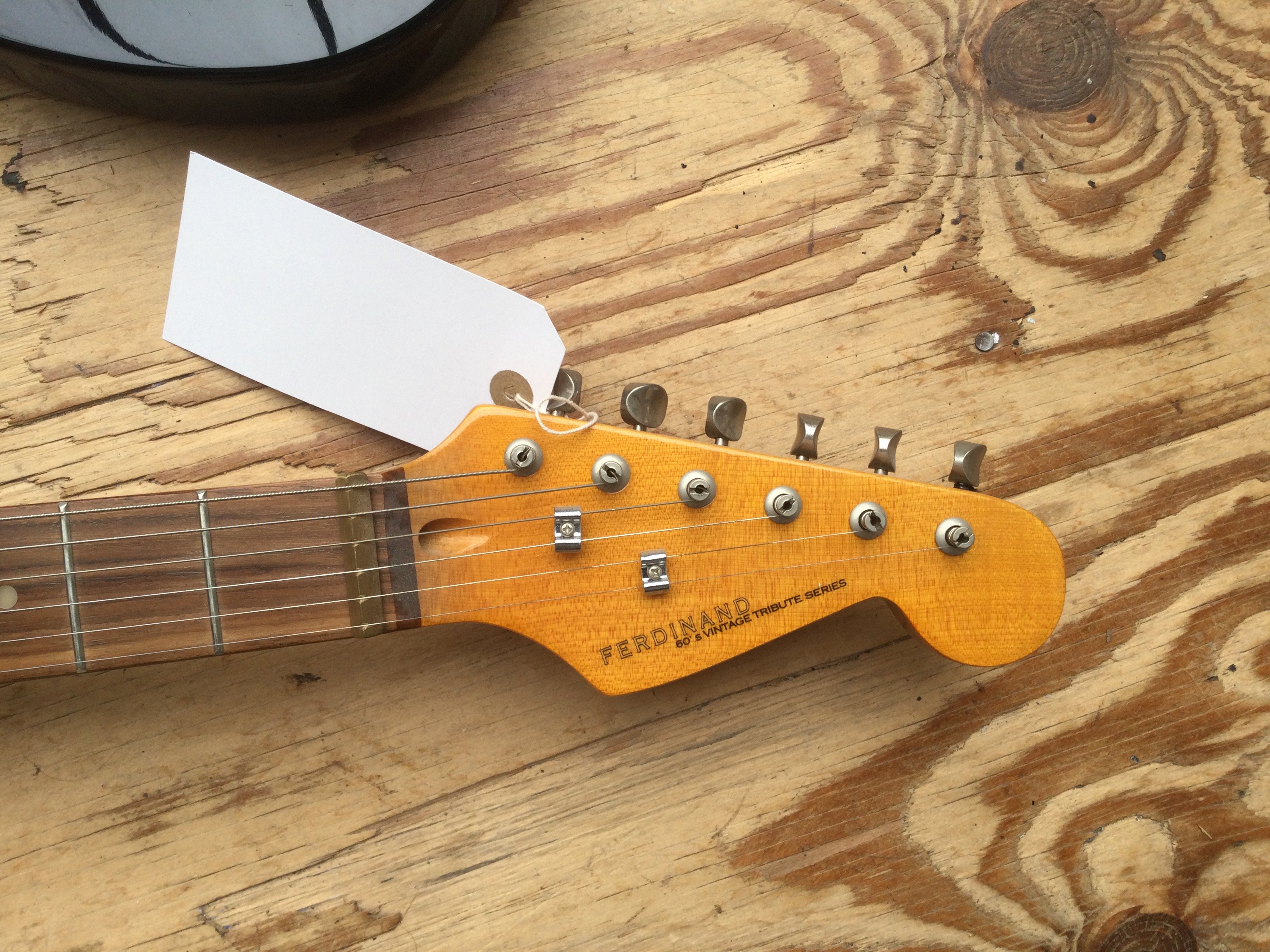 Two electric guitars comprising a Ferdinand Stratocaster style guitar and a Fenix Telecaster style guitar fitted with a Seymour Duncan bridge pickup. No cases.