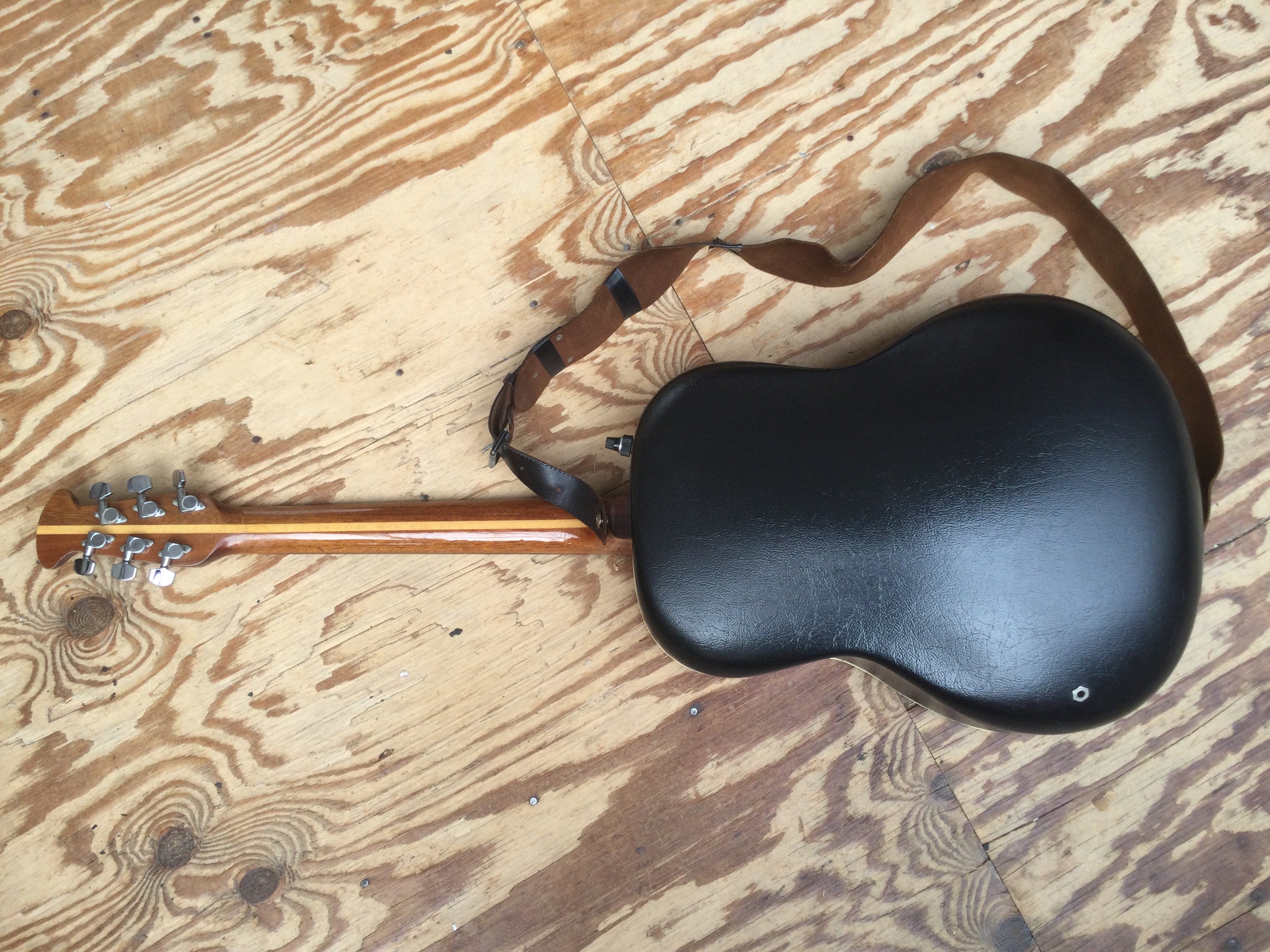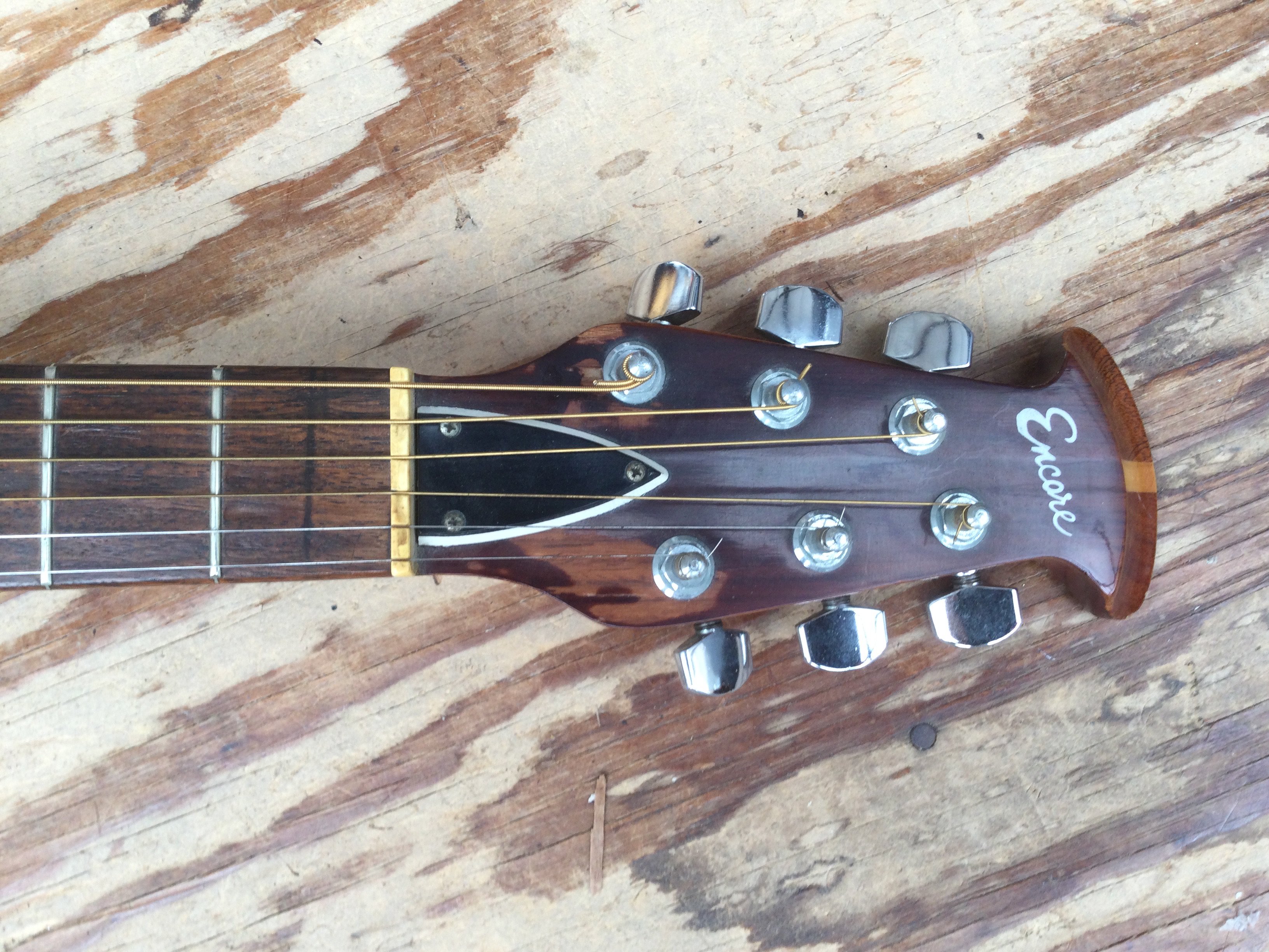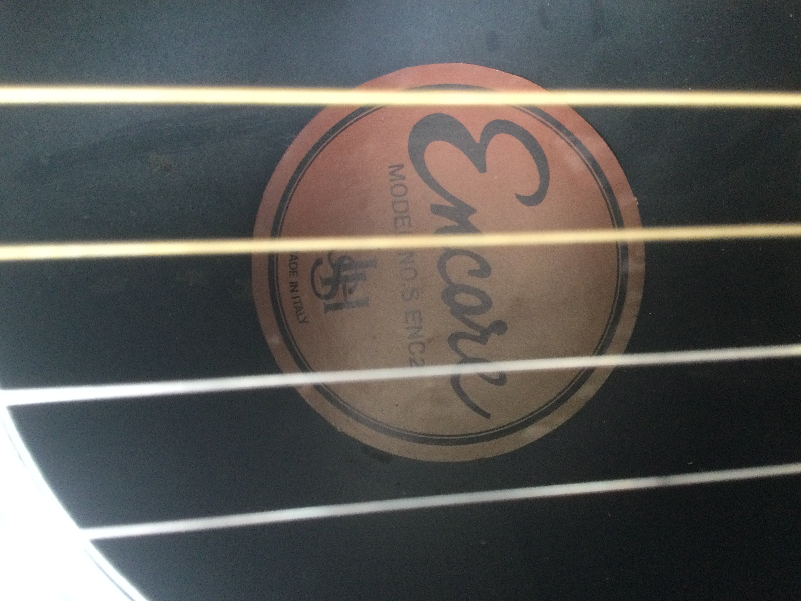 An Encore S ENC2 bowl back electro acoustic guitar. Comes with a soft carry case.