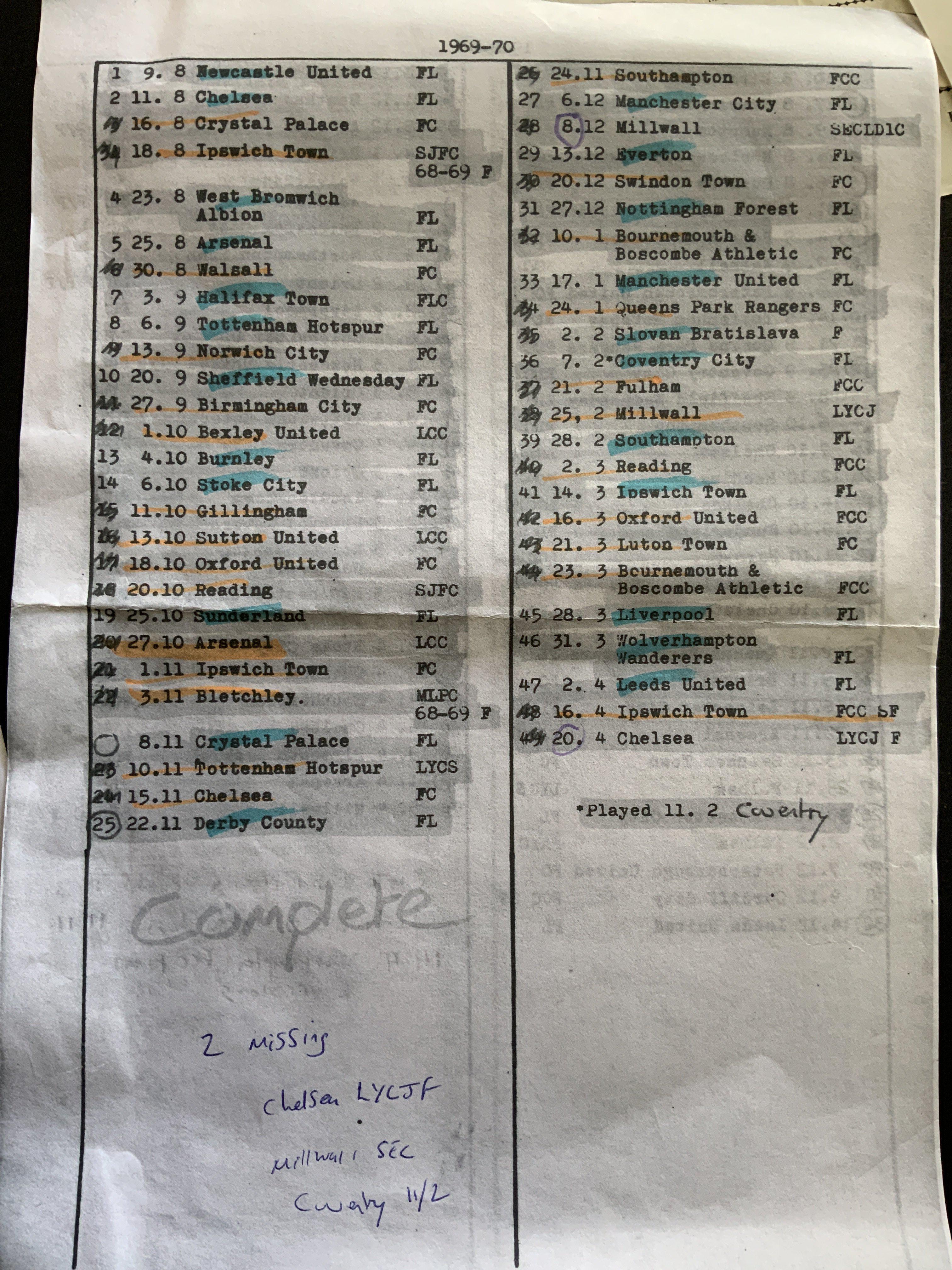 69/70 West Ham Complete Football Programmes: Good condition set with all first team reserves and youth only missing Coventry 11/2, Millwall SE Counties and Chelsea London Youth Cup. Some have team changes. (est 50)