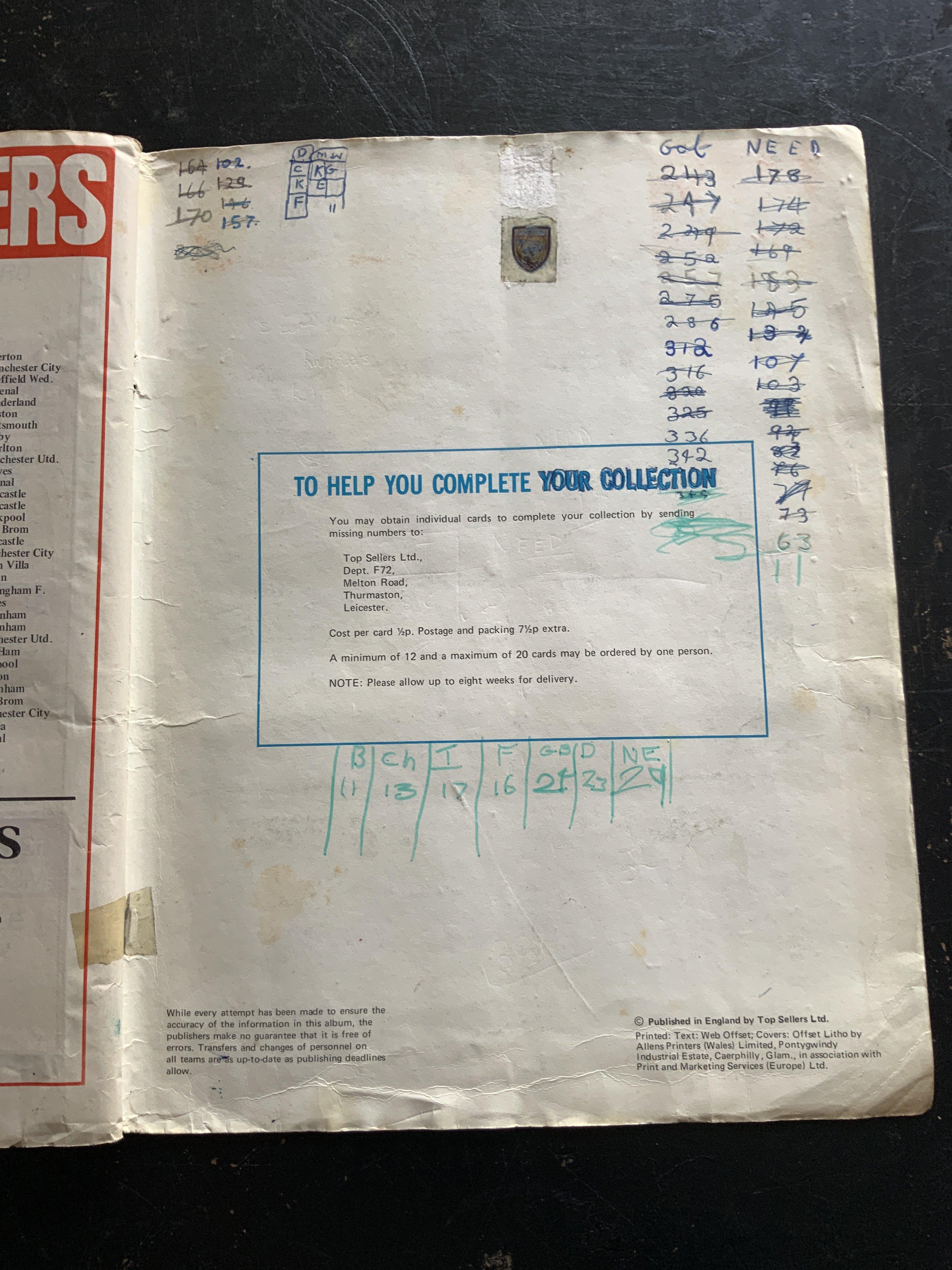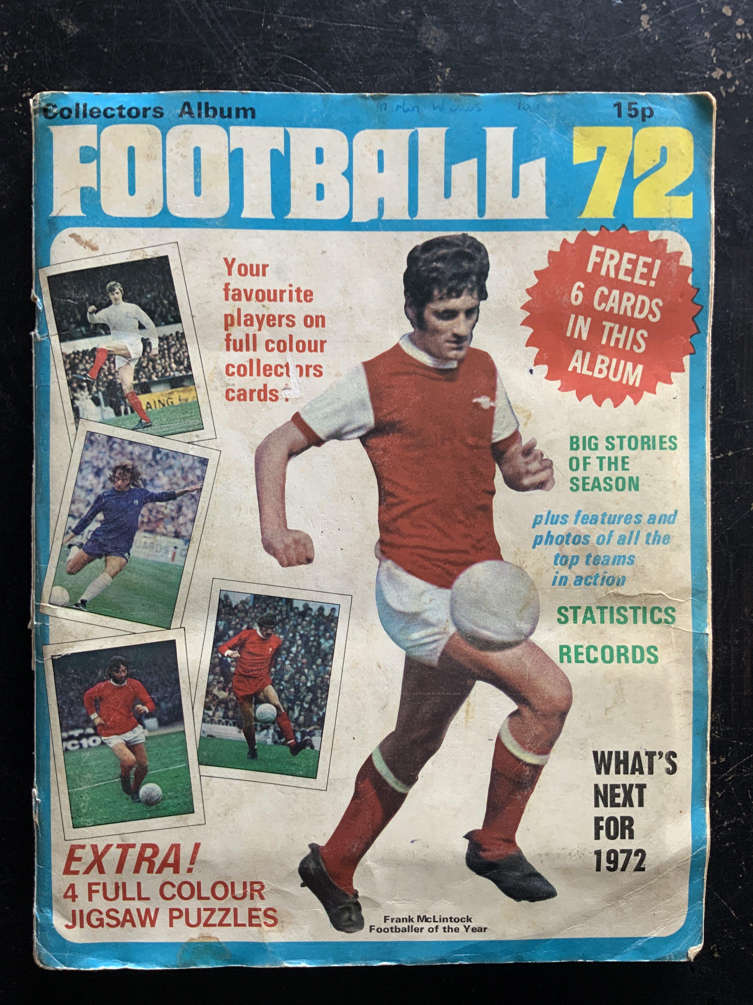 Top Sellers Football 72 Football Card Album: Complete album of the first division teams players in fair condition. Writing to inner back page with creasing.