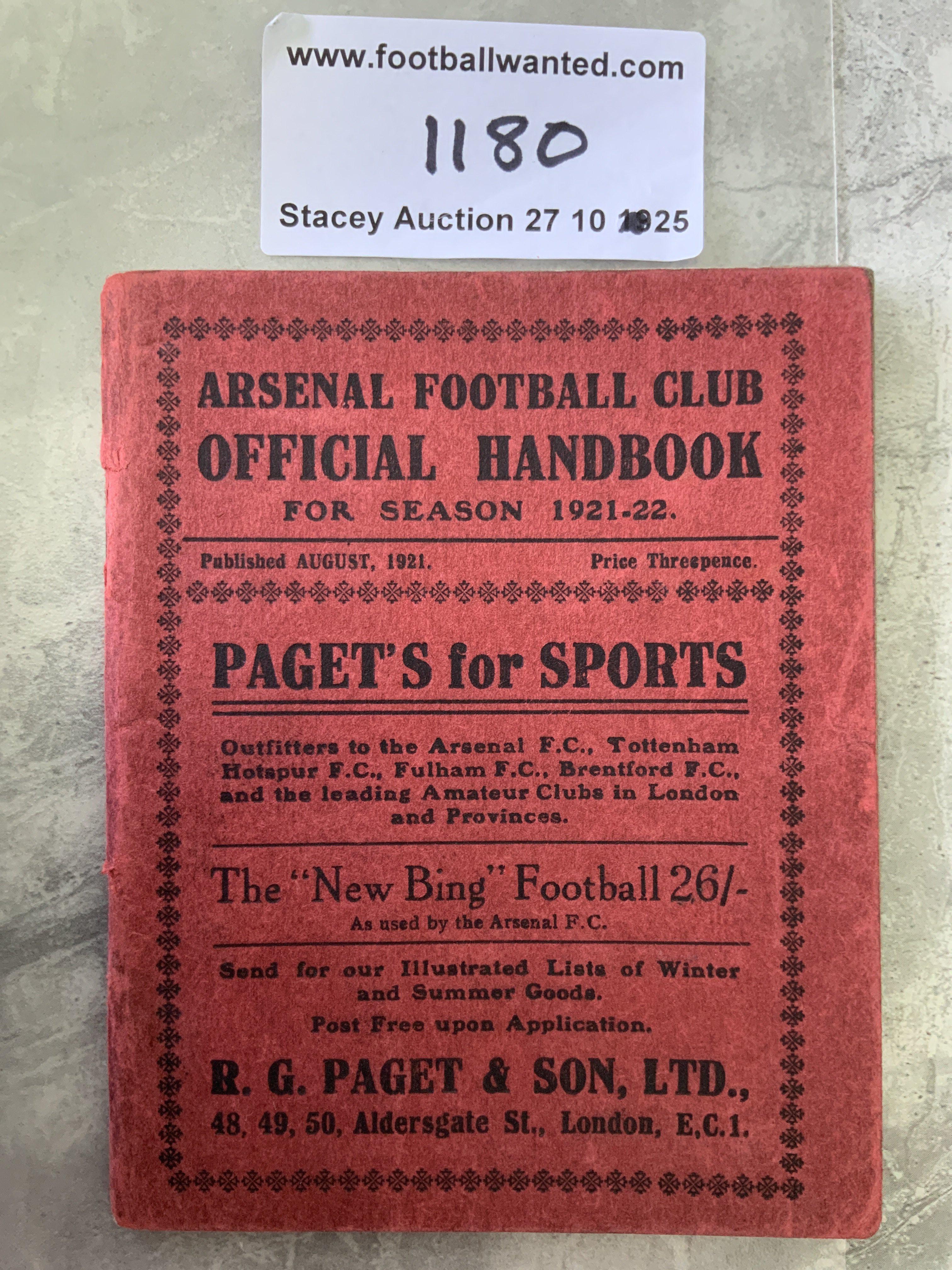 1921 - 1922 Arsenal Football Handbook: Rare handbook in excellent condition with 98 pages. Arsenal only produced a few handbooks pre 1930.