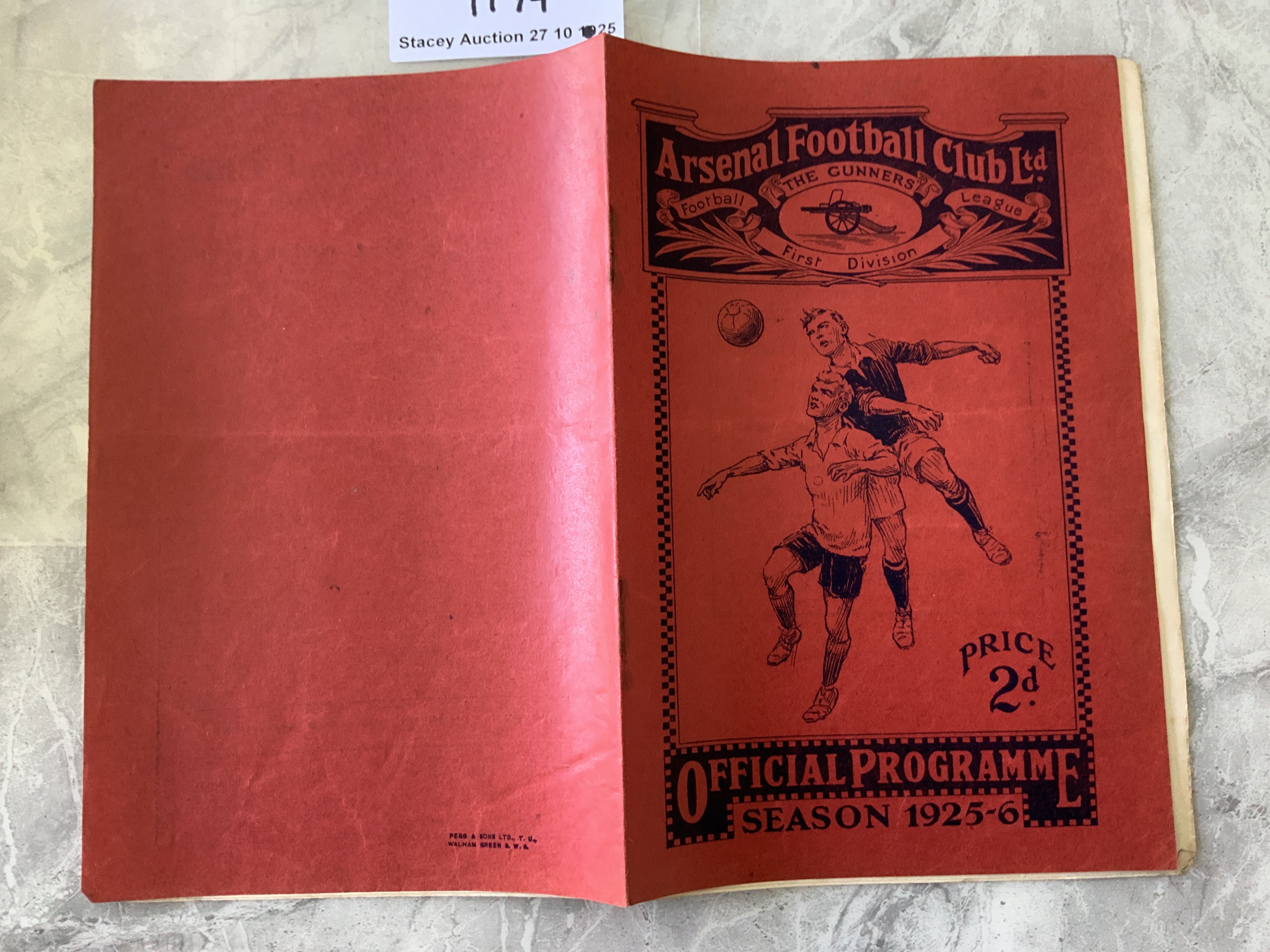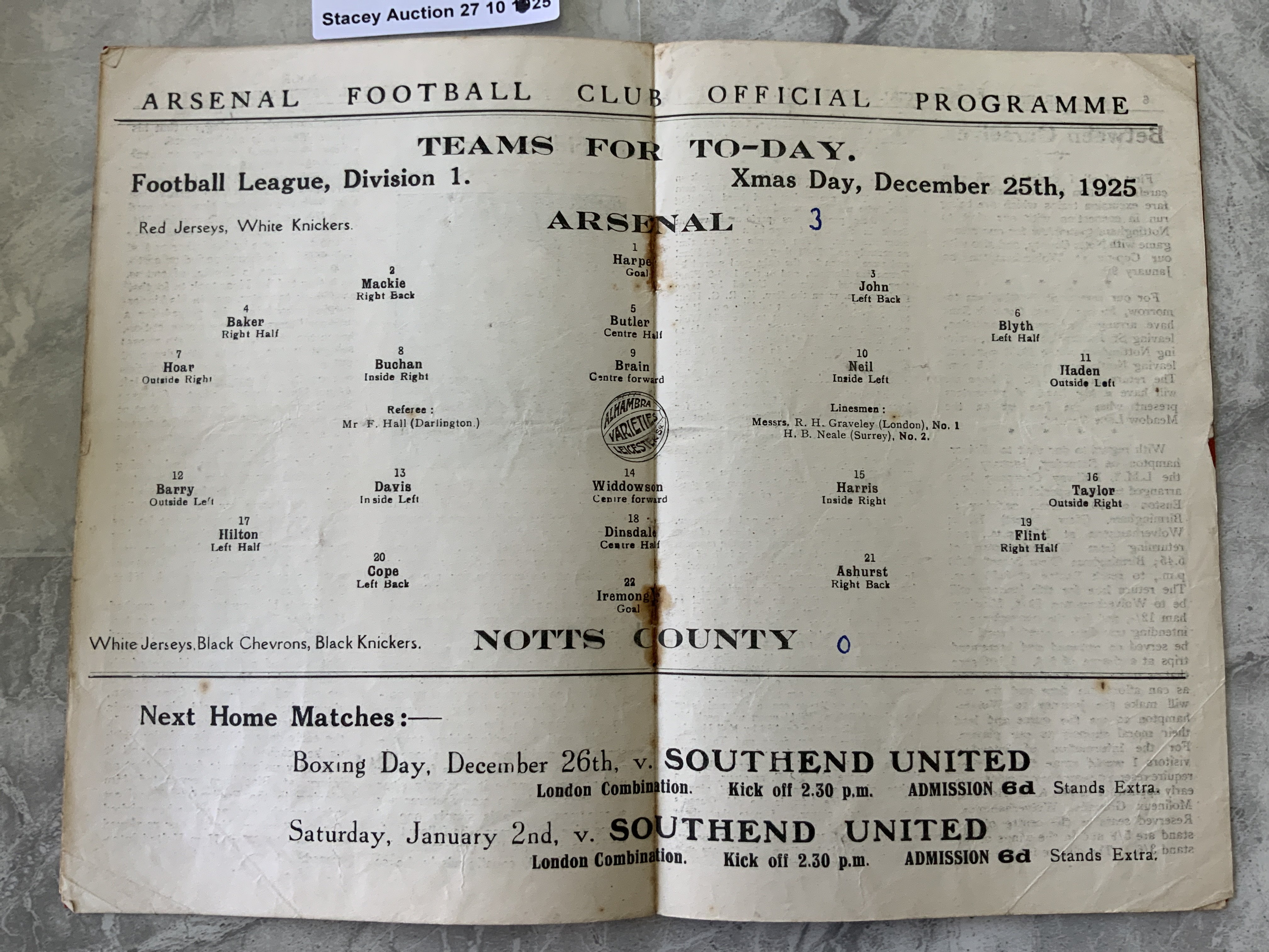 1925 - 1926 Arsenal v Notts County Football Programme: Good condition league match dated 25 12 1925. Rusty staples now removed. No team changes but score written.