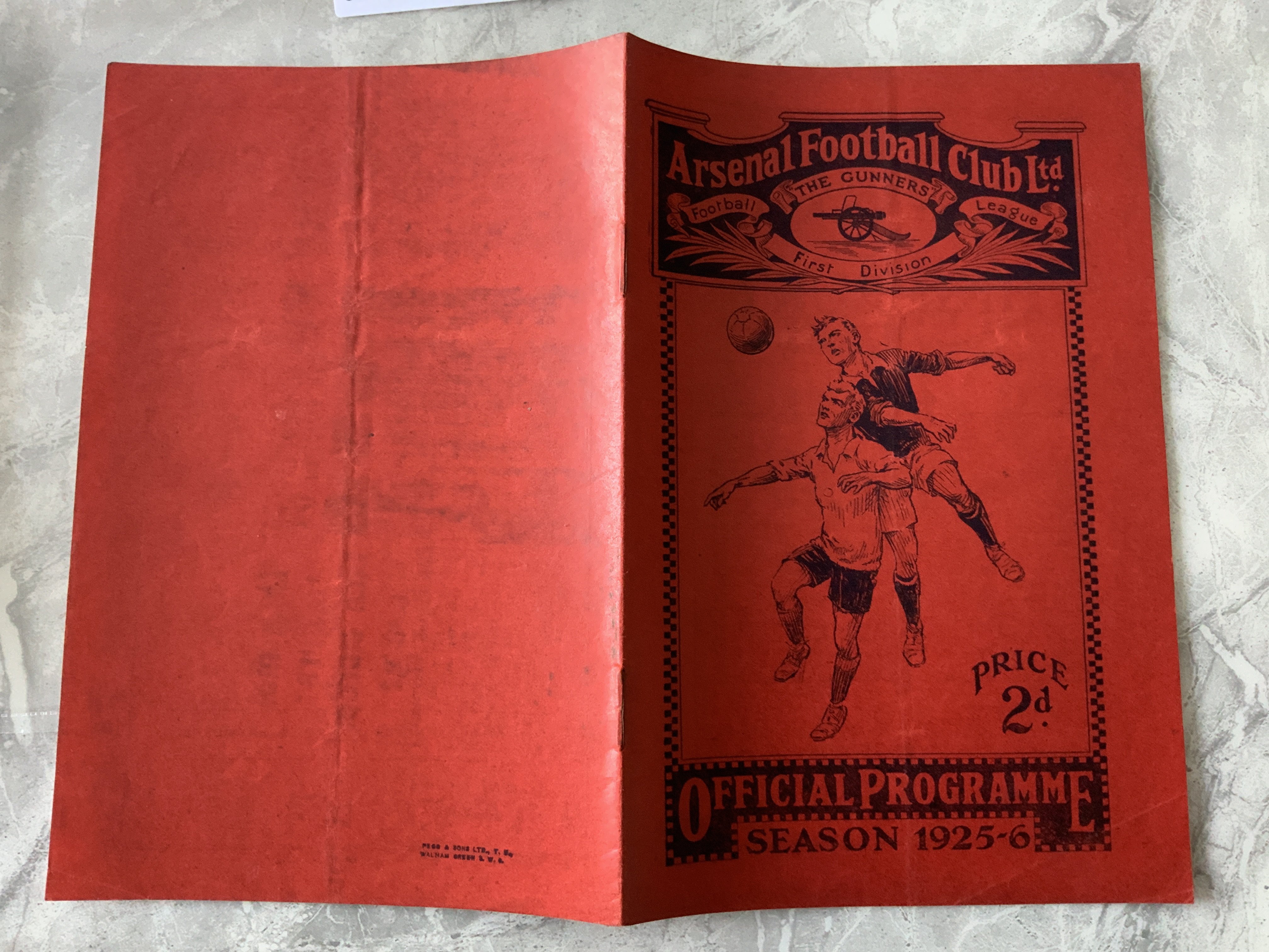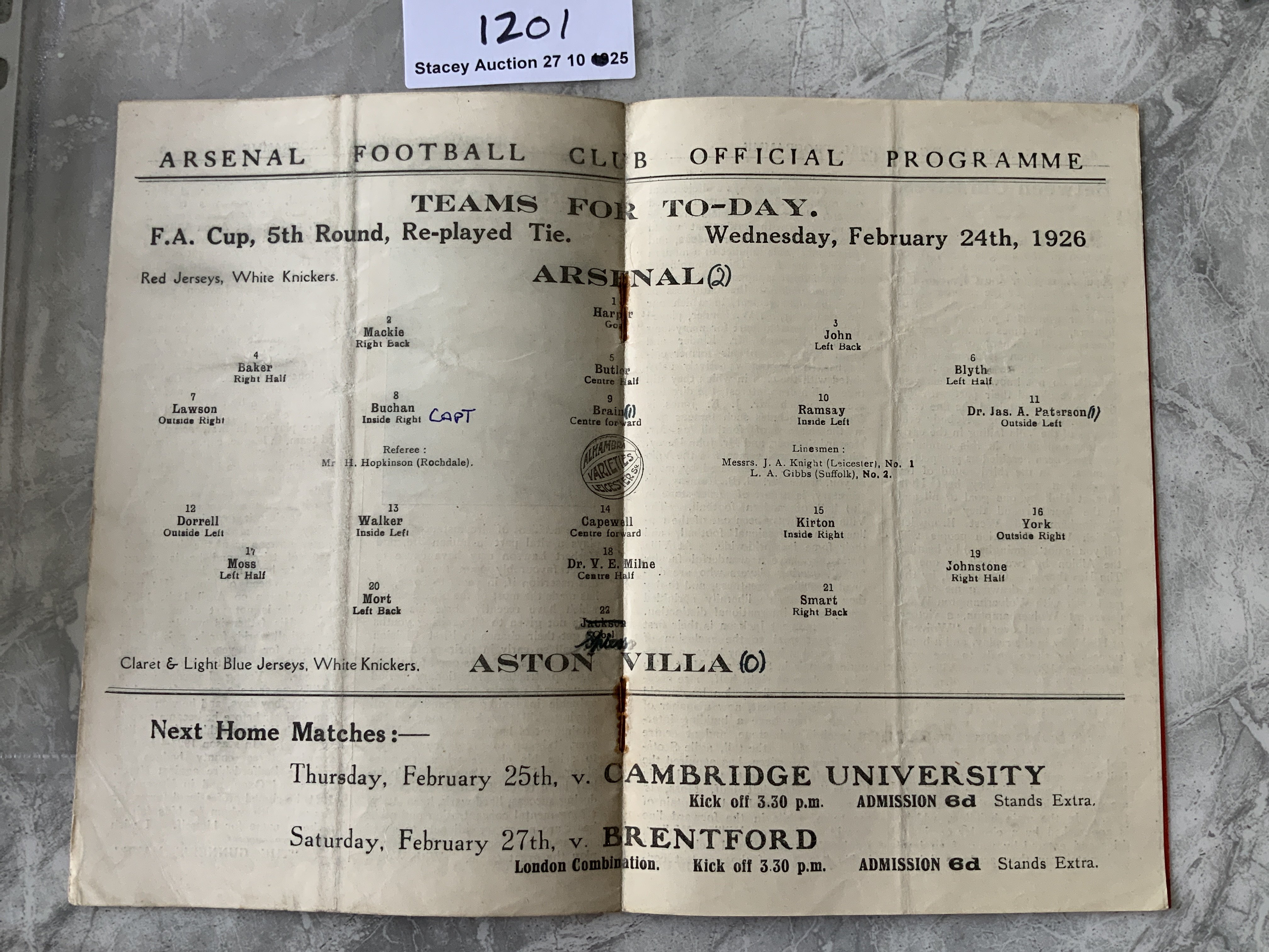 1925 - 1926 Arsenal v Aston Villa Football Programme: Good condition FA Cup match dated 24 2 1926. Rusty staples holding firm. Team change and score. Light fold.