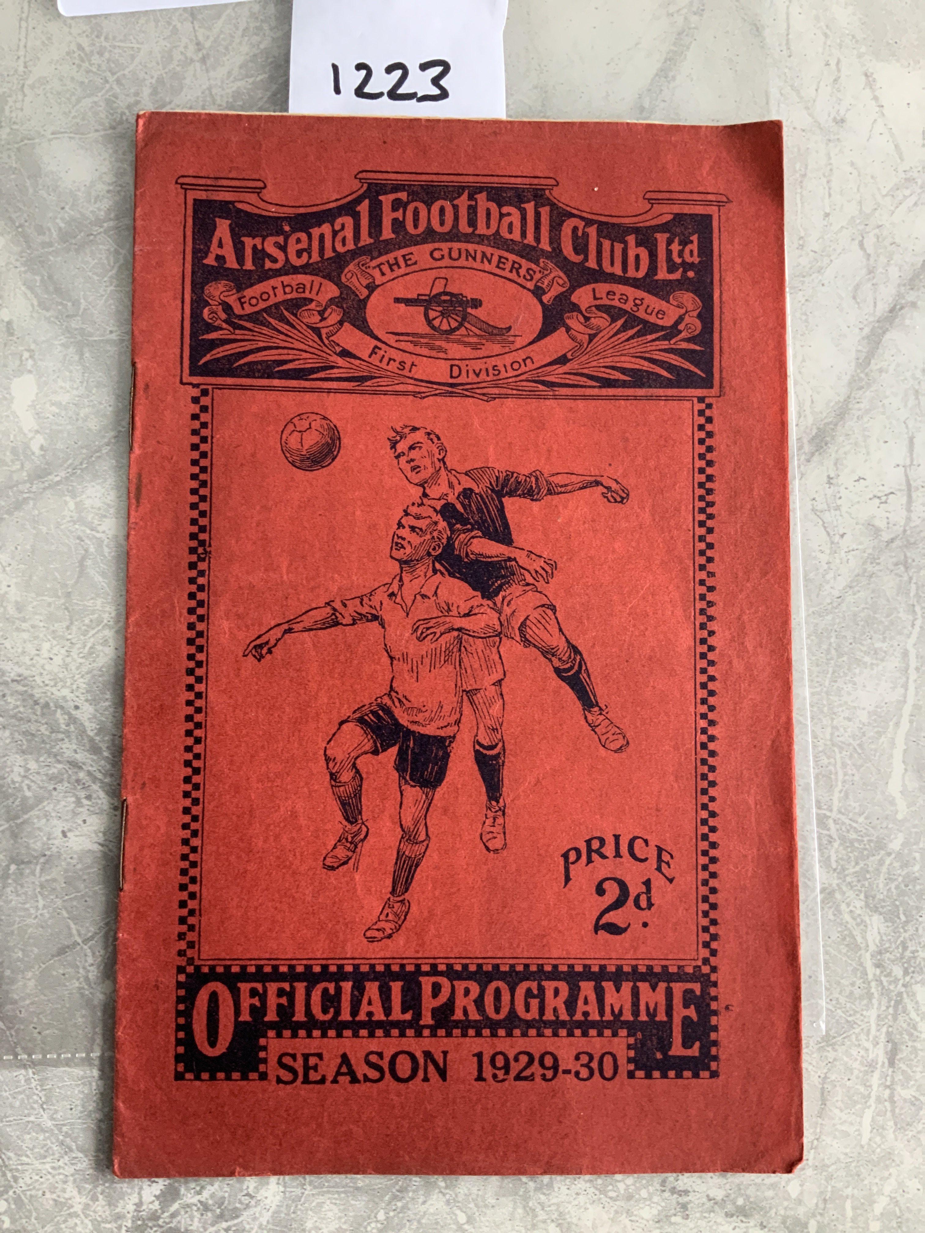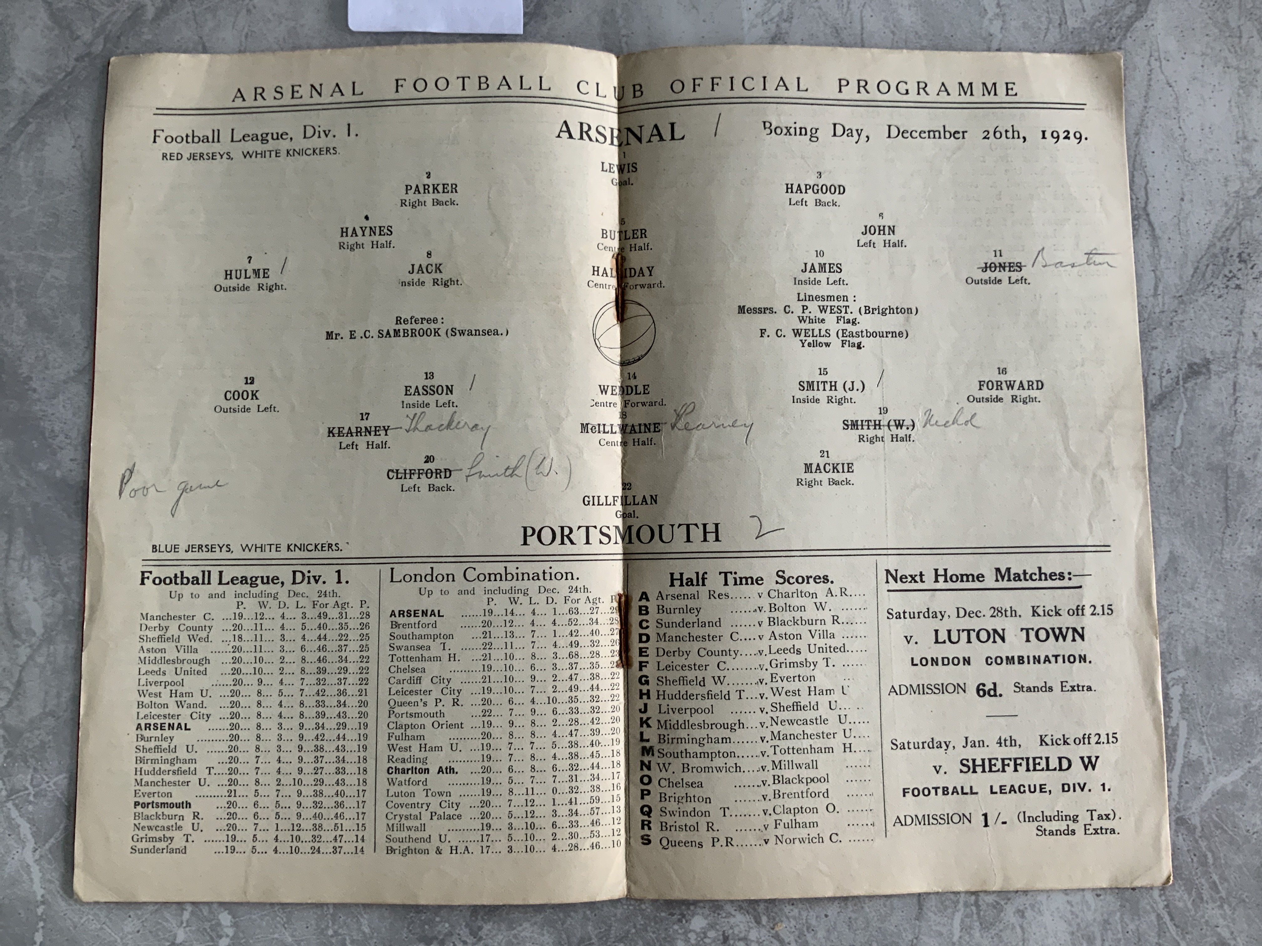 1929 - 1930 Arsenal v Portsmouth Football Programme: Good condition league match dated 26 12 1929. Pencilled team changes. Rusty staples holding firm.