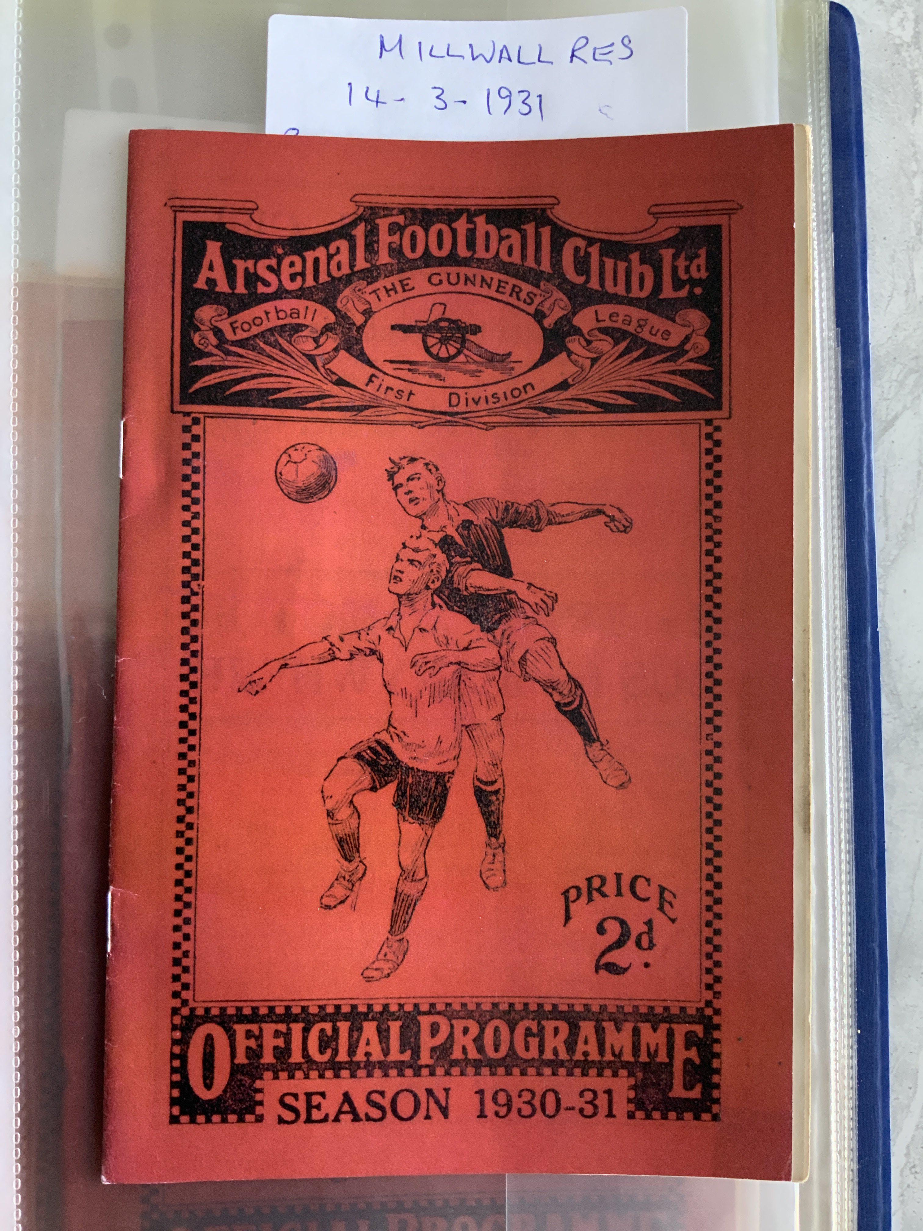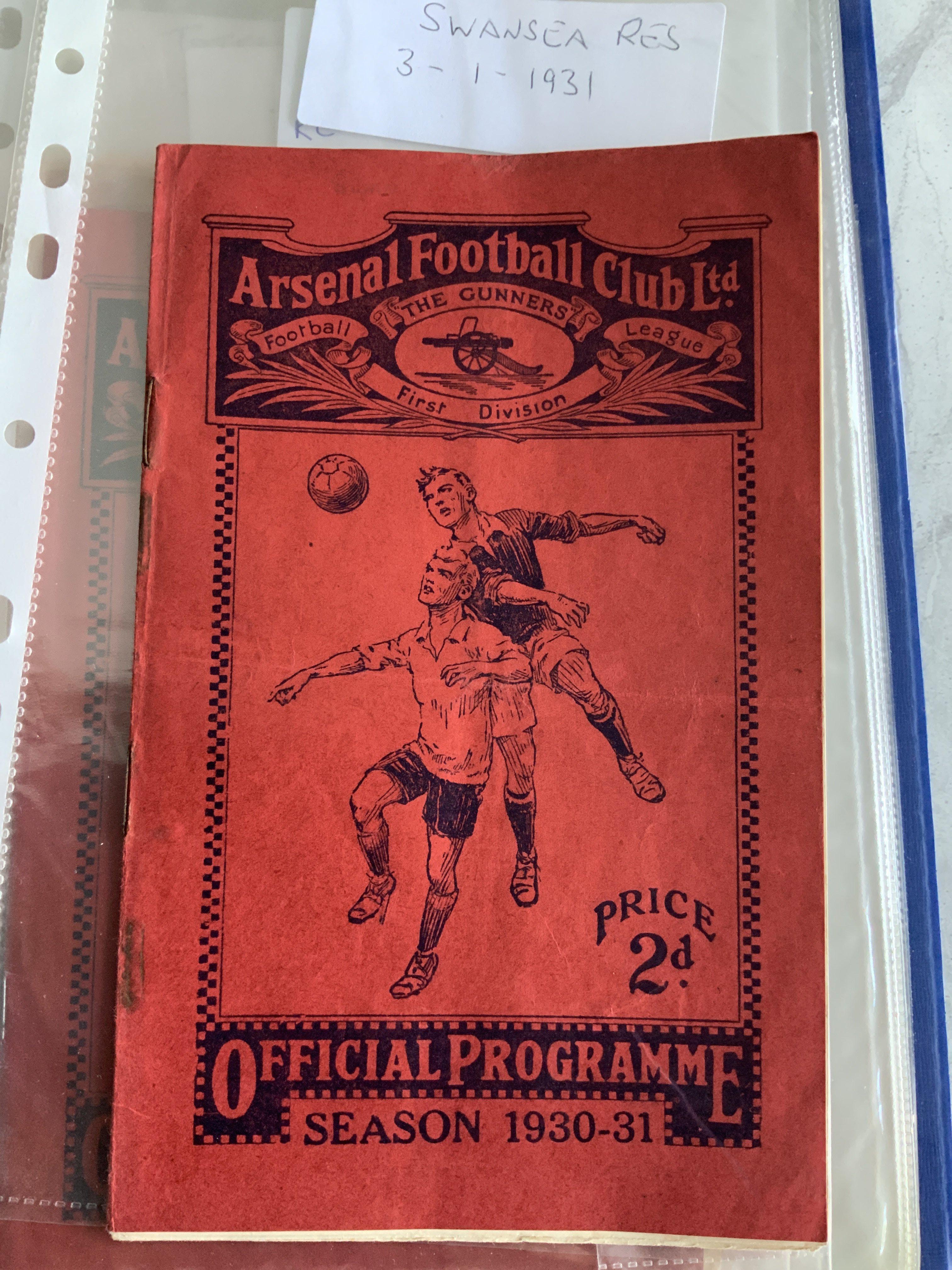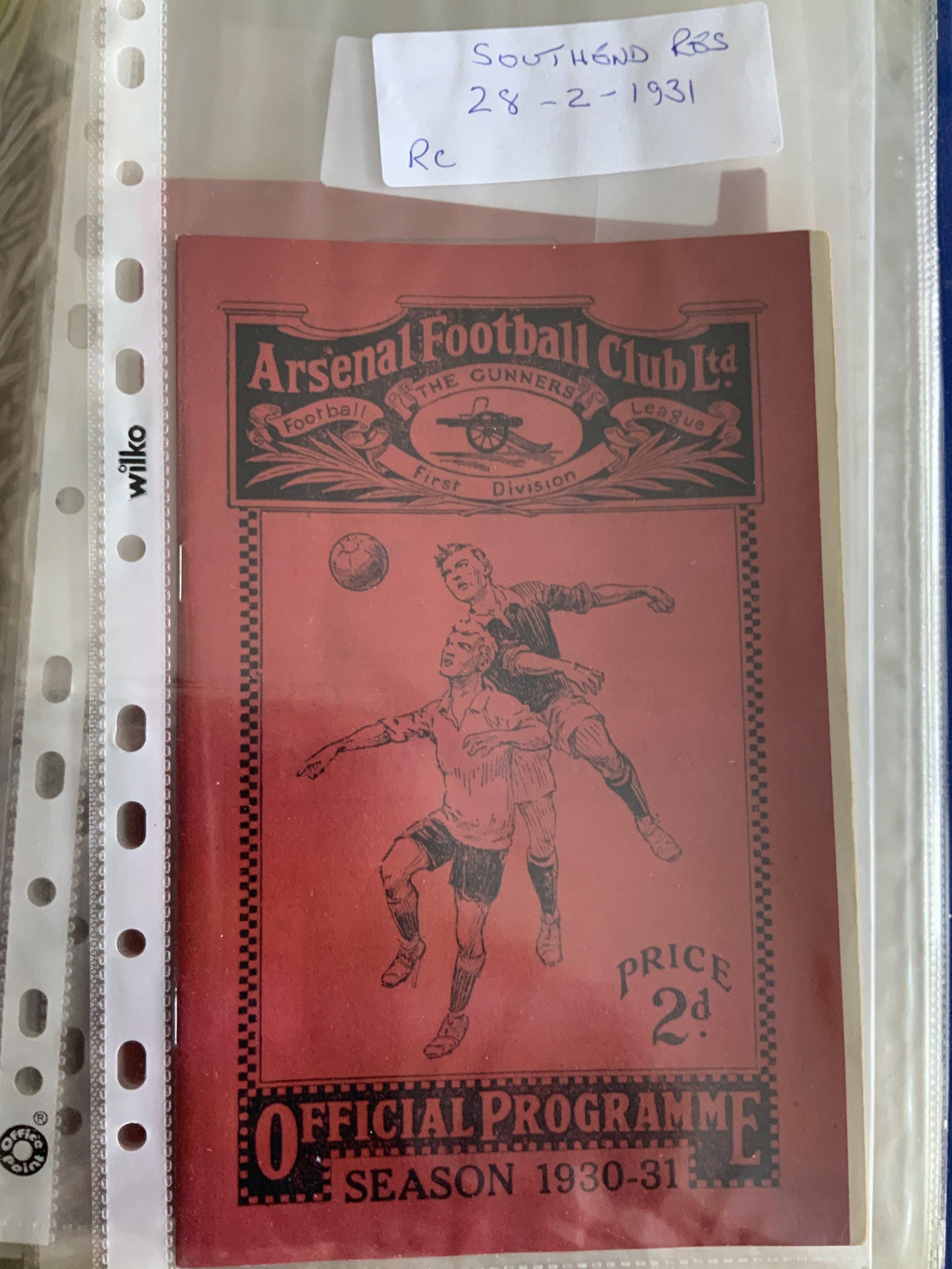 Arsenal 1930 - 1931 Reserve Football Programmes: Very good condition home programmes. Includes QPR Fulham Watford West Ham Luton Brentford Crystal Palace Brighton Leicester Charlton Southend Swansea Millwall Chelsea Portsmouth and Tottenham. Please note Southend and Millwall have excellent replacement covers. (16)