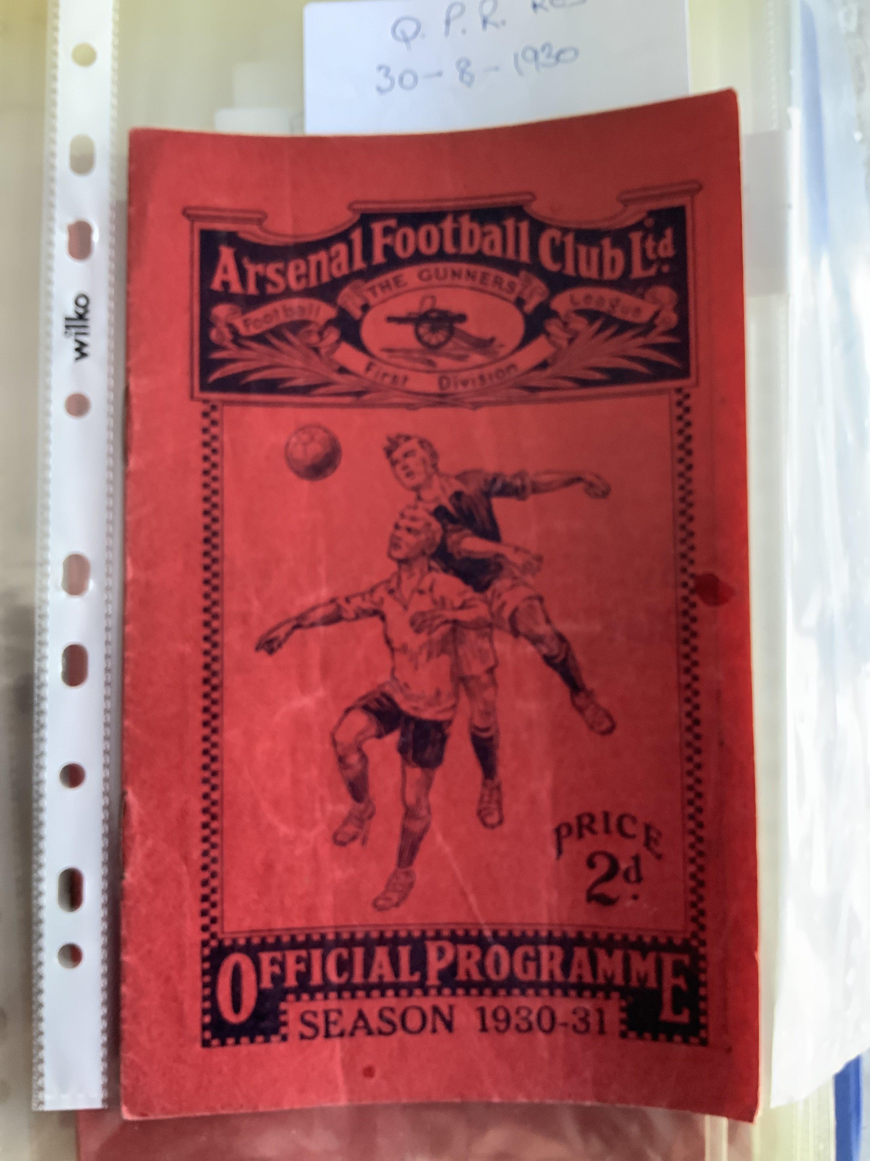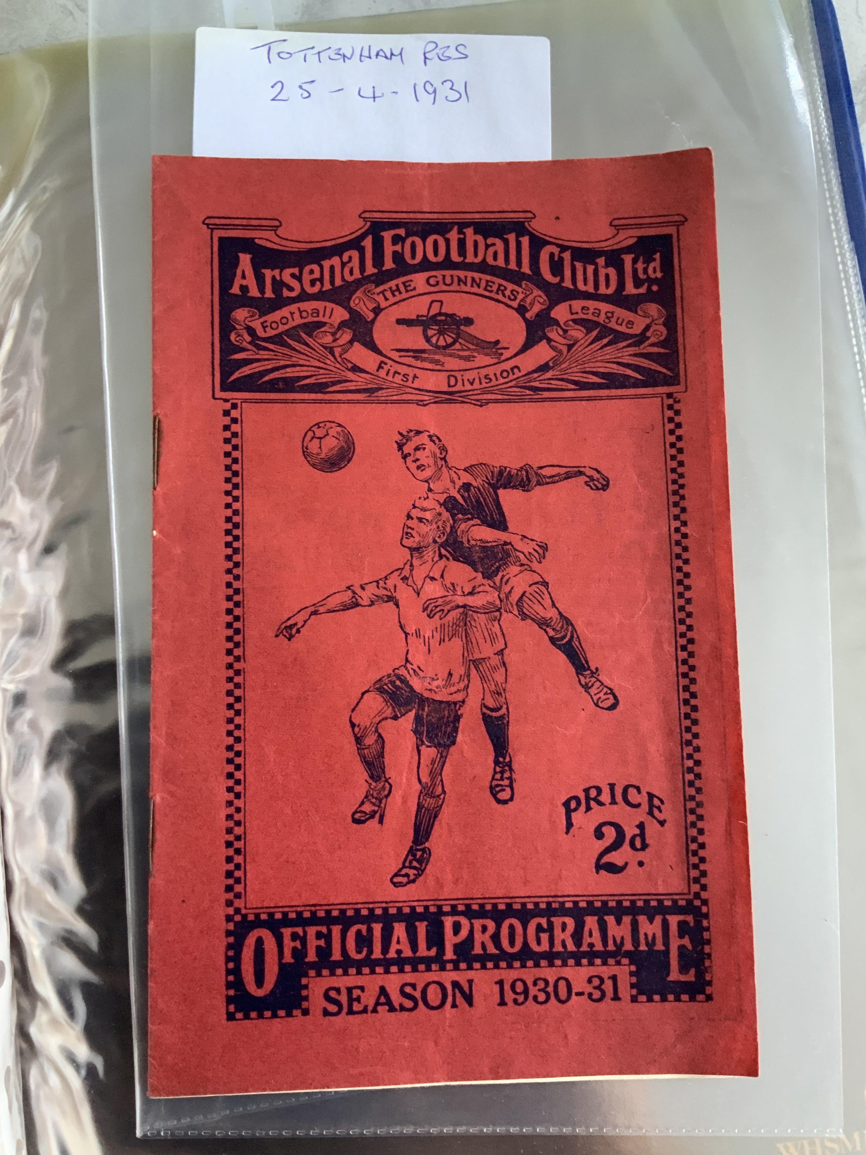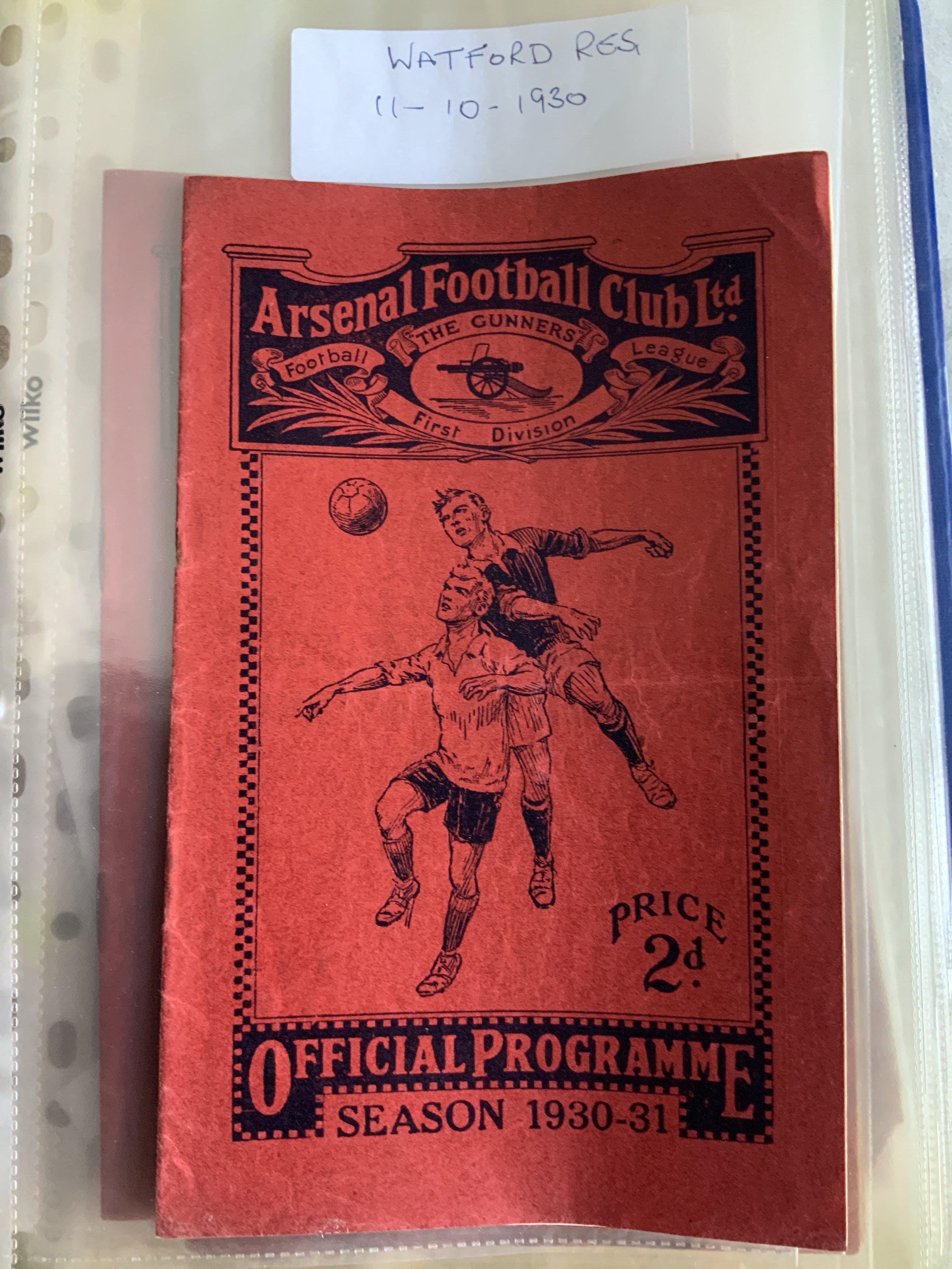 Arsenal 1930 - 1931 Reserve Football Programmes: Very good condition home programmes. Includes QPR Fulham Watford West Ham Luton Brentford Crystal Palace Brighton Leicester Charlton Southend Swansea Millwall Chelsea Portsmouth and Tottenham. Please note Southend and Millwall have excellent replacement covers. (16)