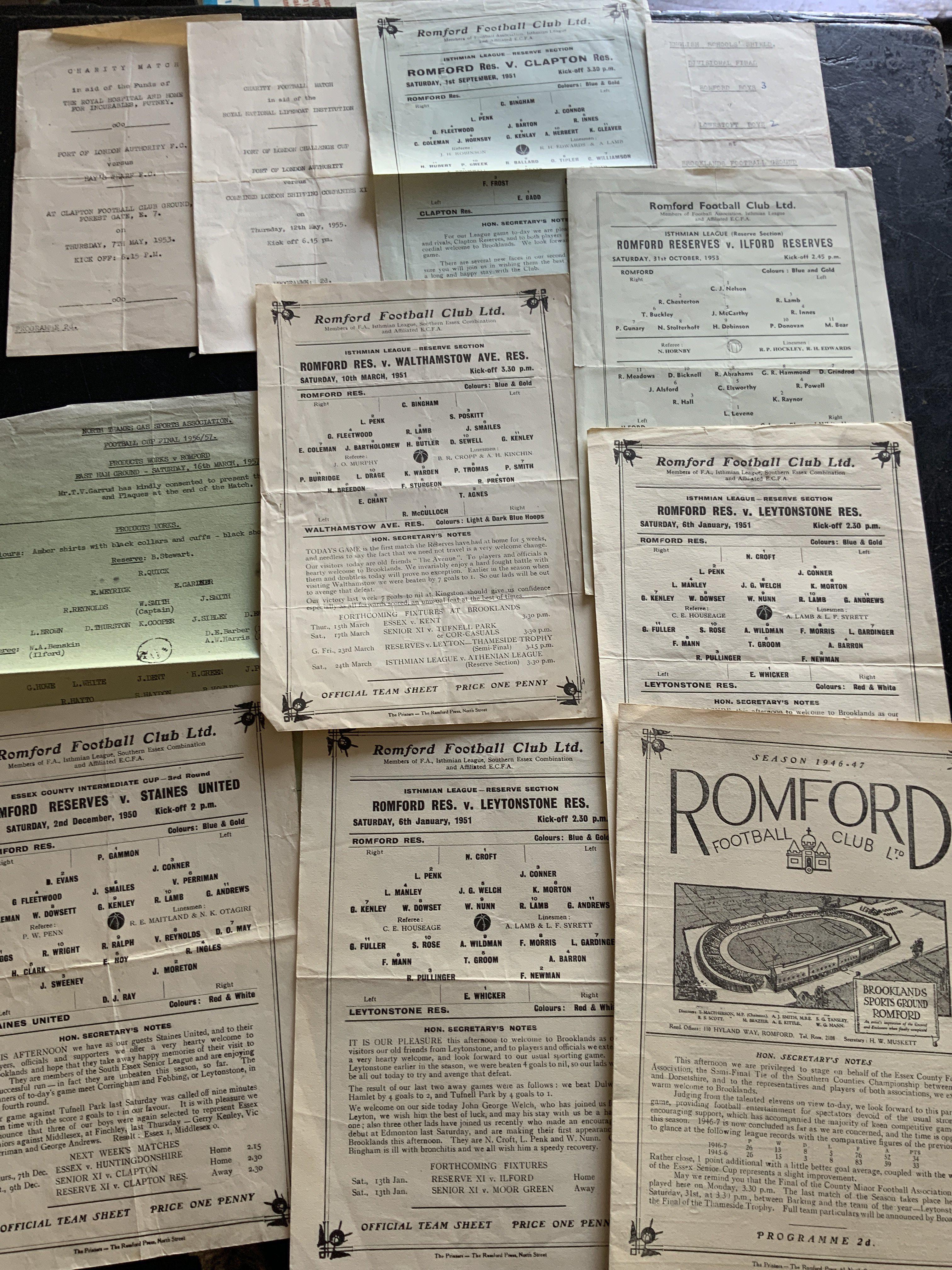 Essex Football Club Programmes: Mainly involving Romford from the 50s. A few earlier and later. Good. (30+)
