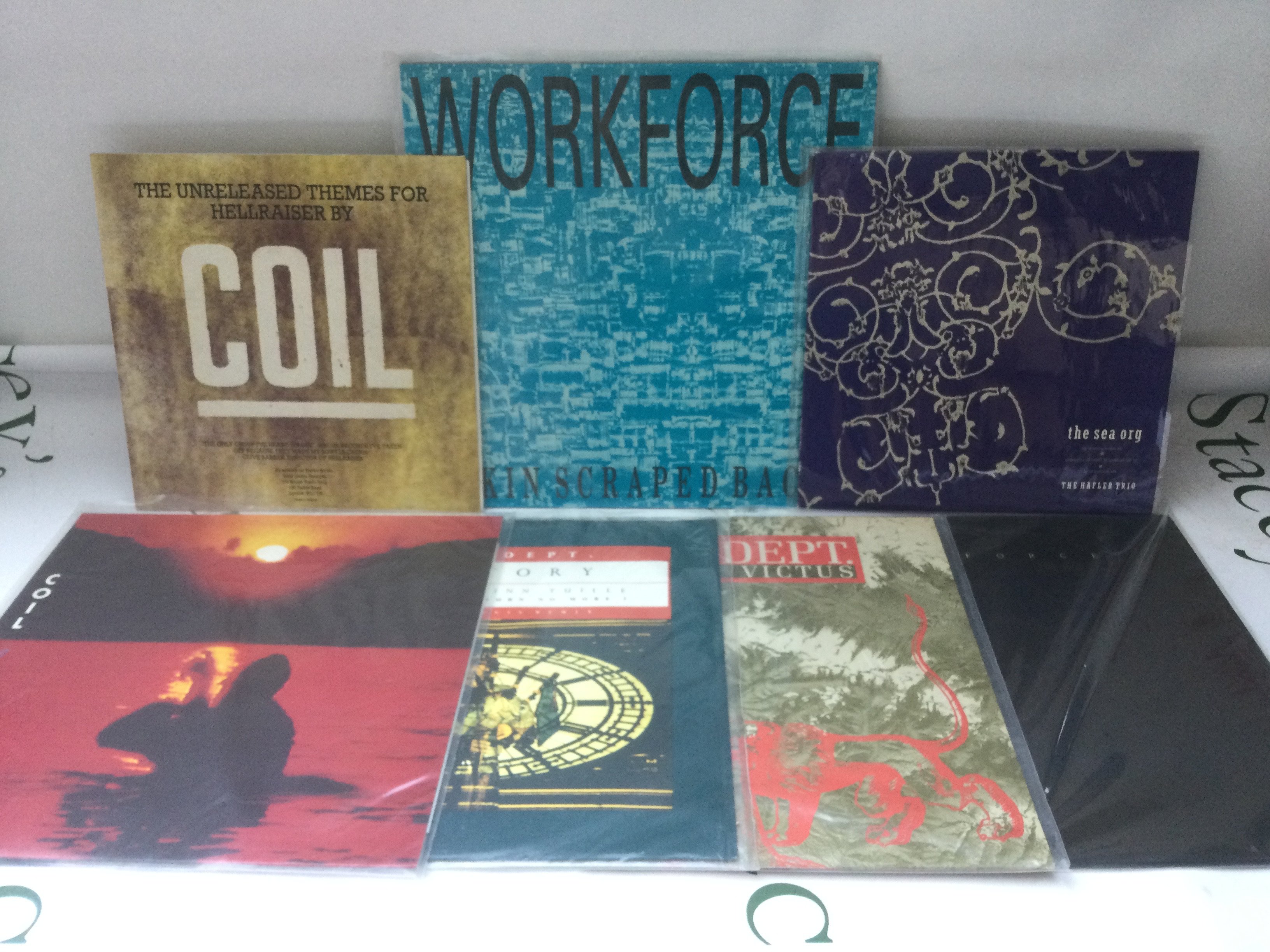 Fifteen electro and industrial LPs and 12" singles by various artists including Coil, The Flying Lizards and others.