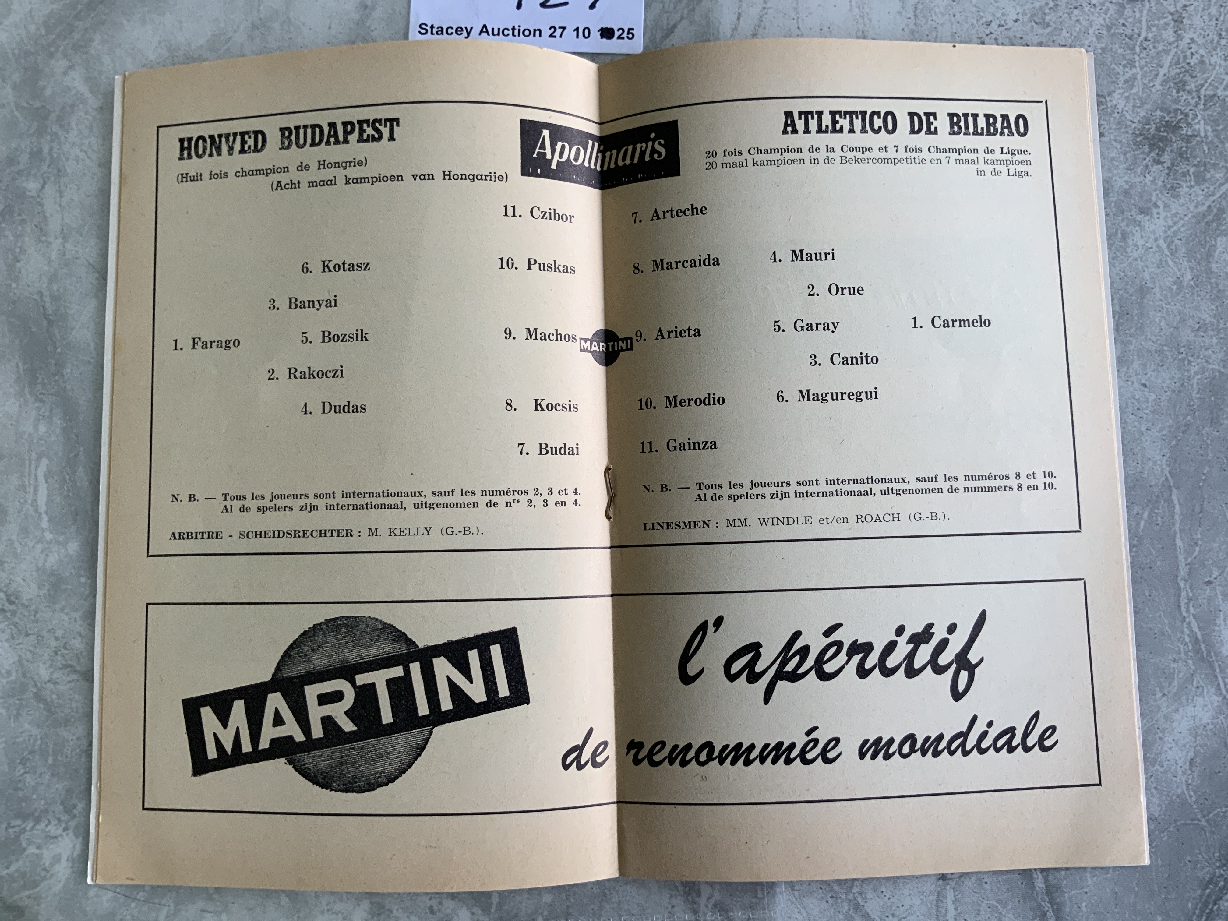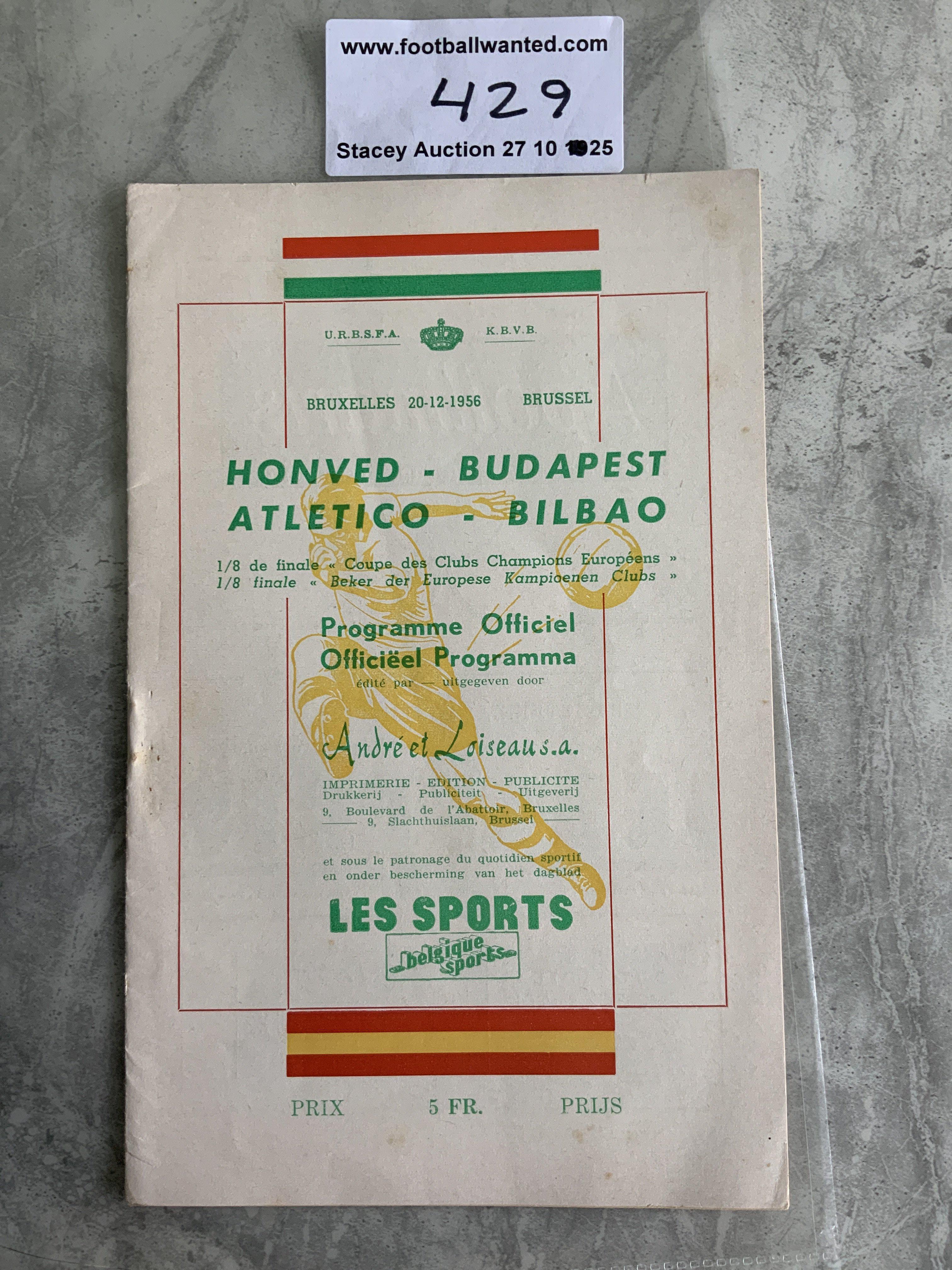 56/57 Honved v Athletic Bilbao Football Programme: European Cup match in which Puskas scored a late equaliser in the 3-3 draw. Played in Belgium due to security issues. Excellent condition with no team changes.