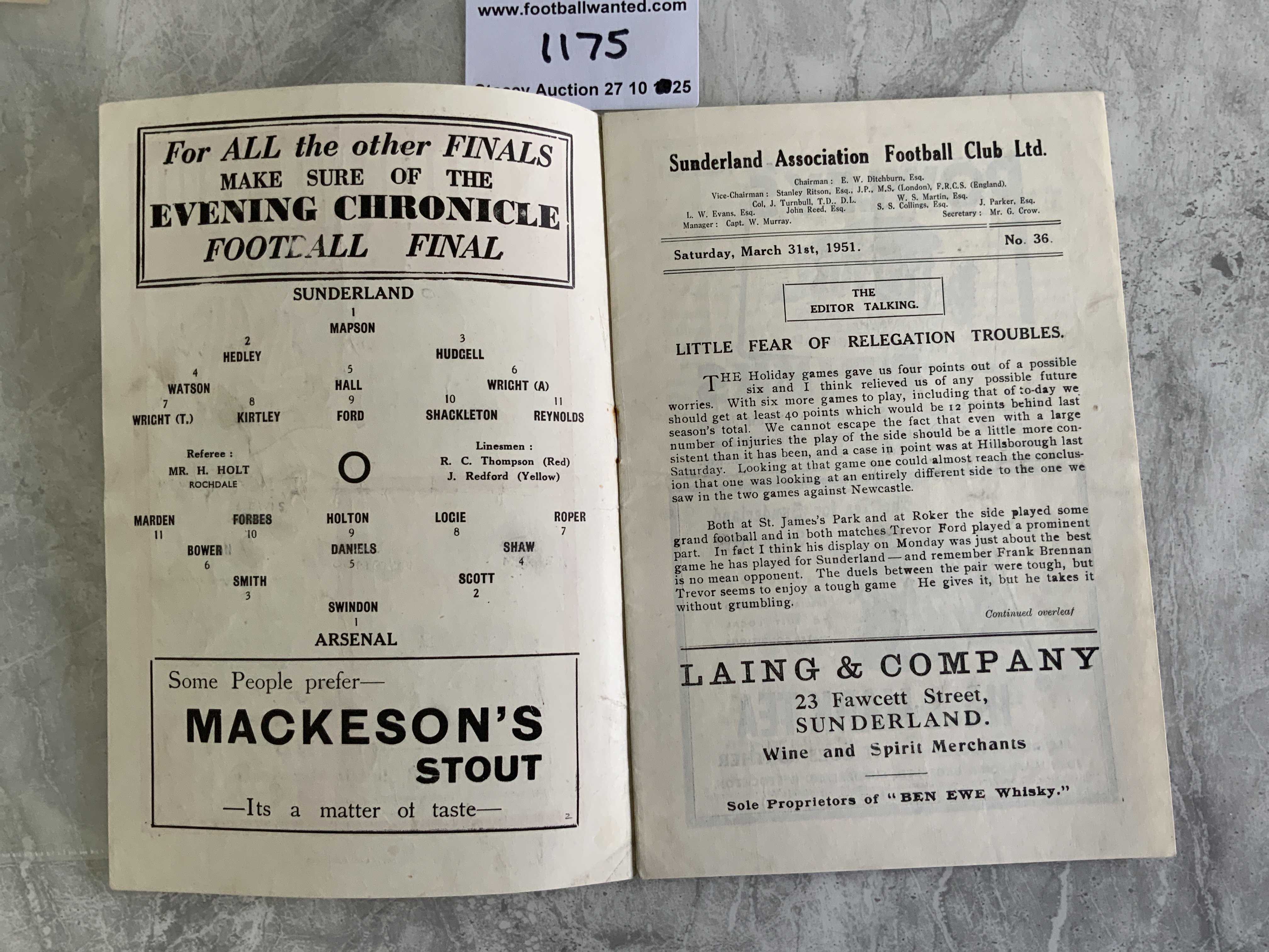 50/51 Sunderland v Arsenal Football Programme: Good condition league match with no team changes. Rusty staple holding firm.