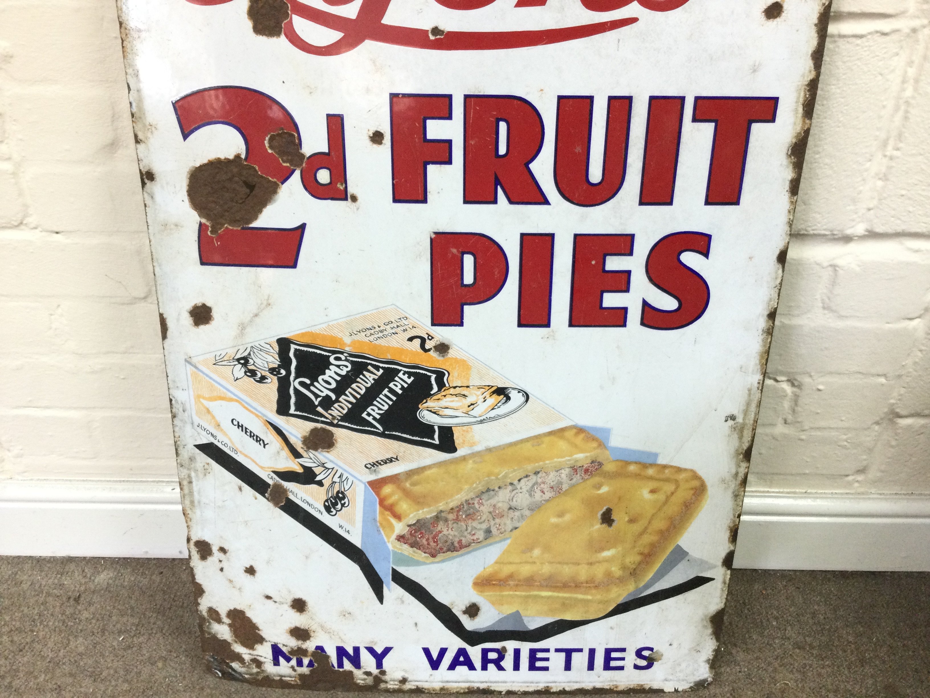 Lyons 2d Fruit Pies Enamel Sign 22 x 35 inches approximately